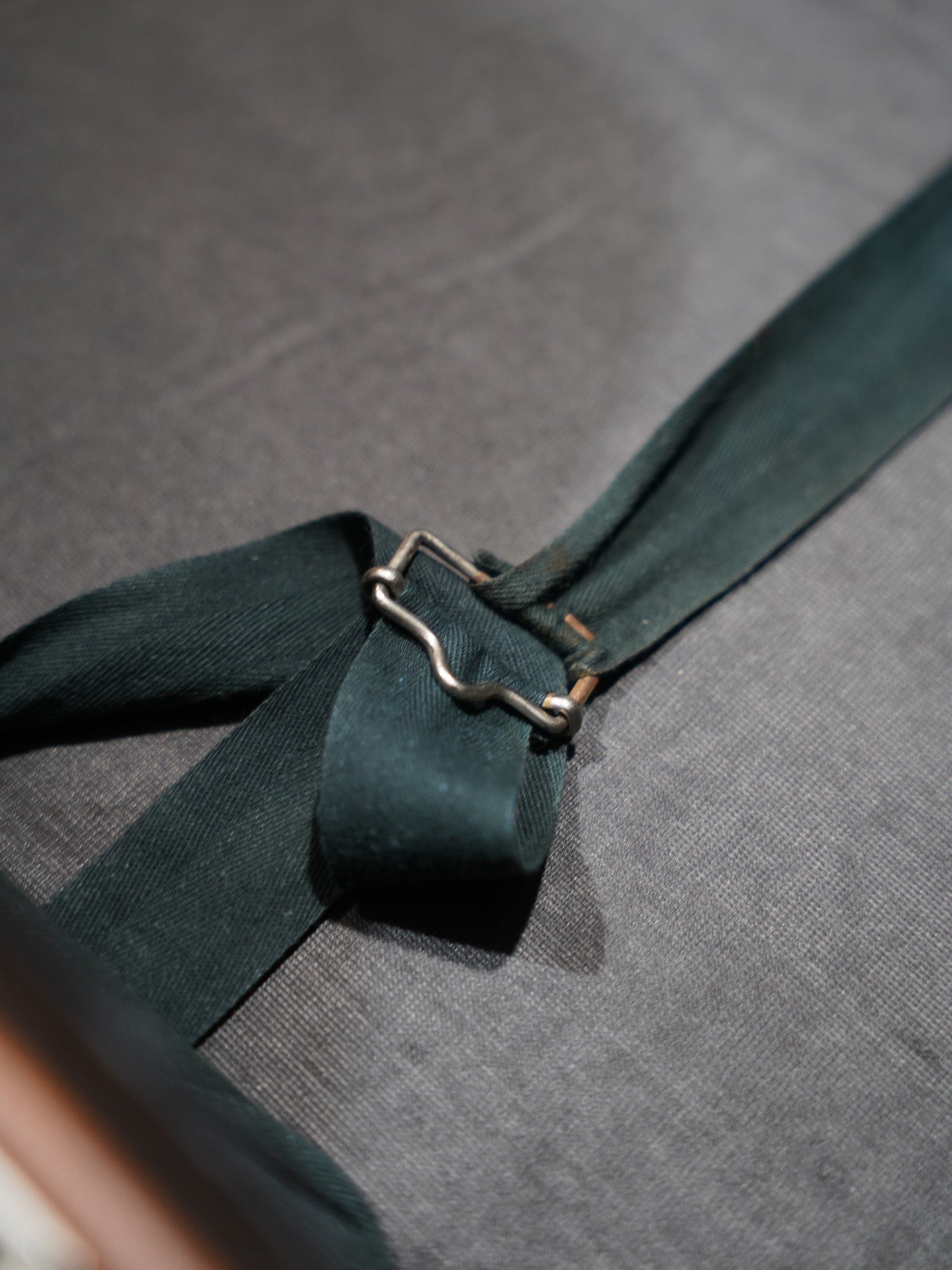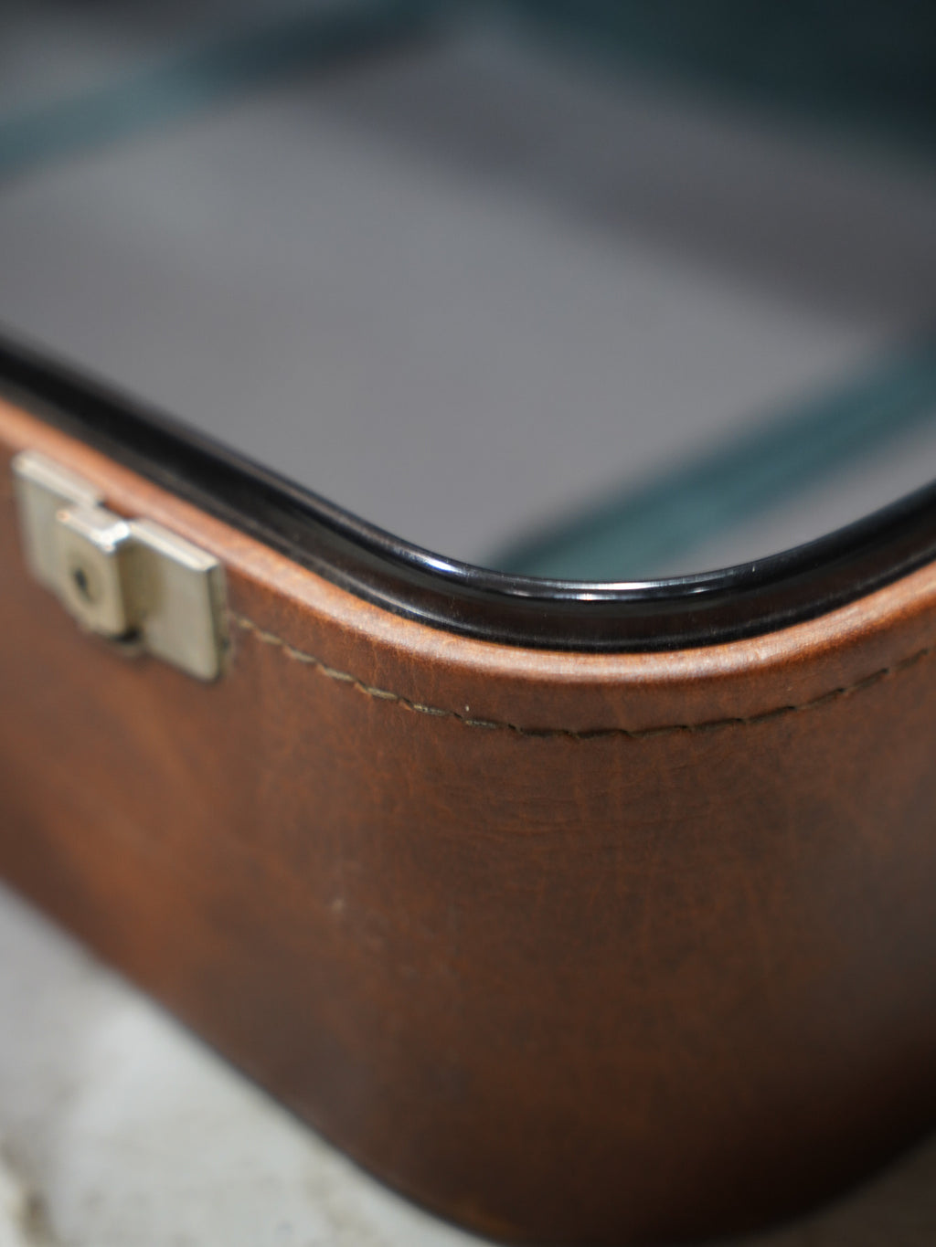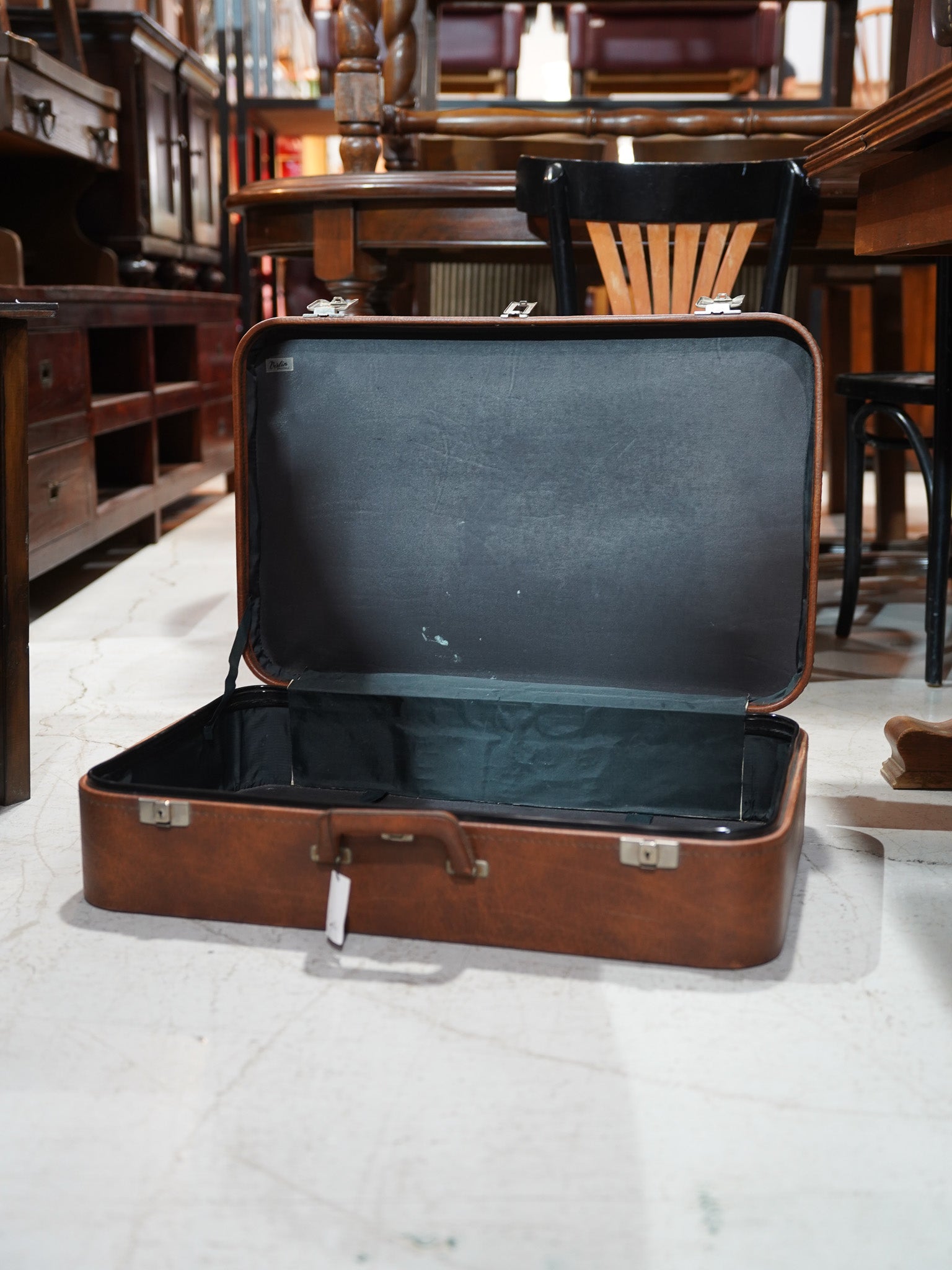 表面に刻まれた豊かな風合いと、使い込まれることで刻まれた細かな表情、手に馴染むハンドルの質感や、時を経て鈍く光る金具の一つひとつに、当時の確かな物作りが息づいています。蓋を開ければ、内装には清潔感のあるグレーのファブリックが張られ、端正に添えられた「Verlin BRUSSELS」のタグが品格を漂わせています。