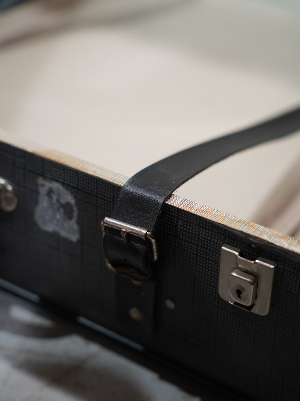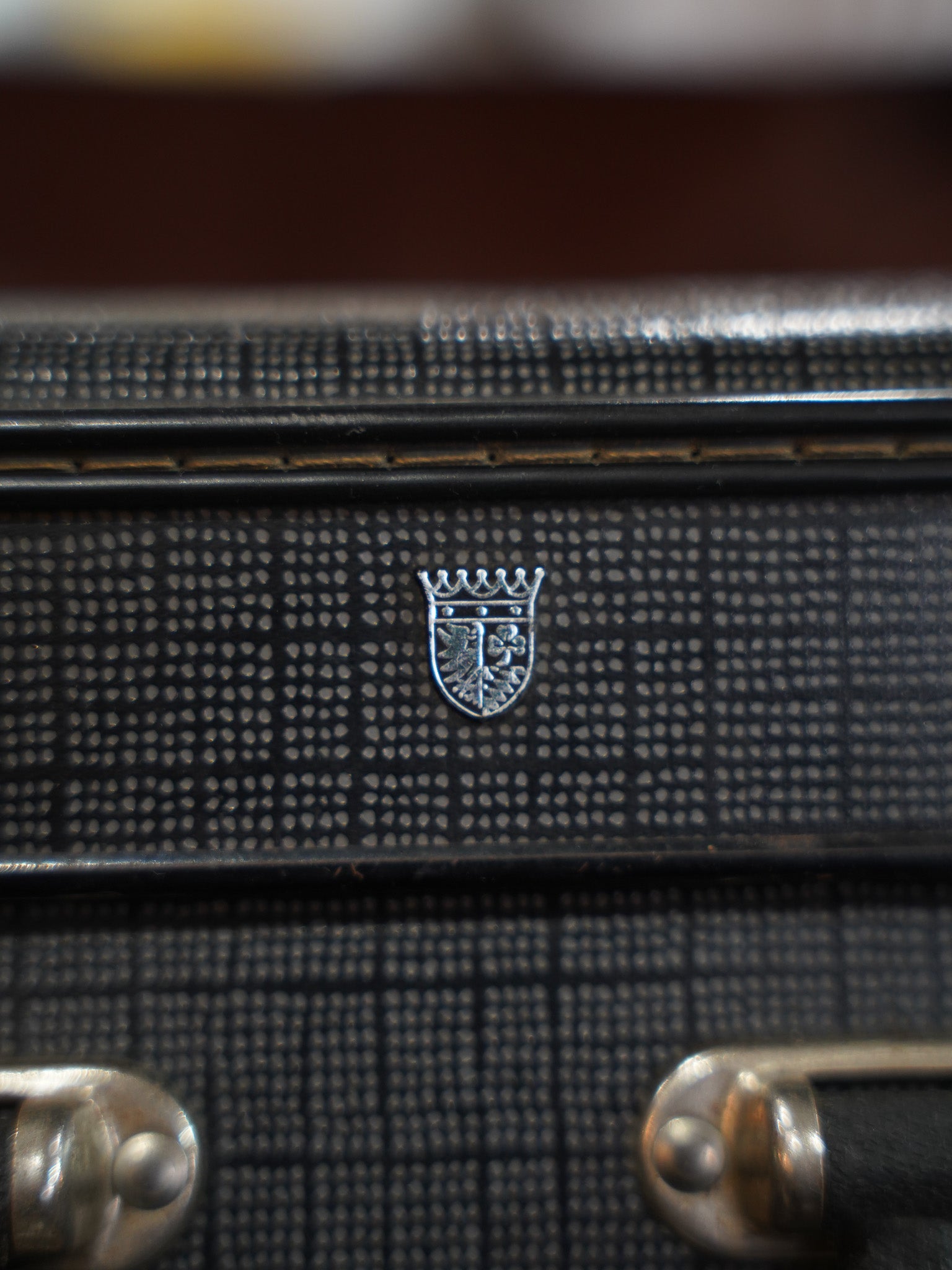 ボディ中央にさりげなく配されたシルバーの紋章タグがアクセントとなり、実用的な道具の中に上品な気品を添えています。経年により味わいを増したレザーベルトや真鍮製のロック金具は、現行品には出せないヴィンテージ特有の深みのある質感を醸し出しており、置くだけでその空間の主役となる存在感があります。