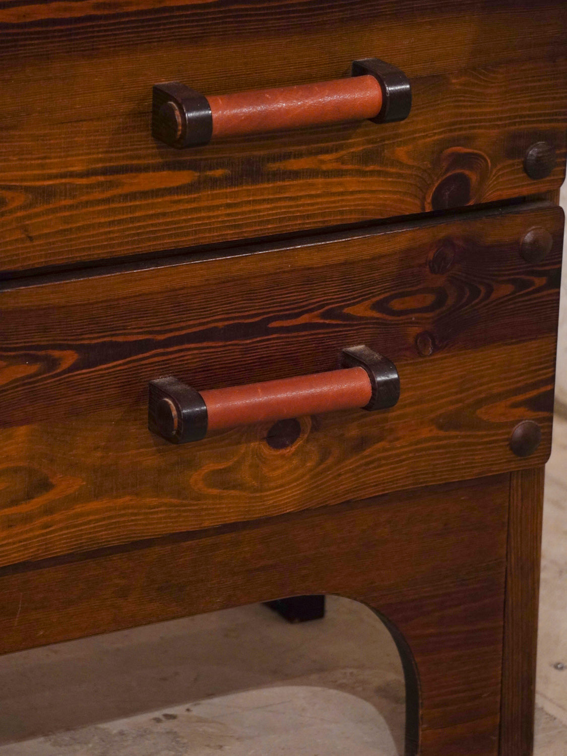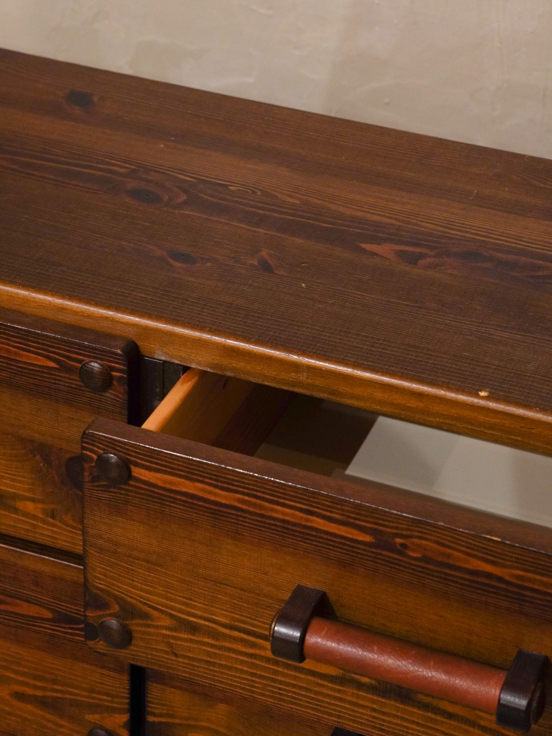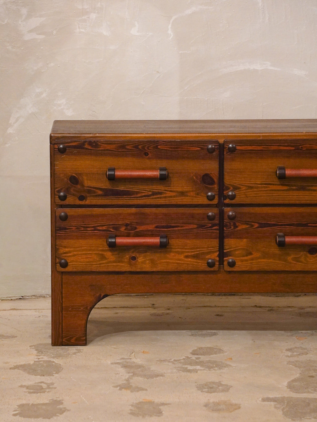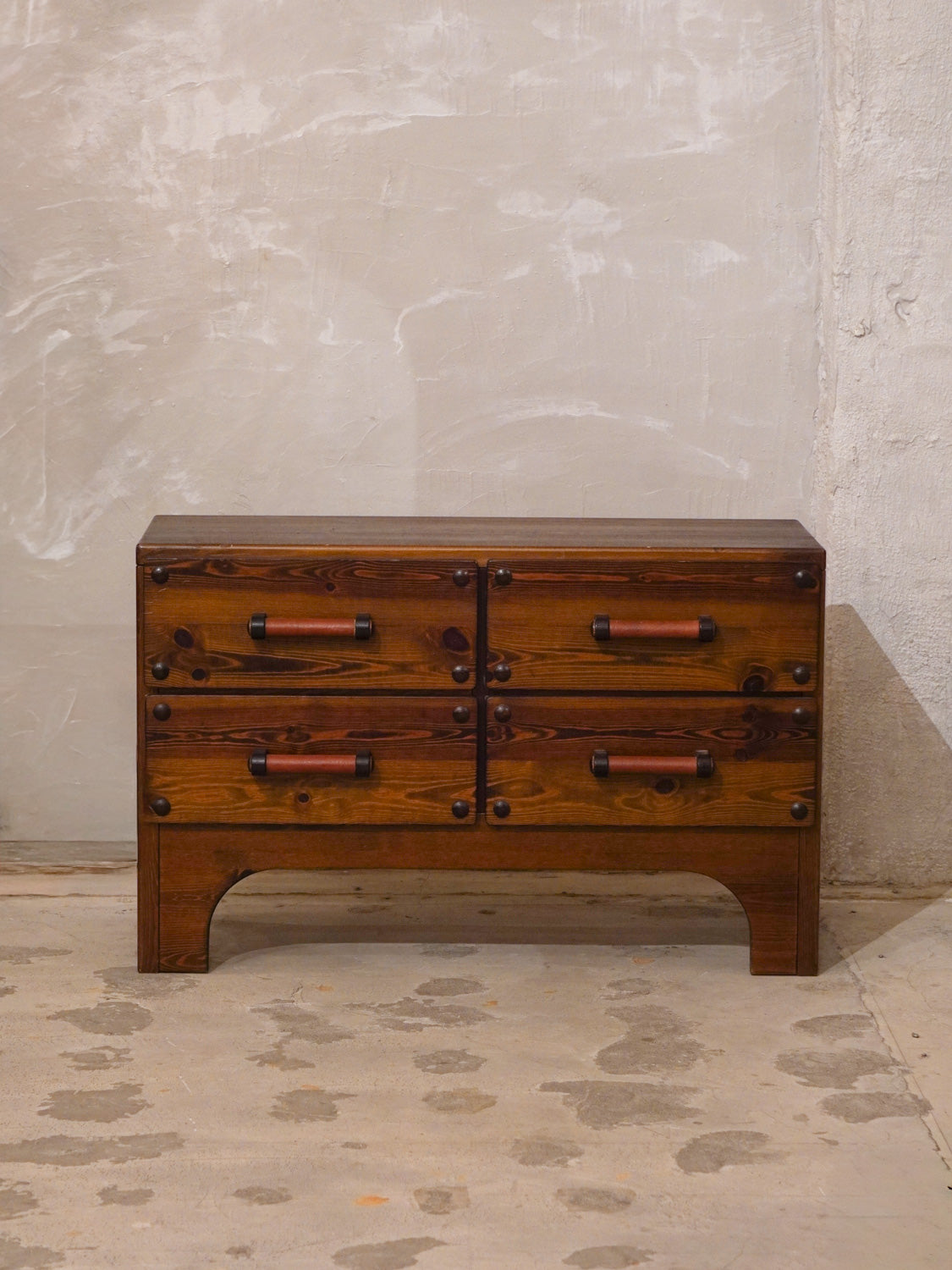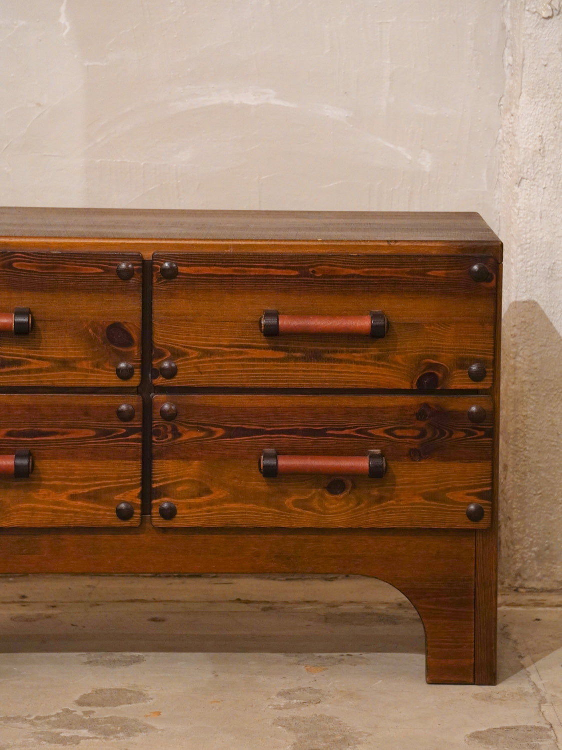 歳月が磨き上げた力強い木目と、手に馴染むレザーが織りなす至高のヴィンテージ・チェスト。