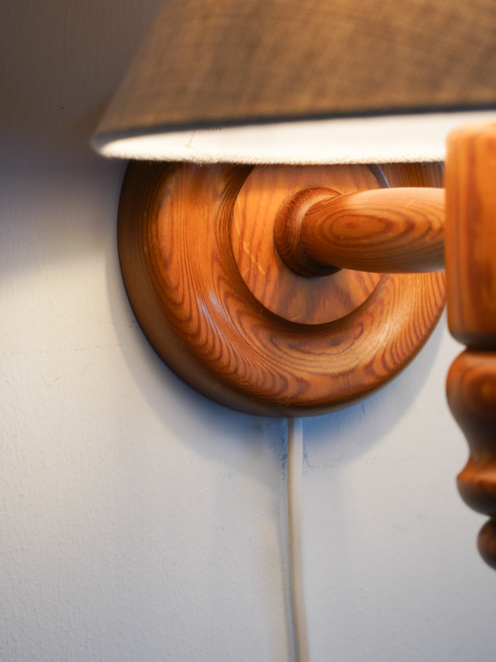 パイン材のぬくもりと柔らかい光による壁面のアクセントランプ