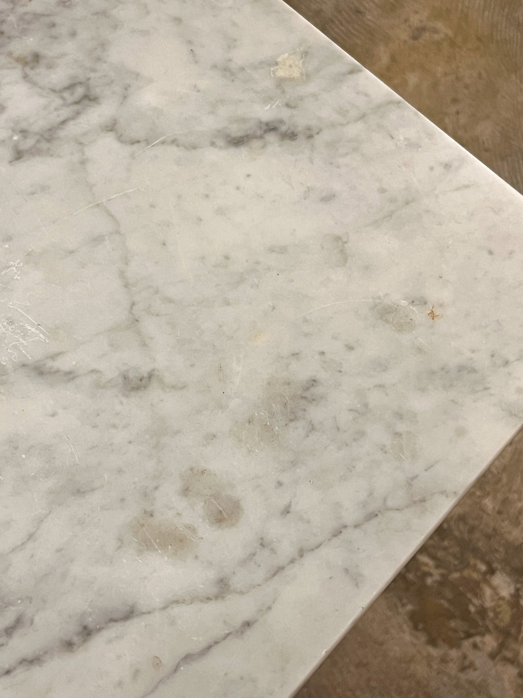 重厚な木製本体に、清らかで美しい天然大理石の天板が組み合わされています。