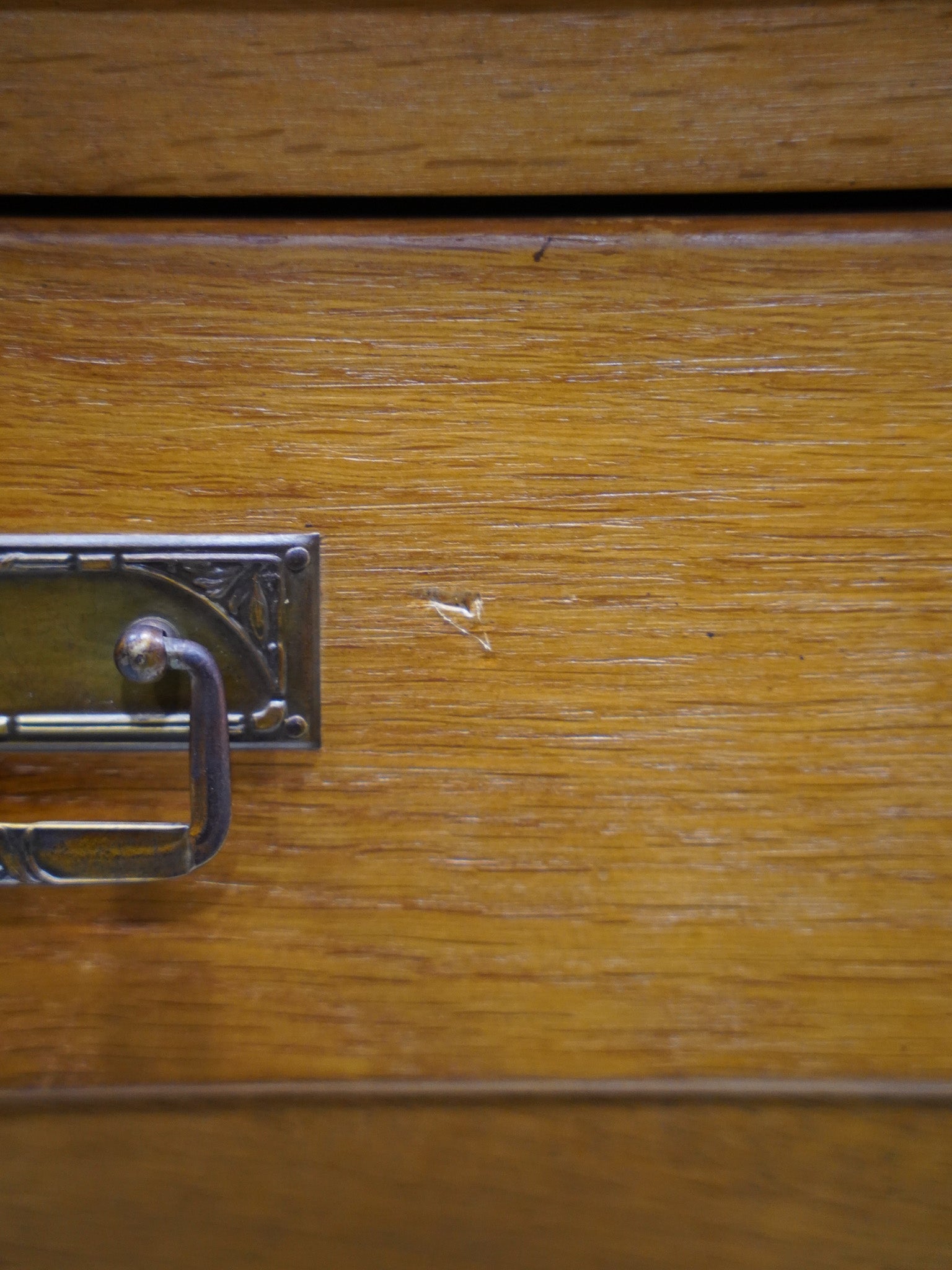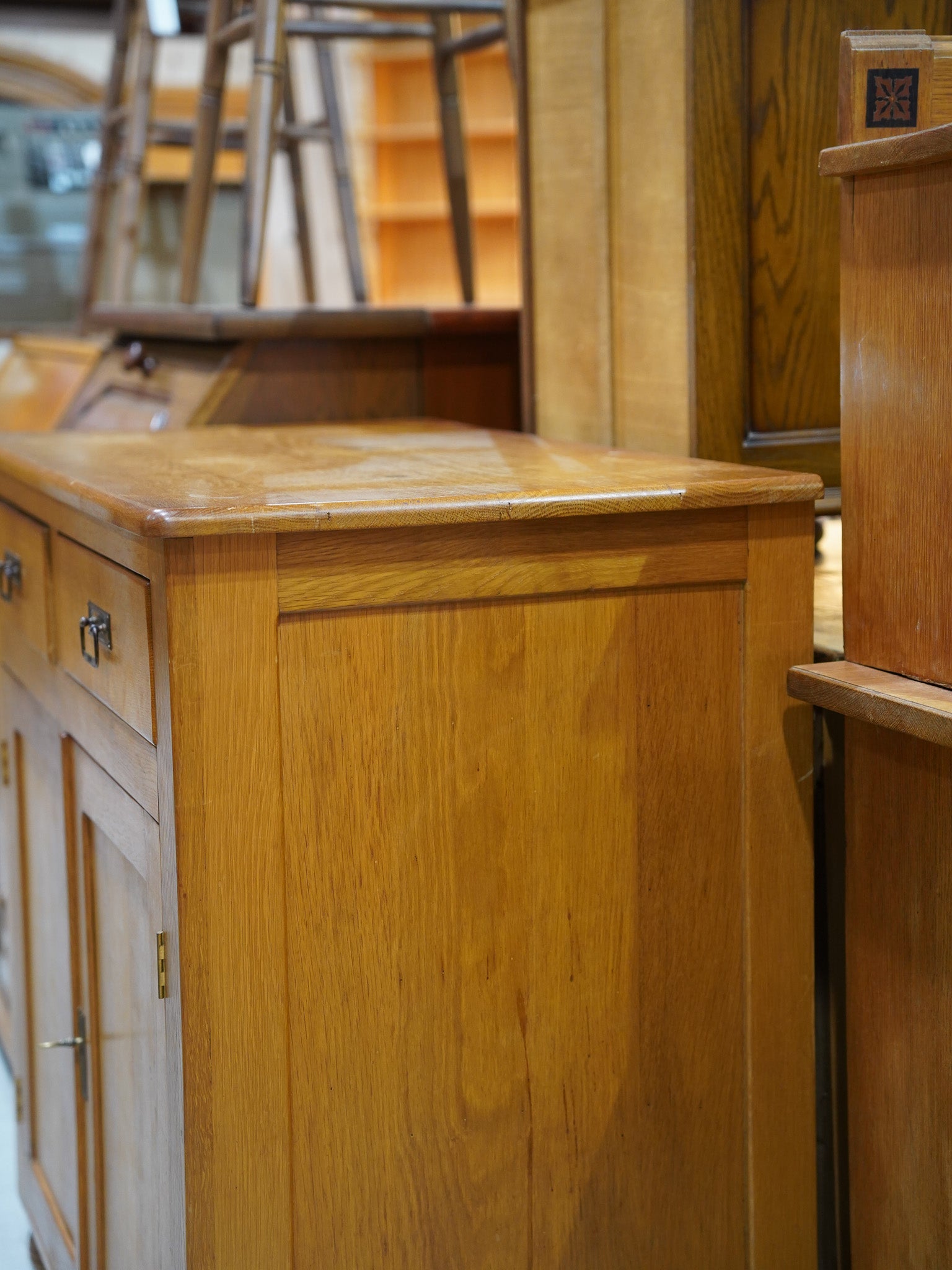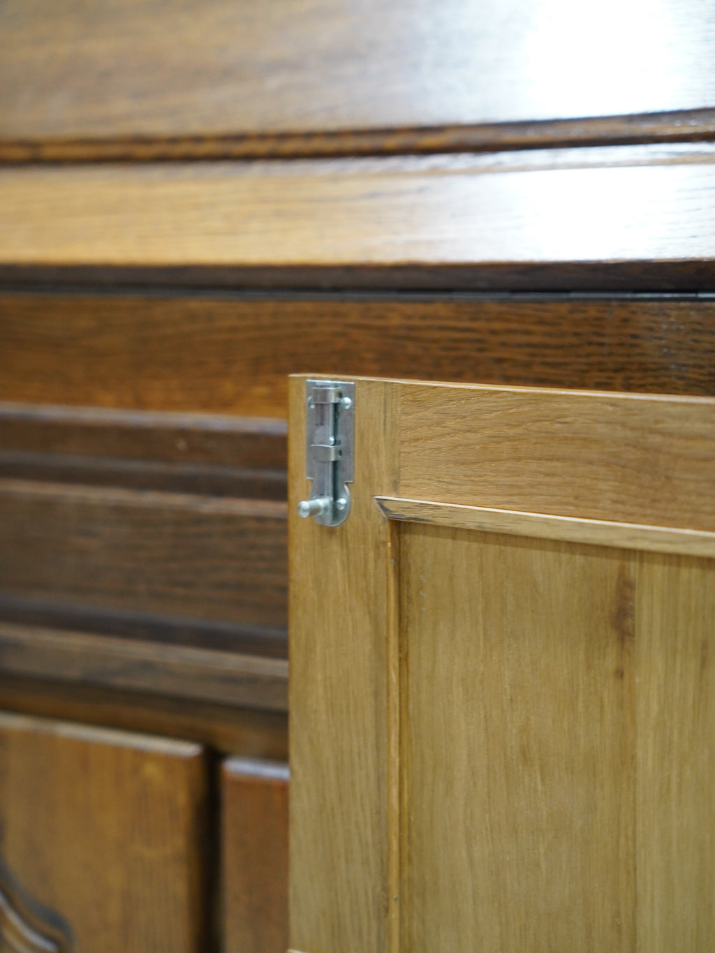 【ヴィンテージキャビネット】オークウッドの温もりが感じられる、引き出しと扉収納を備えたクラシカルサイドボード
