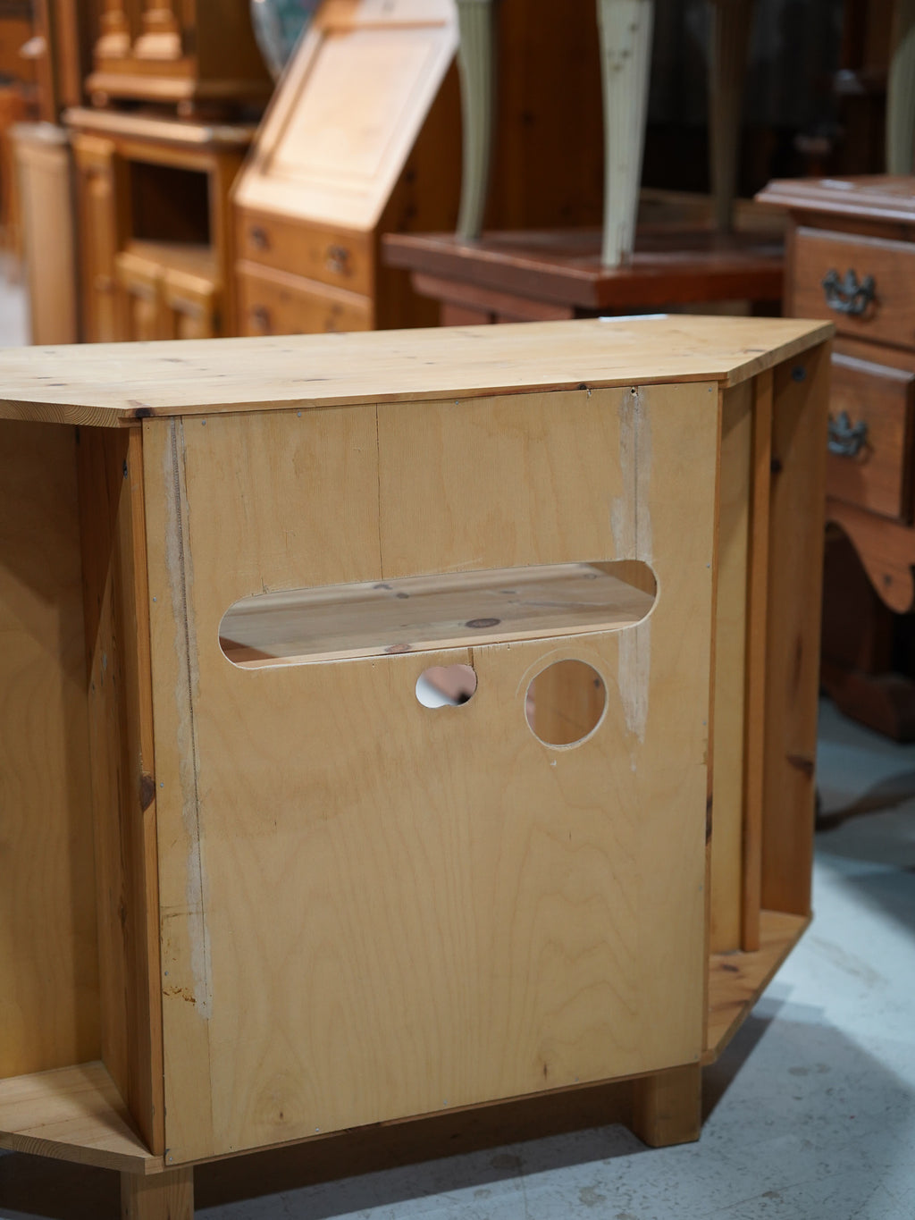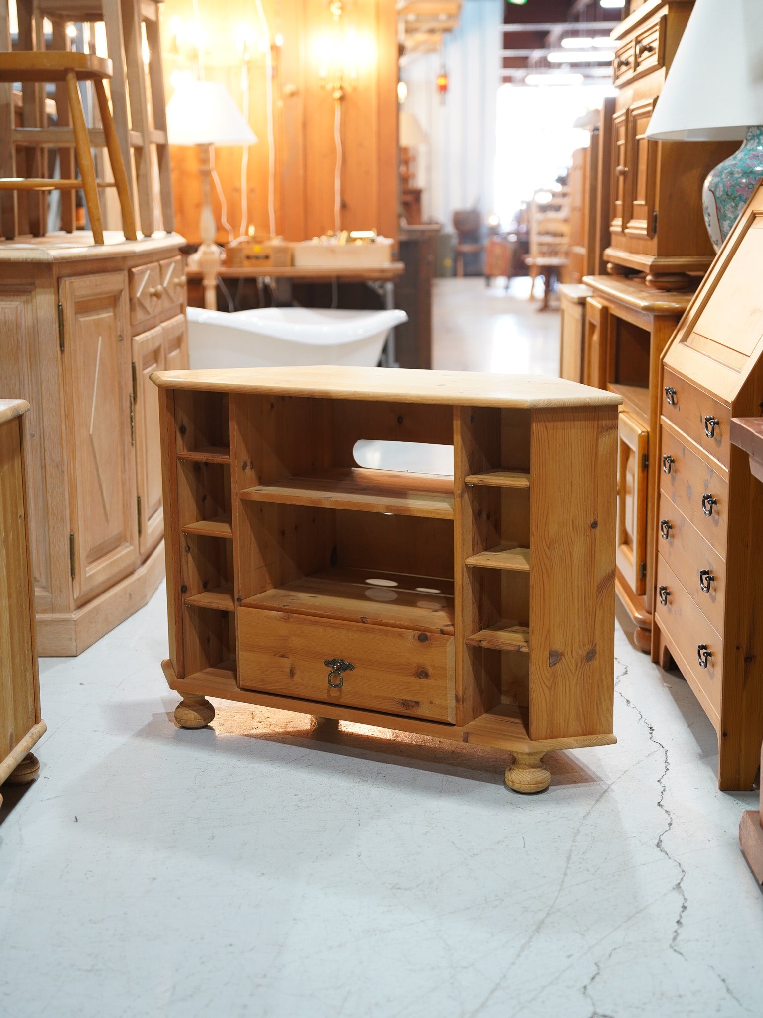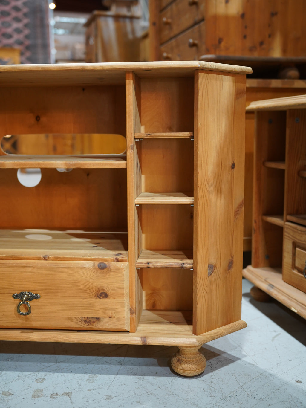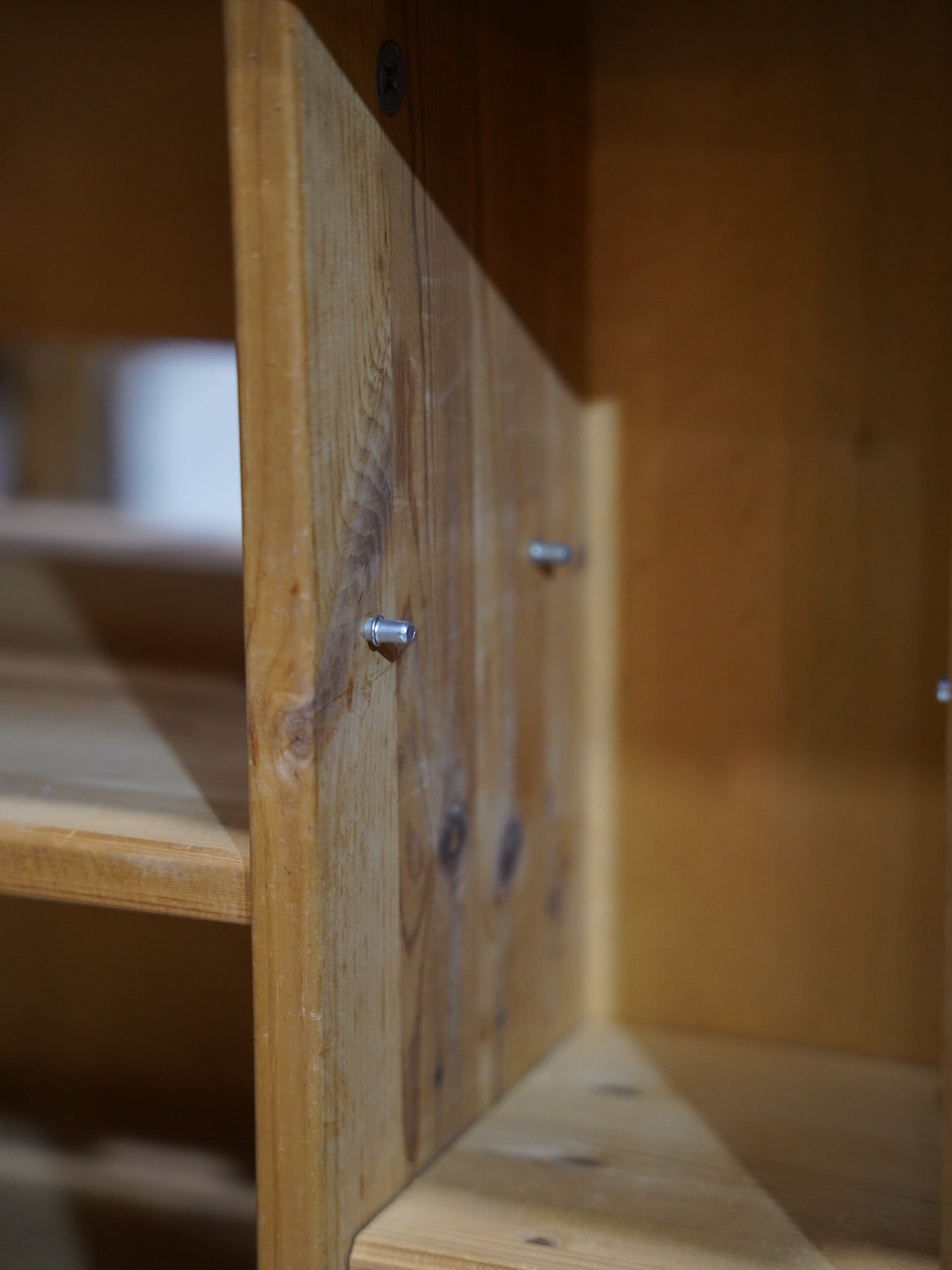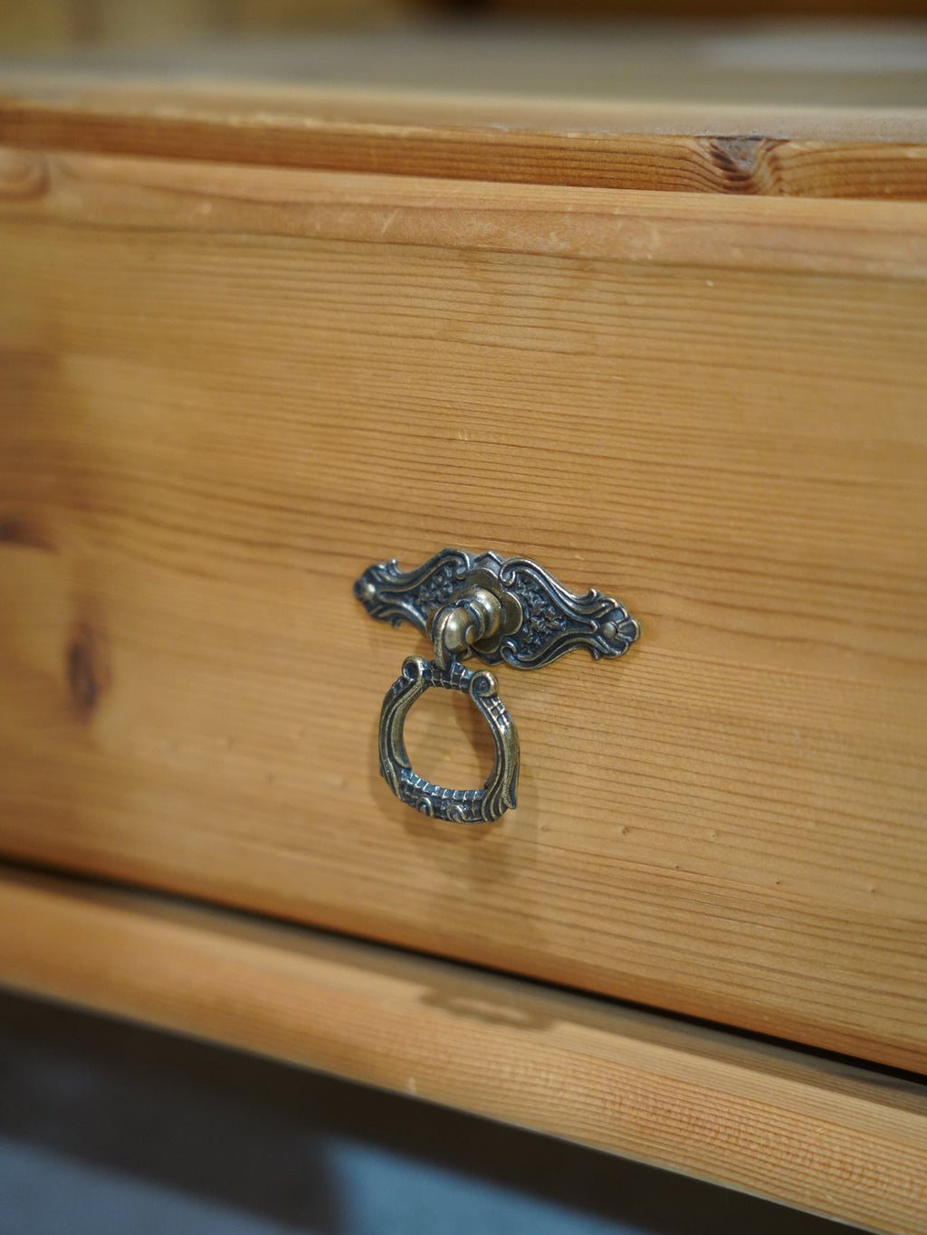 明るいパインウッドと真鍮金具が素朴な、ヨーロピアン カントリースタイルのキャビネット。