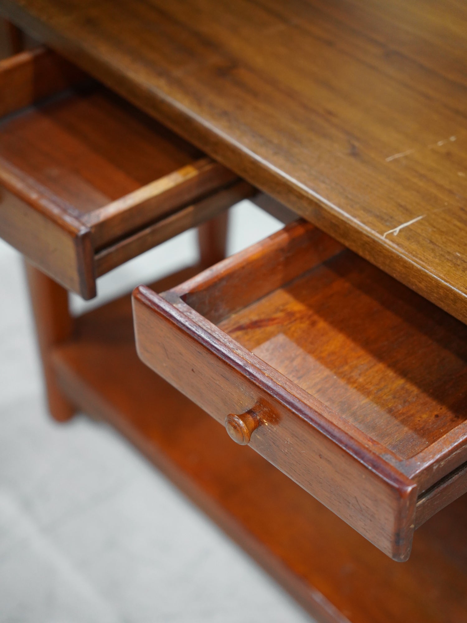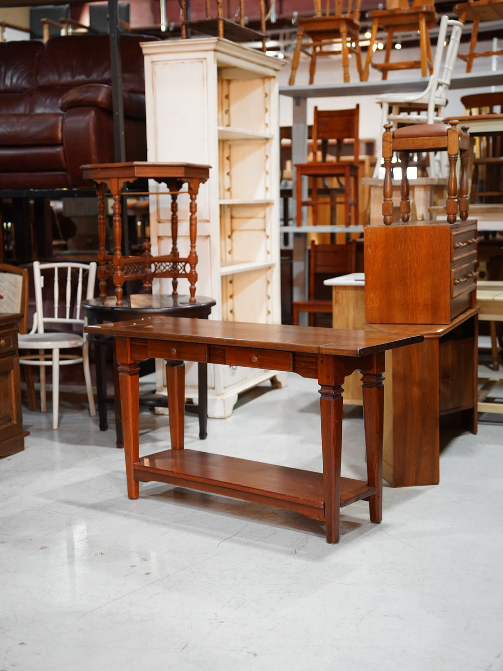 【英国ヴィンテージ】優美なろくろ脚が特徴の引き出しと棚板付きコンソールテーブル