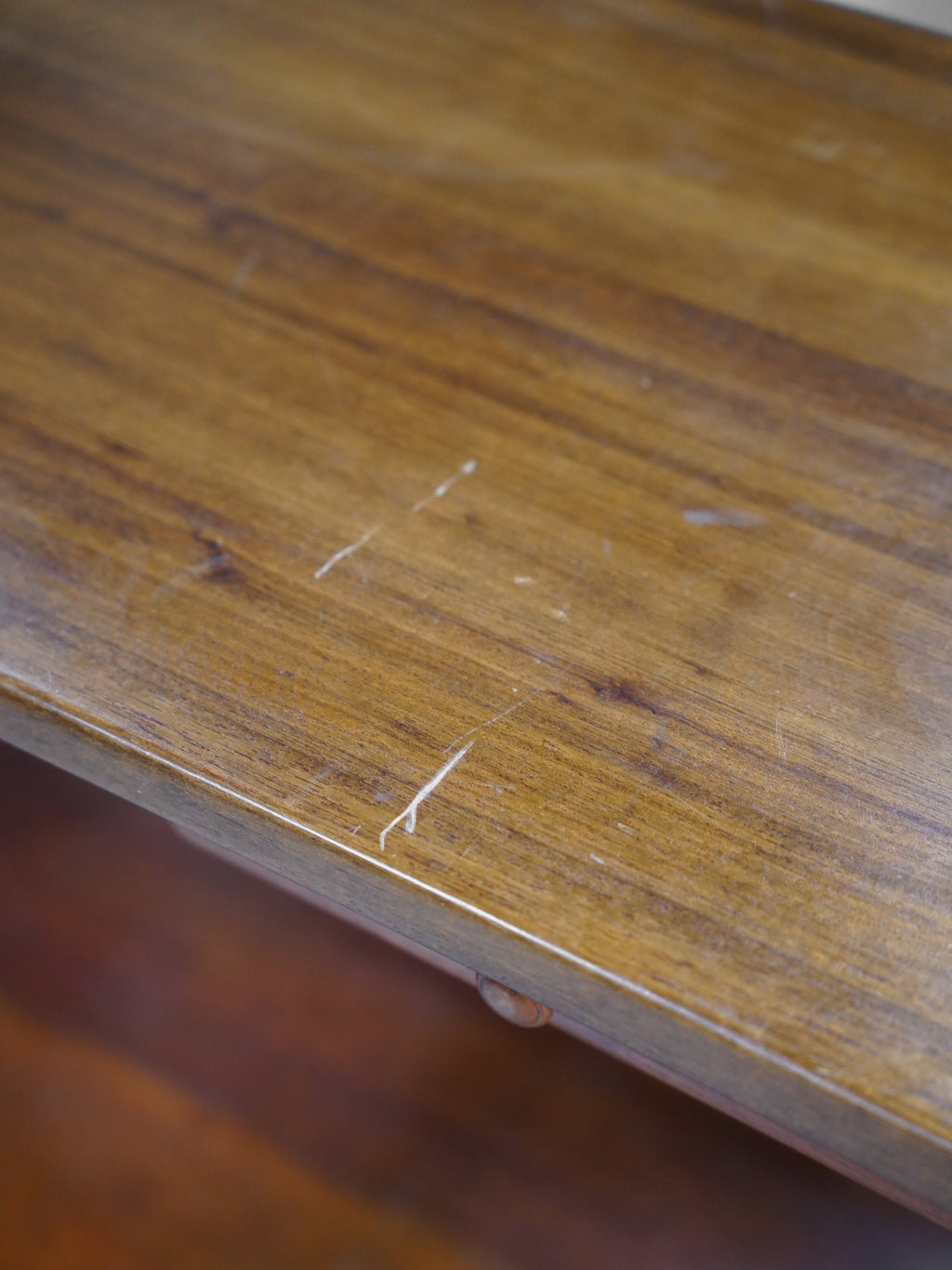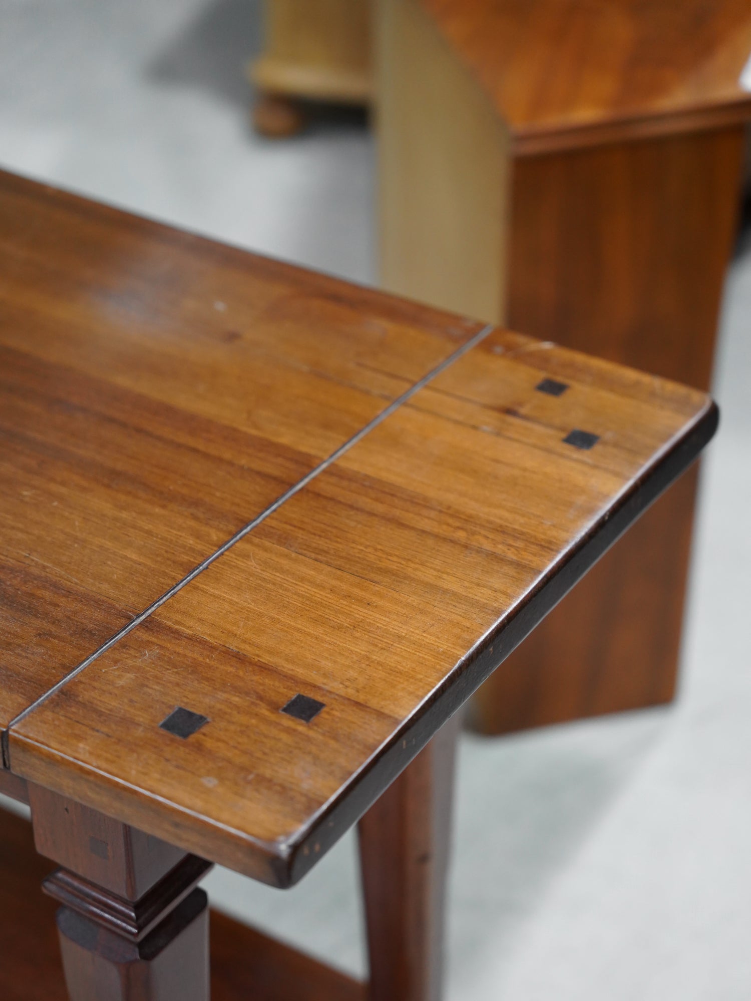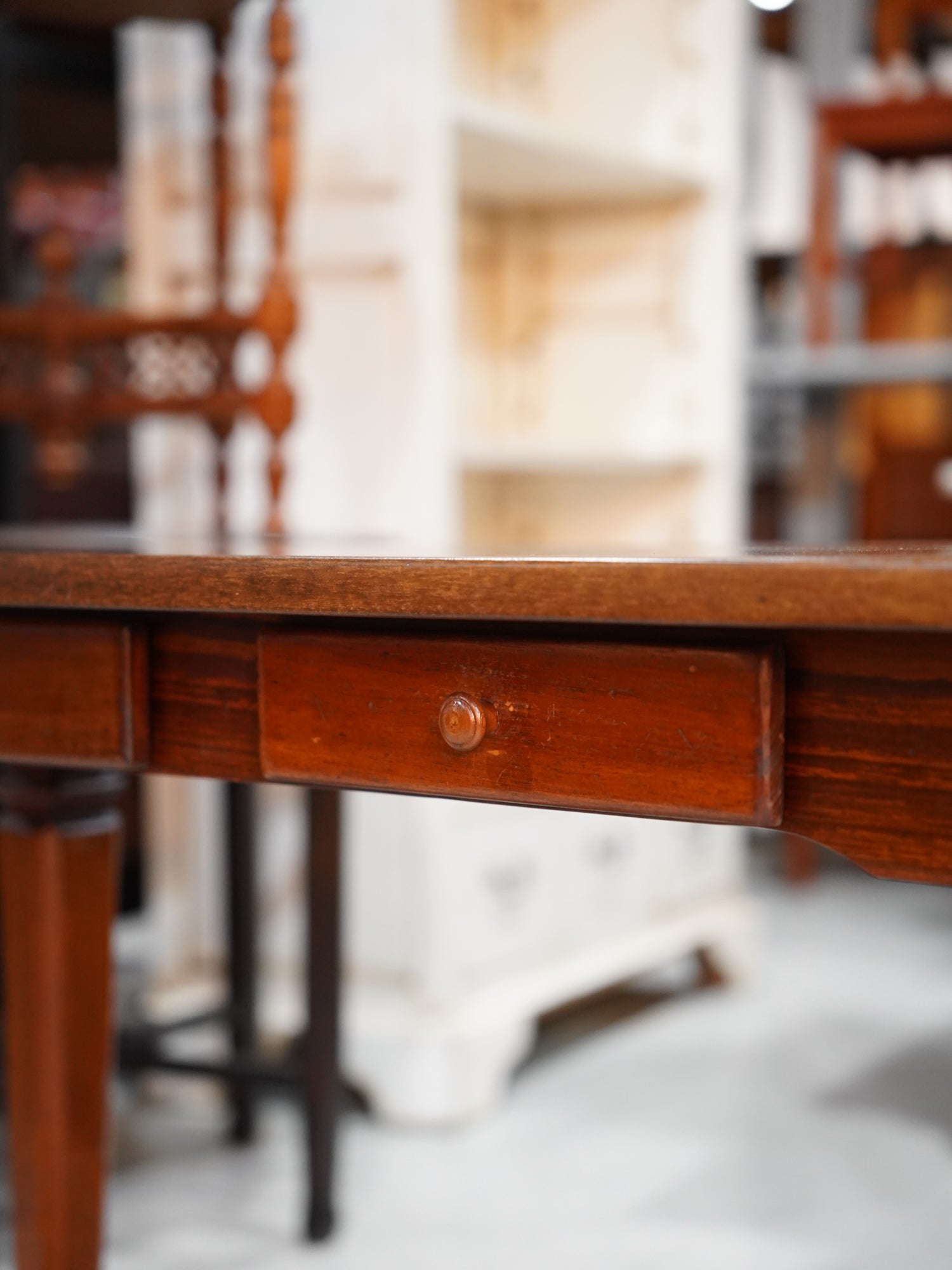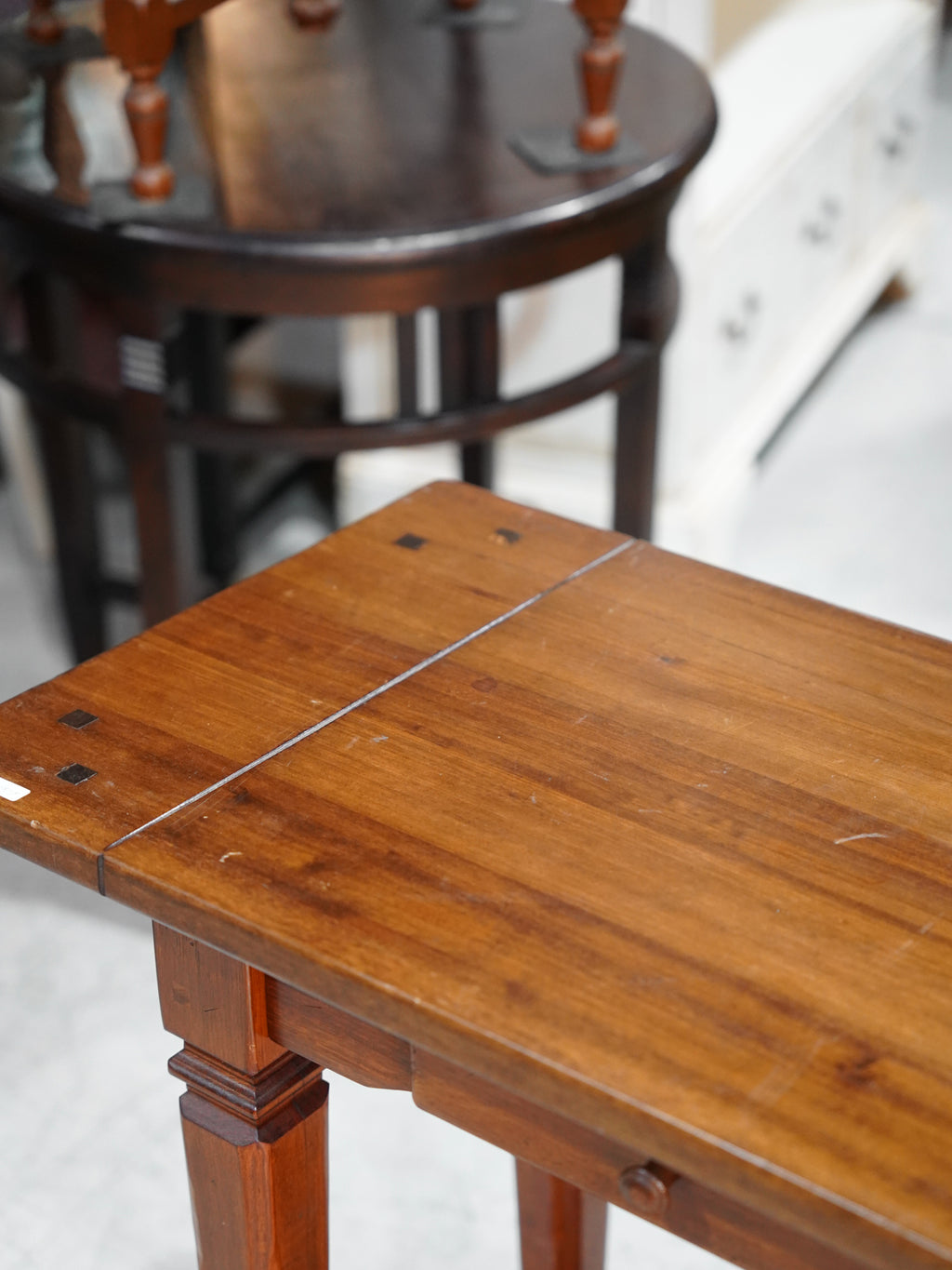 その優美な佇まいは、玄関のホールテーブルや、リビングの壁面を飾るディスプレイテーブルとして最適です。空間に落ち着いた重厚感をもたらす、歴史と風合いを纏った逸品です。