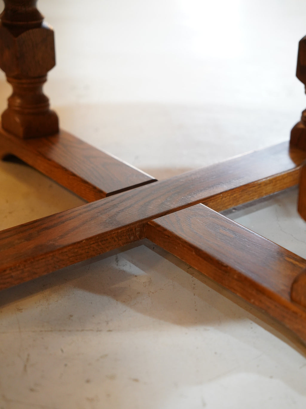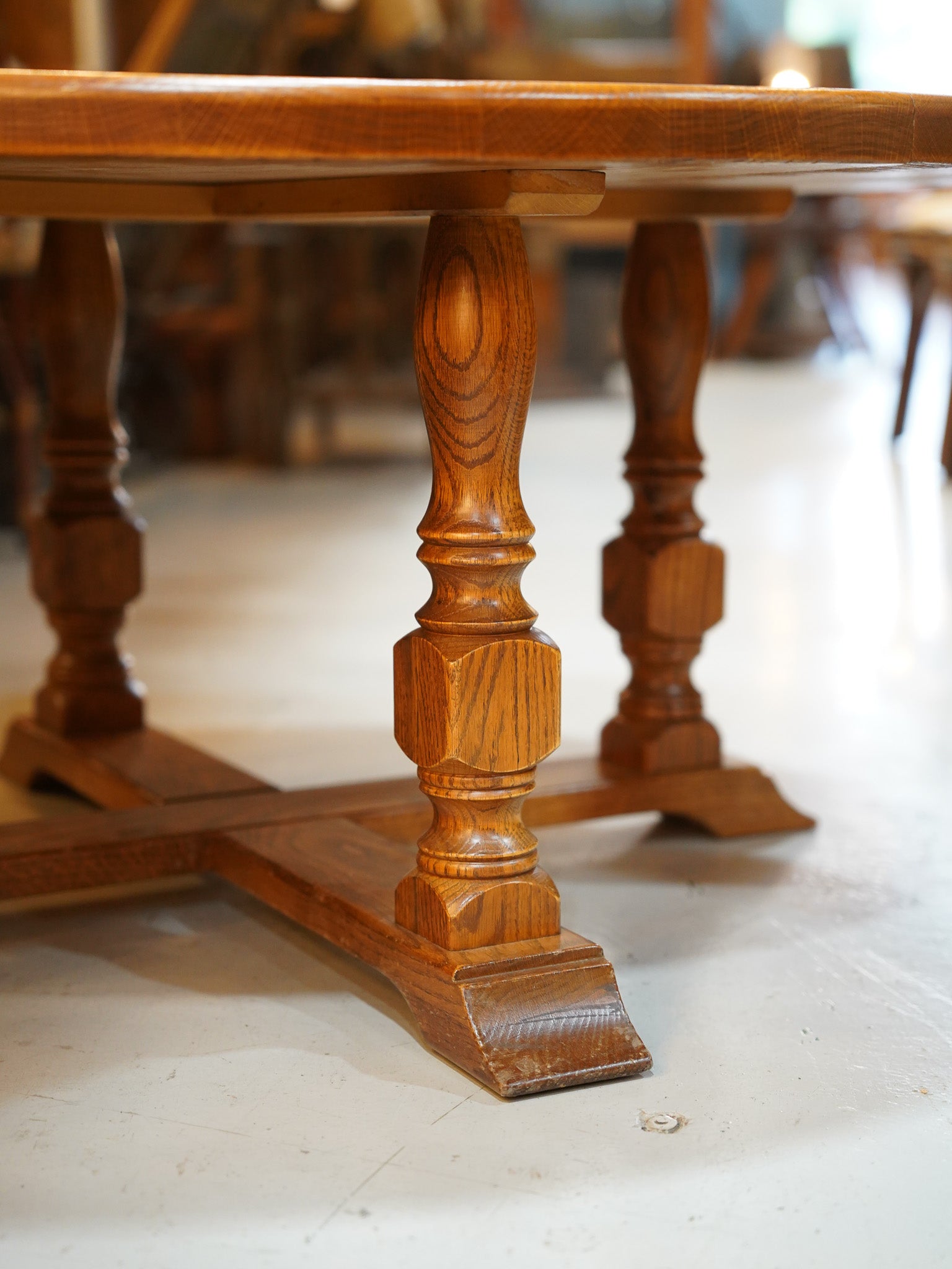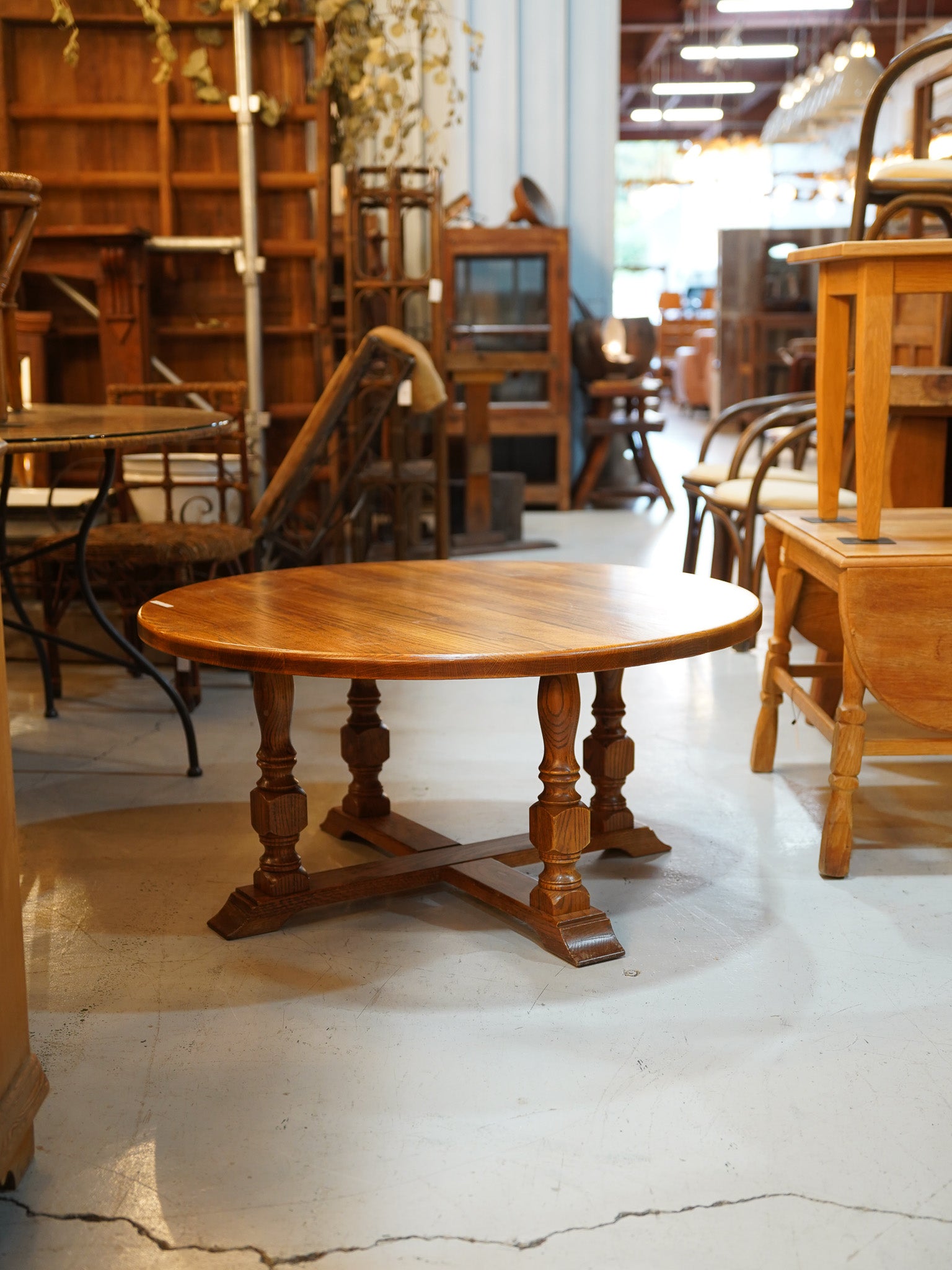 【ヨーロッパヴィンテージ】重厚なろくろ脚と丸天板の英国調のクラシックダイニングテーブル