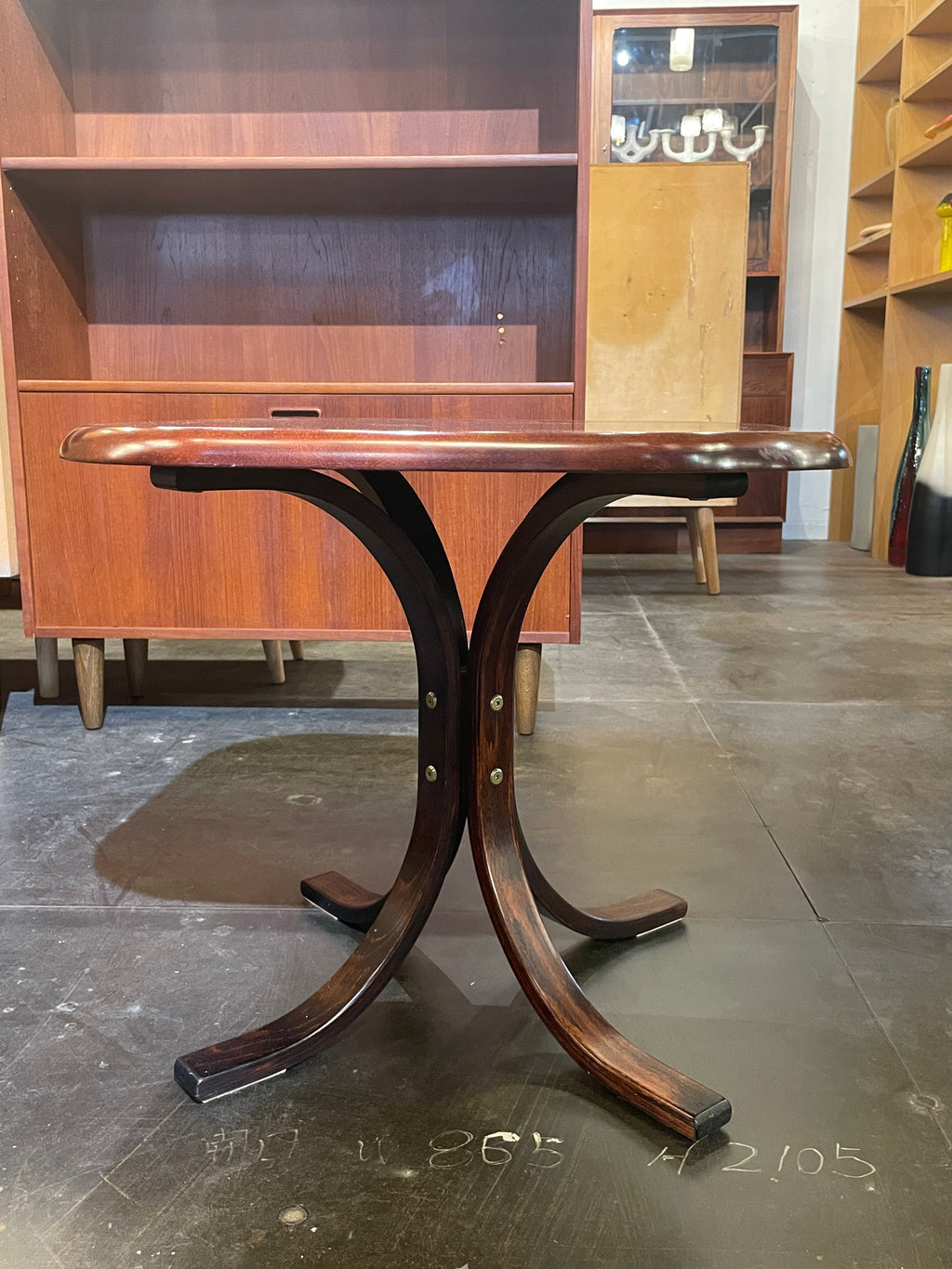【北欧モダン】優美な曲線美が際立つ、濃色ウッドのヴィンテージサイドテーブル