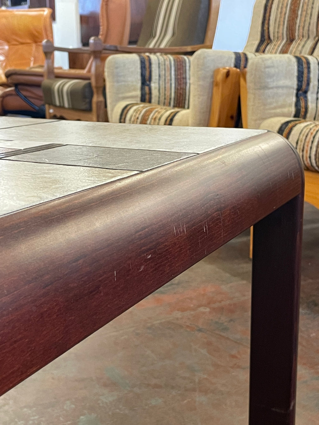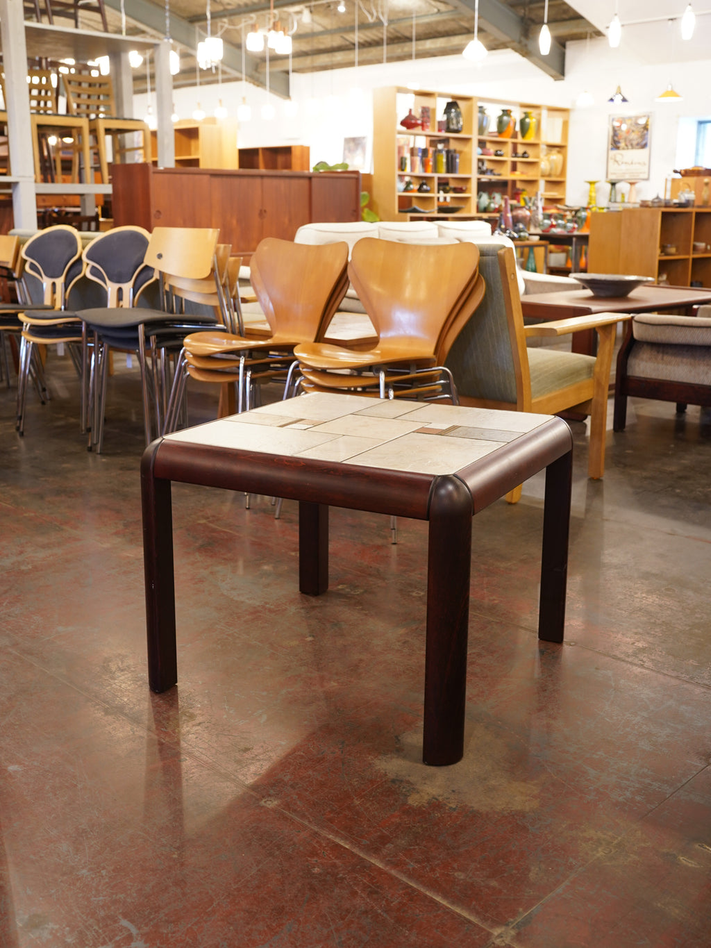 【ヴィンテージタイルトップテーブル】丸みを帯びたダークウッドのフレームが優雅なサイドテーブル
