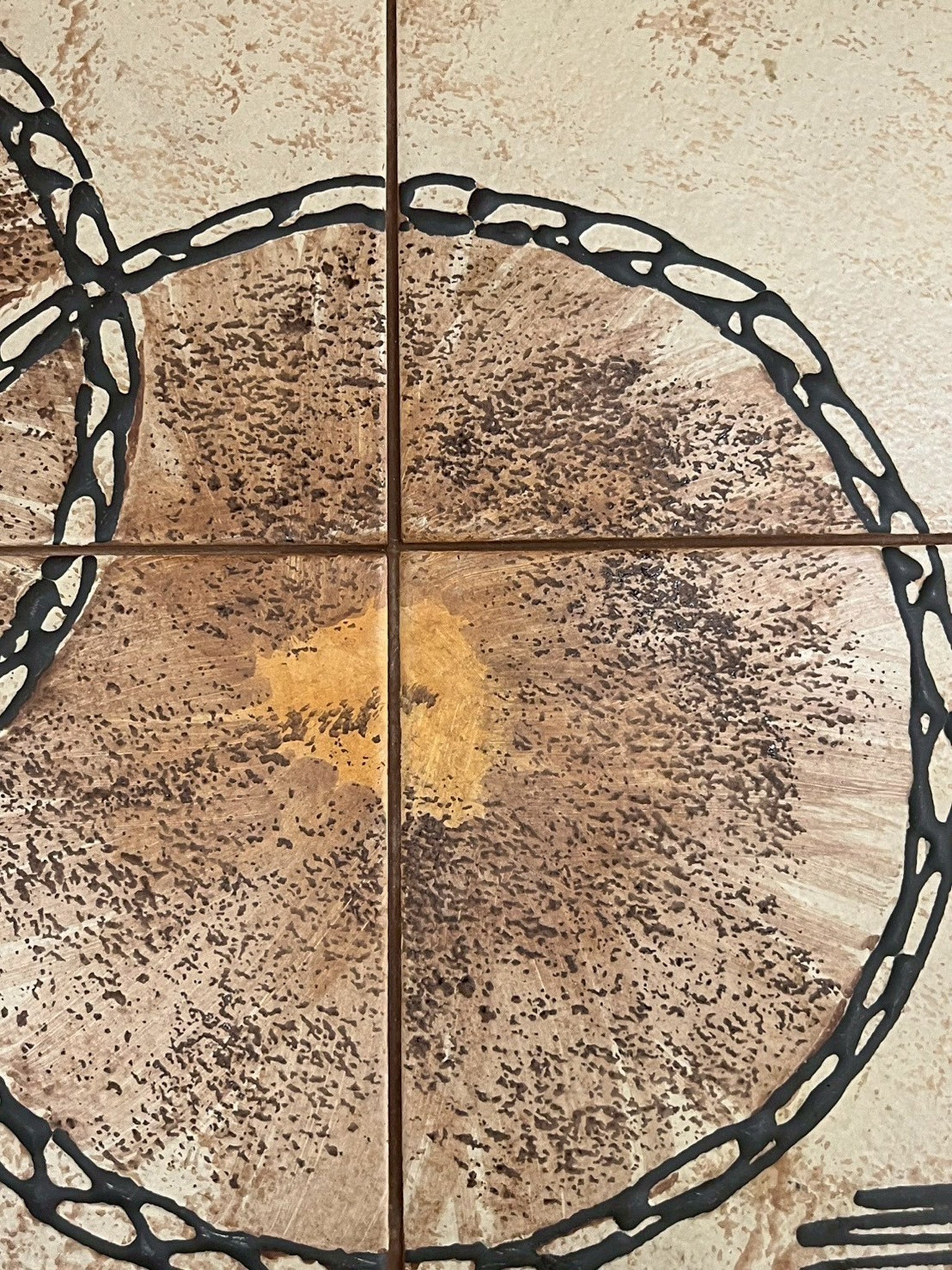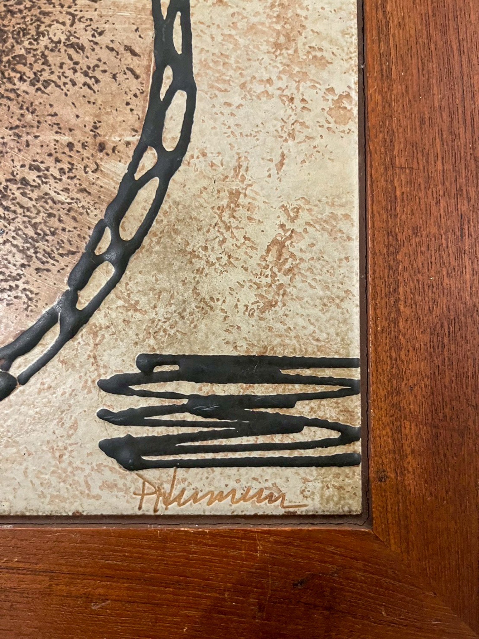 Paul Hermann Poulsenは、1960年代から70年代にかけてデンマークのモダン家具デザインにおいて重要な役割を果たした陶芸家・デザイナーです。Poulsenのデザインは、当時の北欧モダンらしい「抽象性」と「土の温もり」の融合が特徴です。円や線、四角形を組み合わせたモダンなパターンを得意としました。タイル一枚一枚に手仕事のニュアンスが感じられ、工業製品でありながら一点物のような芸術的な奥行きを持っています。