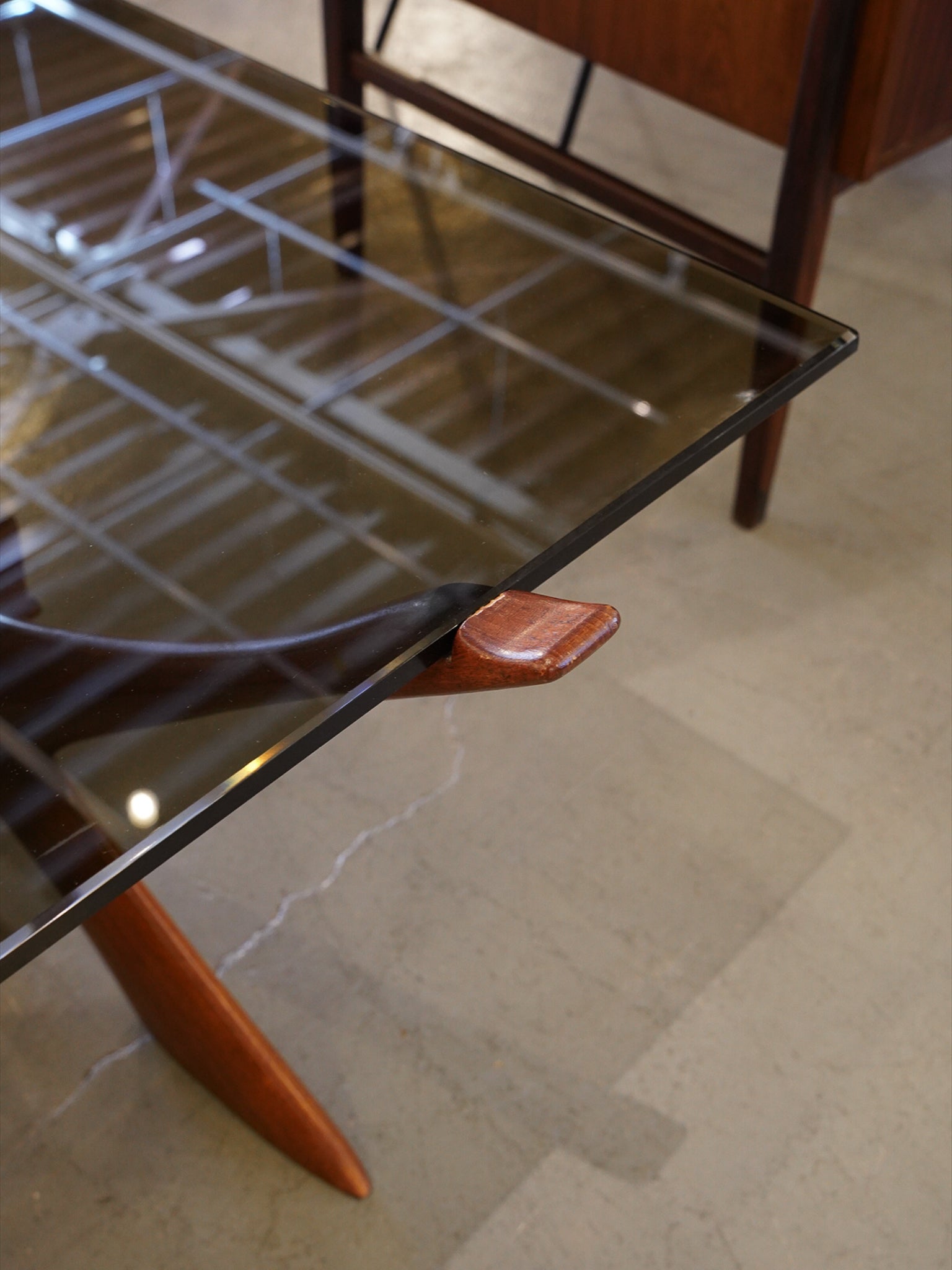 スウェーデンのデザイナー、Fredrik Schriever-Abeln(フレデリック・シュリーバー・アベルン)が1960年代に発表した名作コーヒーテーブル「Condor(コンドル)」です。スウェーデンのÖrebro Glas(オレブロ・グラス)社によって製造されたこの作品は、その名の通り、コンドルが空高く翼を広げたようなダイナミックで優雅な造形美が最大の特徴です。
