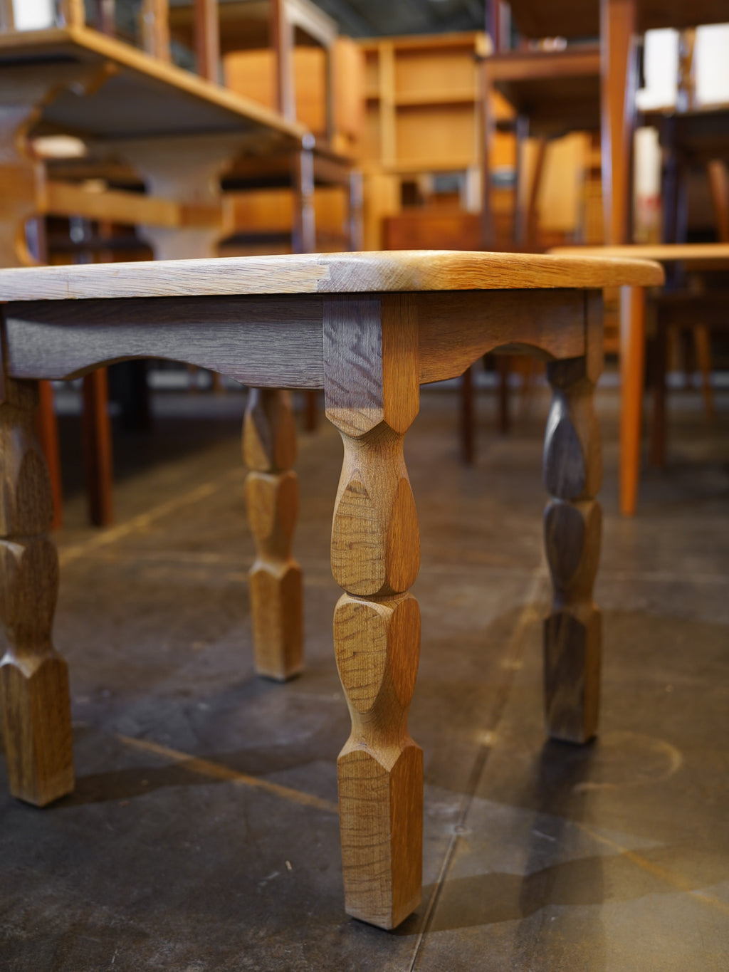 天板に埋め込まれたヴィンテージ調のタイルが、カントリーな雰囲気を感じさせる一台。明るいオークの木肌とタイルのコントラストが美しく、お部屋に柔らかな表情をプラスしてくれます。
