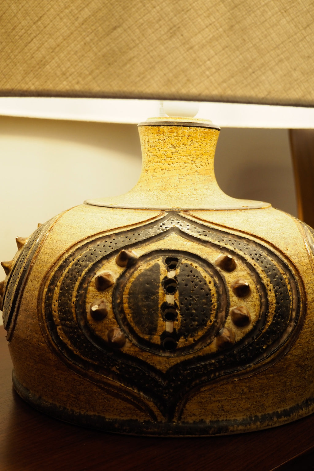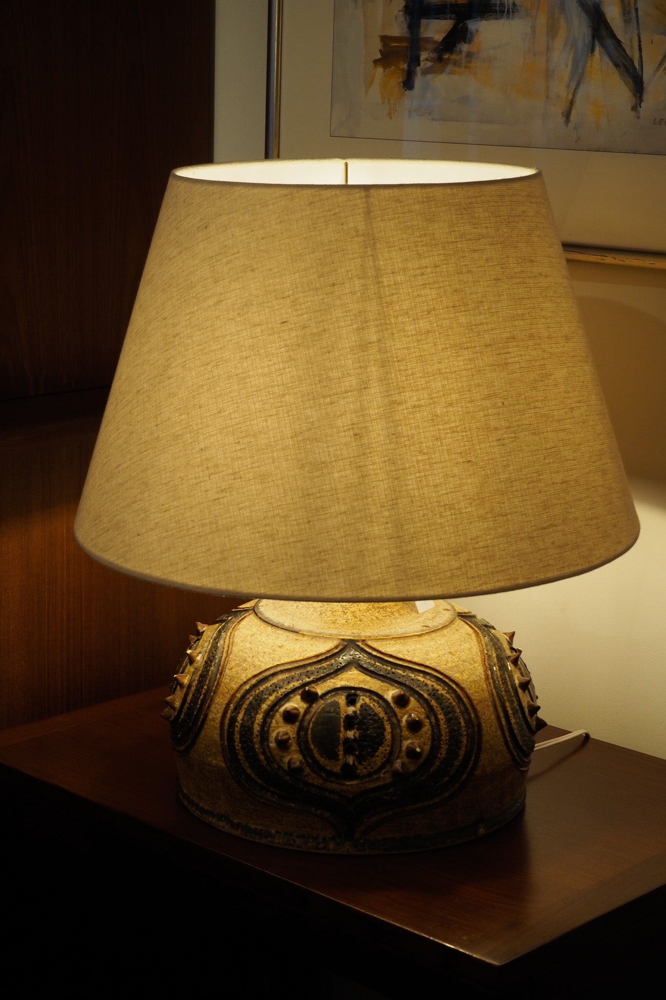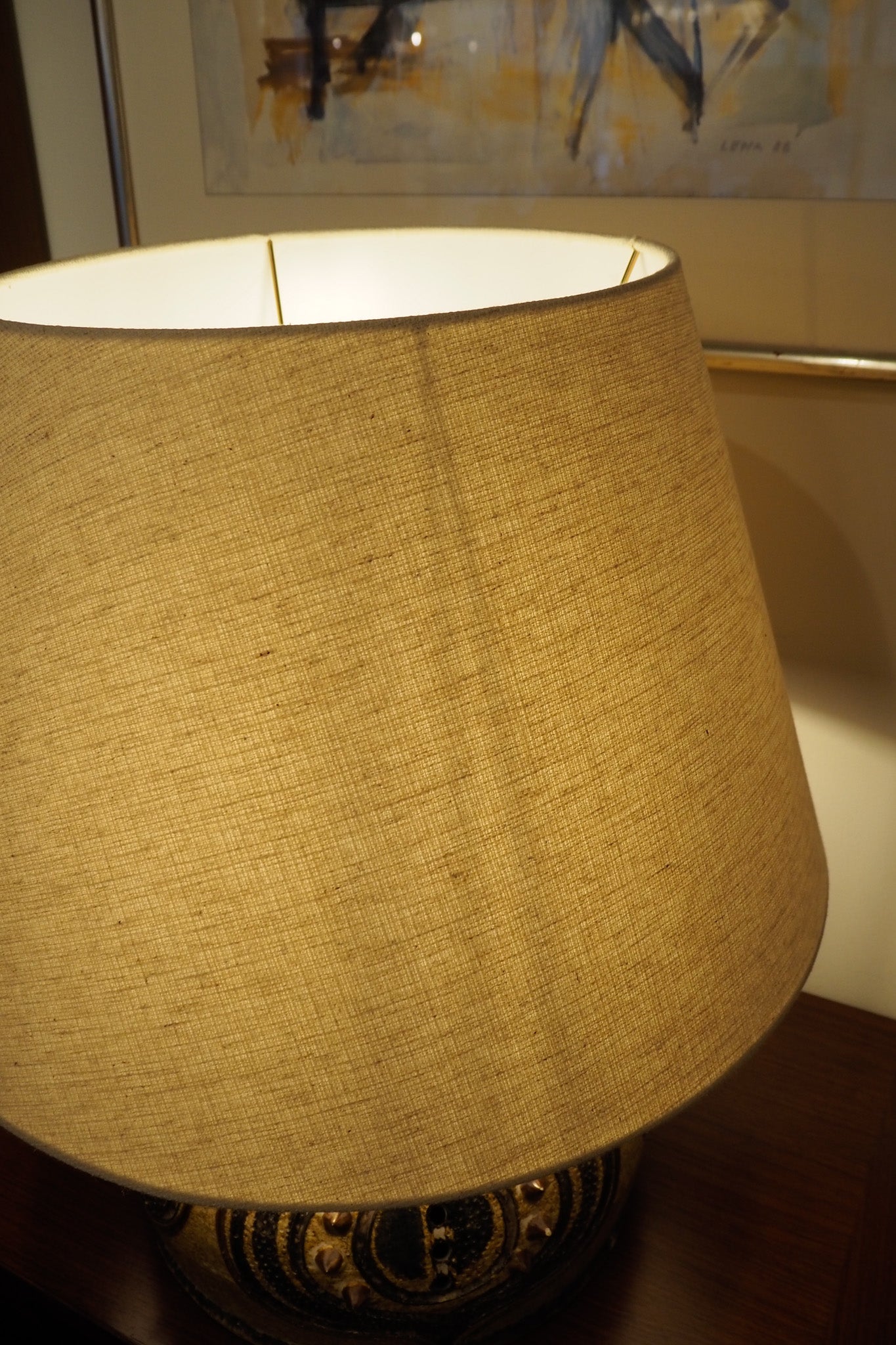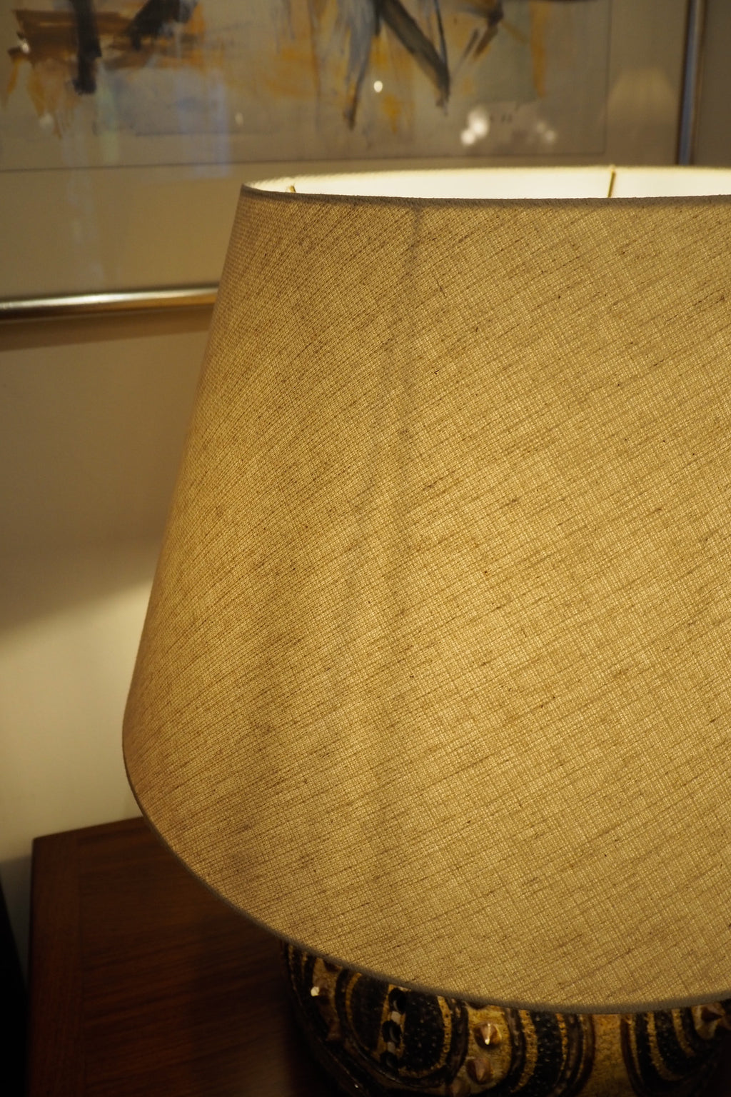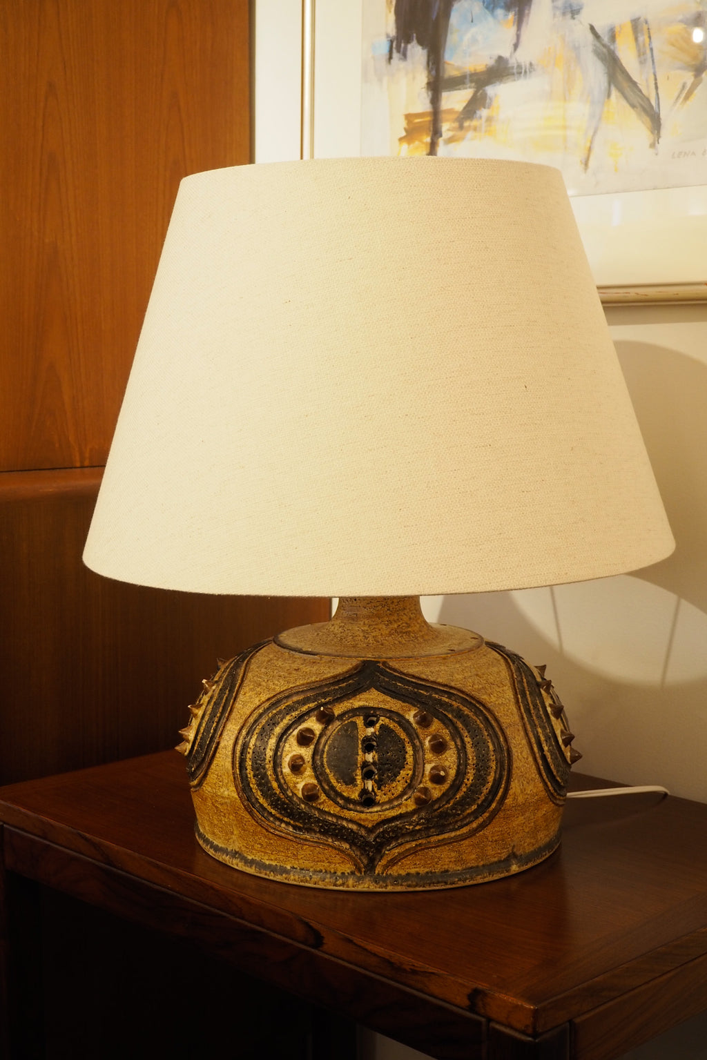 北欧らしい絵付けが施された大ぶりのテーブルランプです。