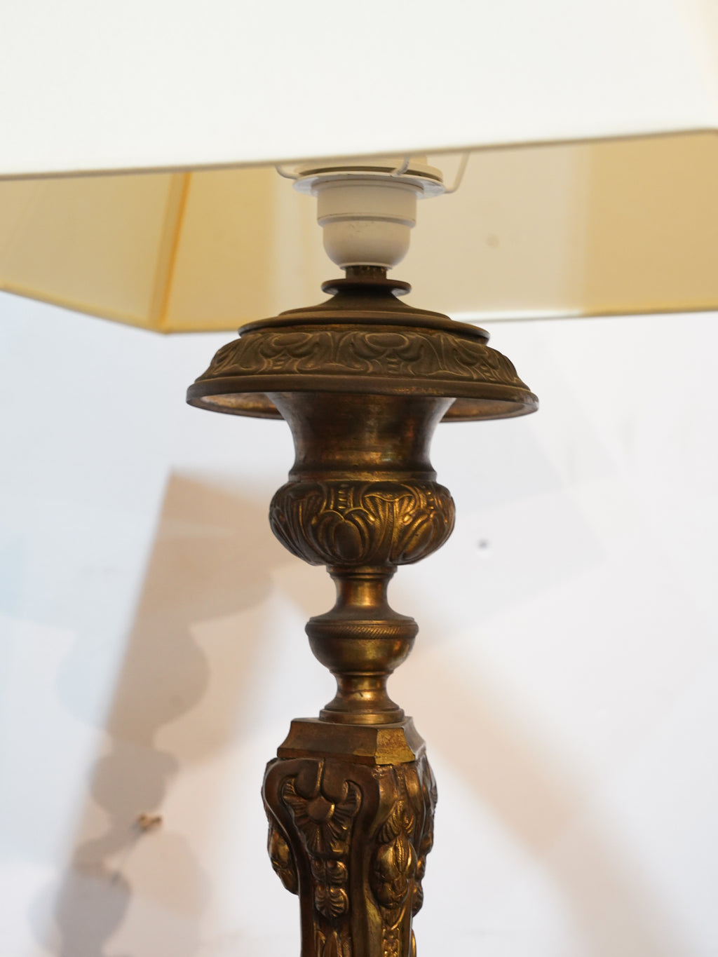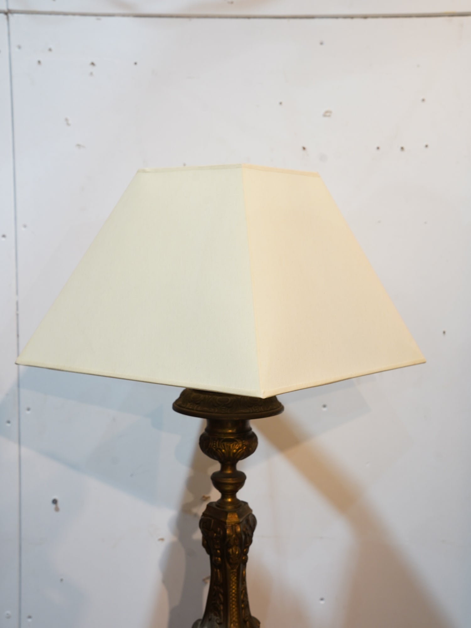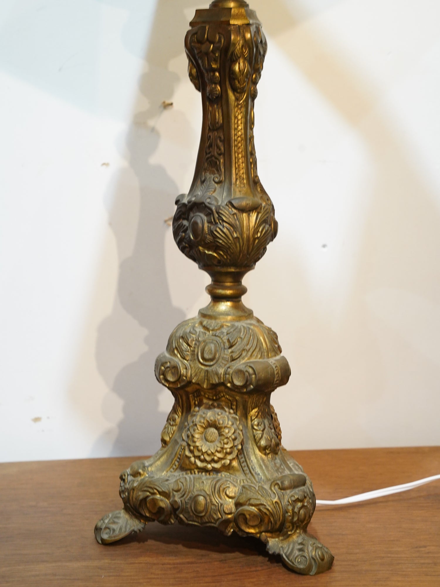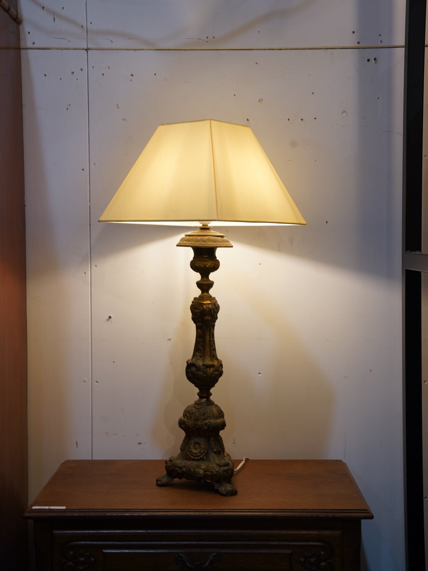 彫刻のような美しい装飾が目を引く、アンティーク調のテーブルランプです。