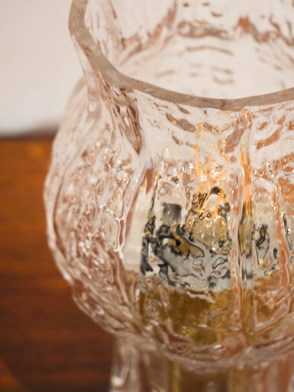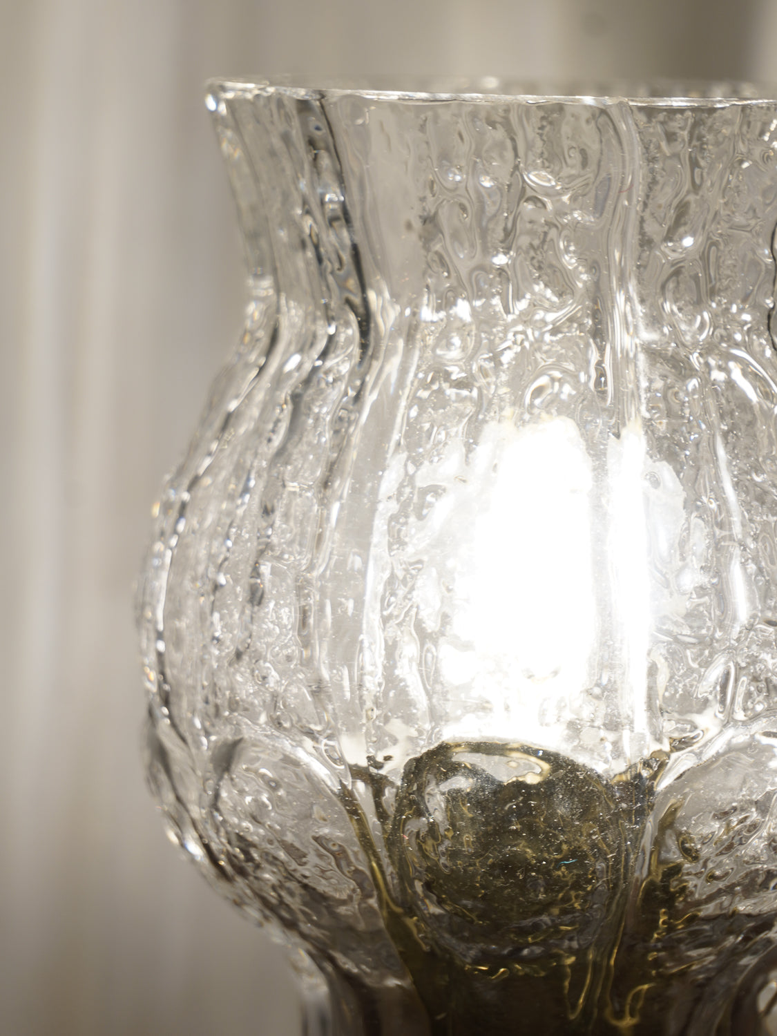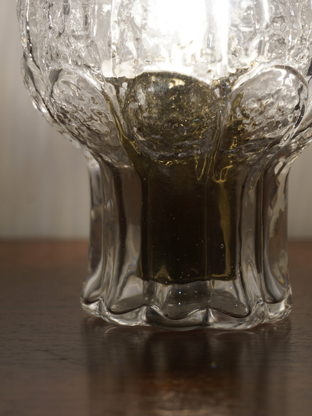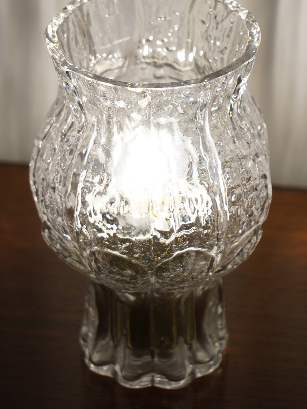 分厚いガラスの表面には、極北の氷柱や樹氷を思わせるような、荒々しくも美しいテクスチャーが施されています。