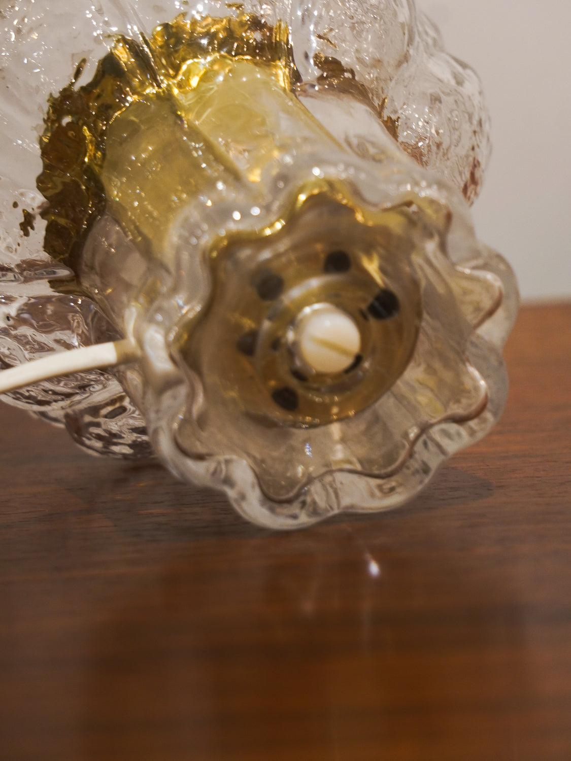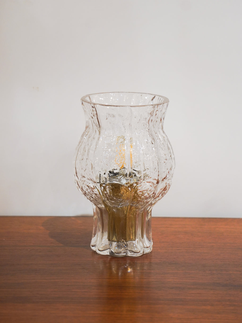 ガラスの分厚さと独特の表面加工が、強い光を和らげながらも、お部屋のムードを高める印象的なアクセント照明として機能します。