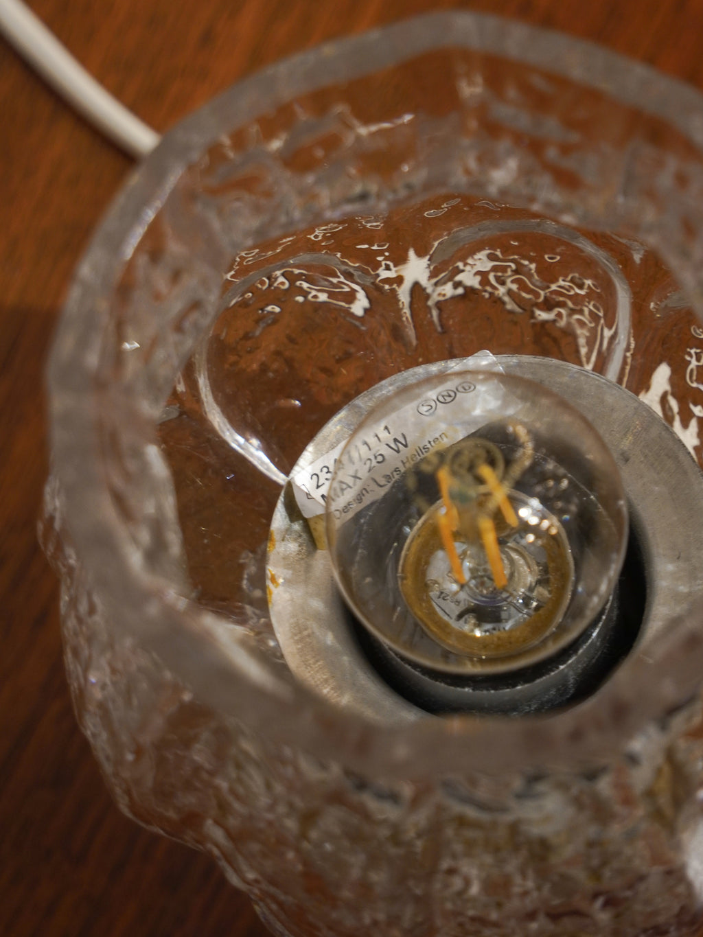 氷のような輝きを放つガラステーブルランプ