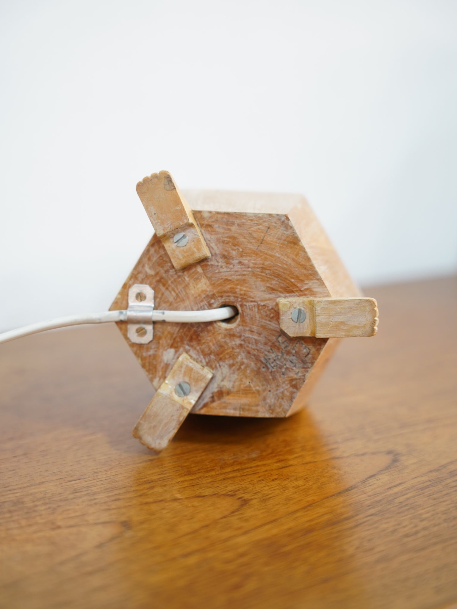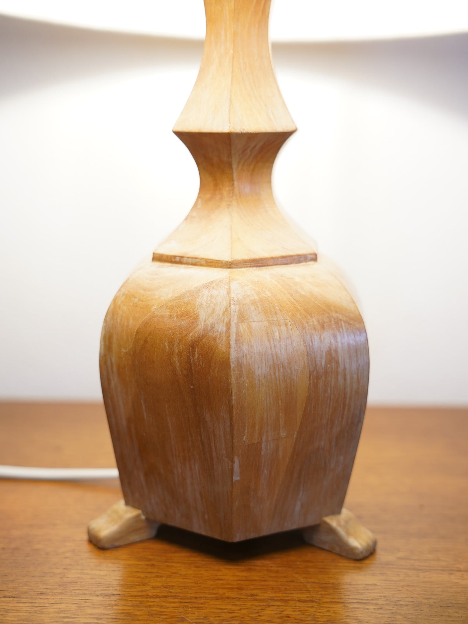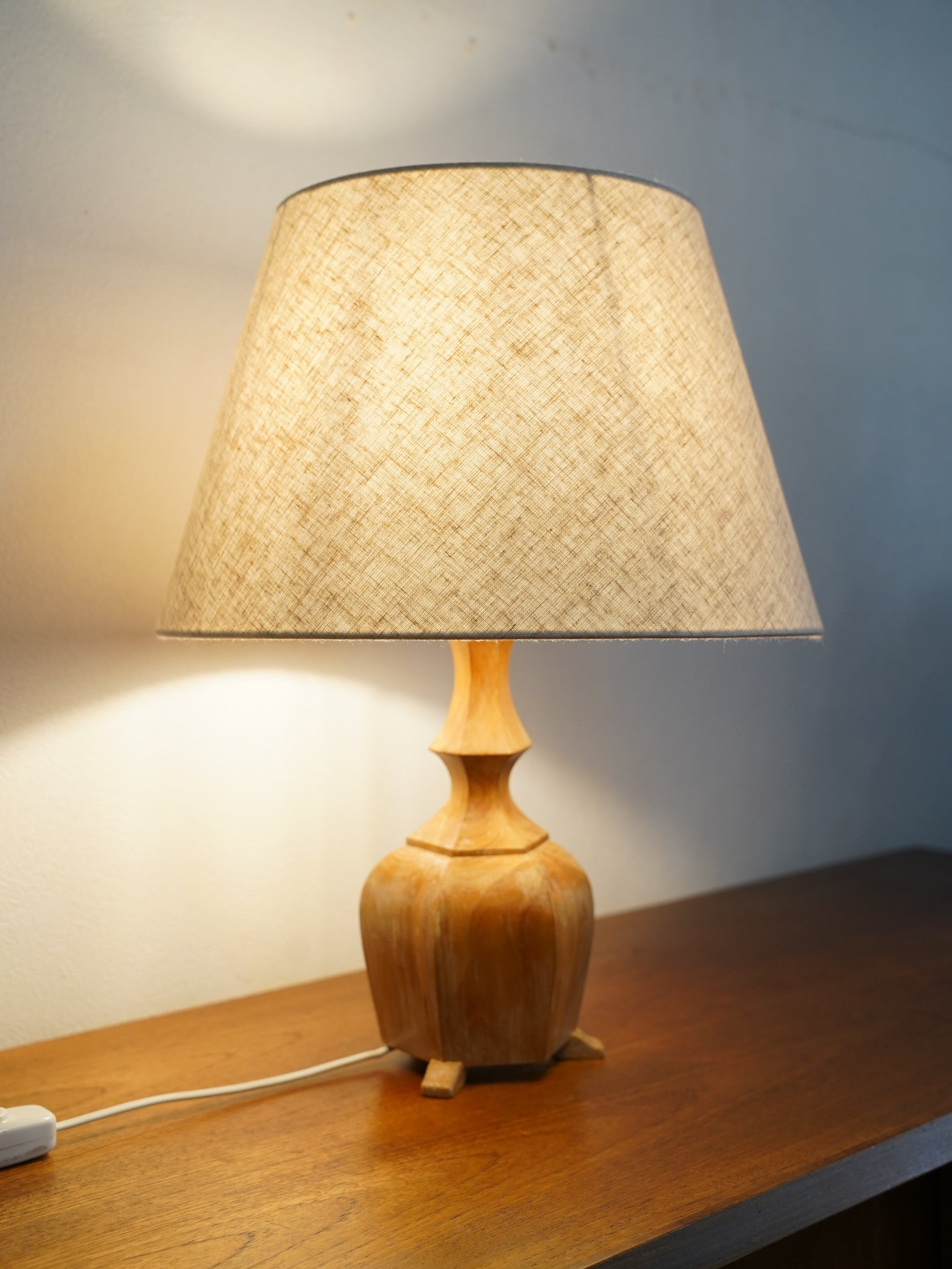 温かな灯りが紡ぐ、時を超えた造形美。天然木削り出しのヴィンテージ・テーブルランプ