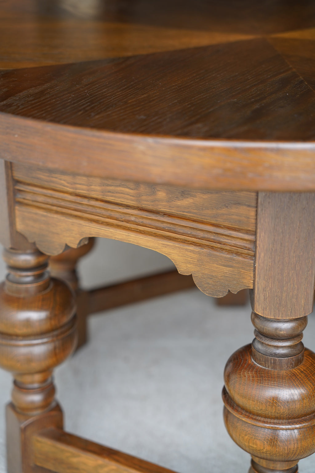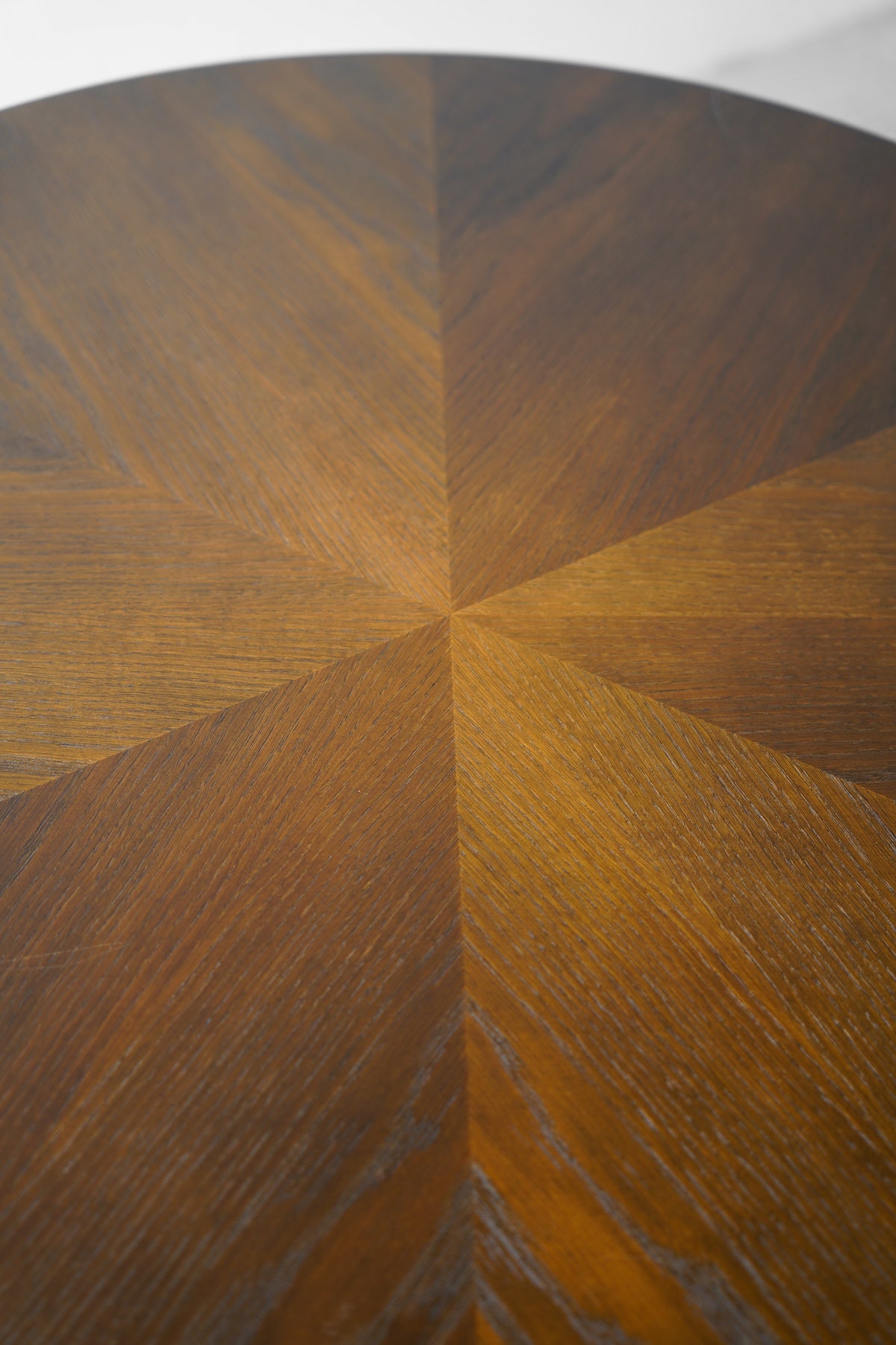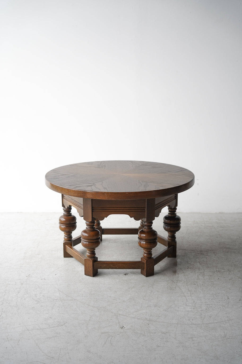 上質なオーク材を贅沢に使用した、重厚な存在感を放つラウンドコーヒーテーブル。