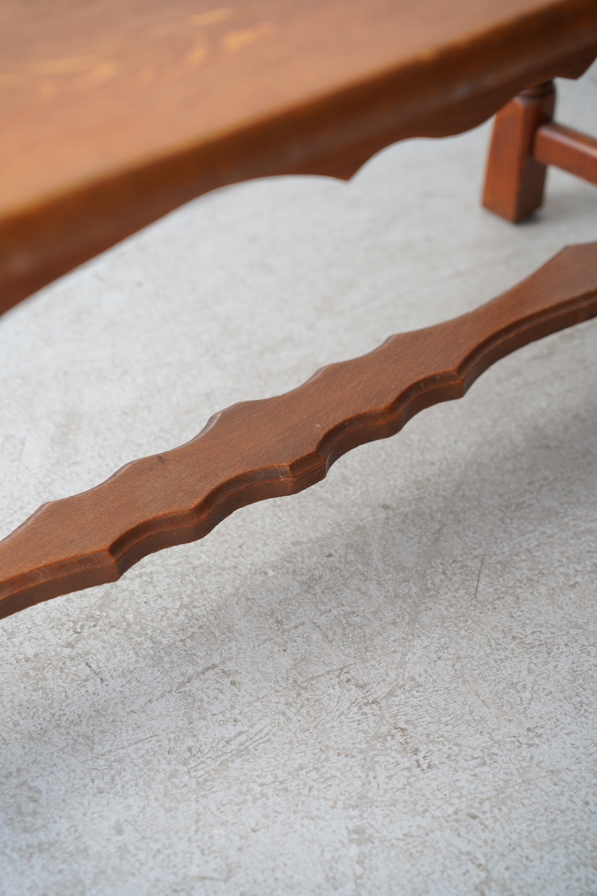 波打つ装飾が魅力的なオークウッドのローテーブル
