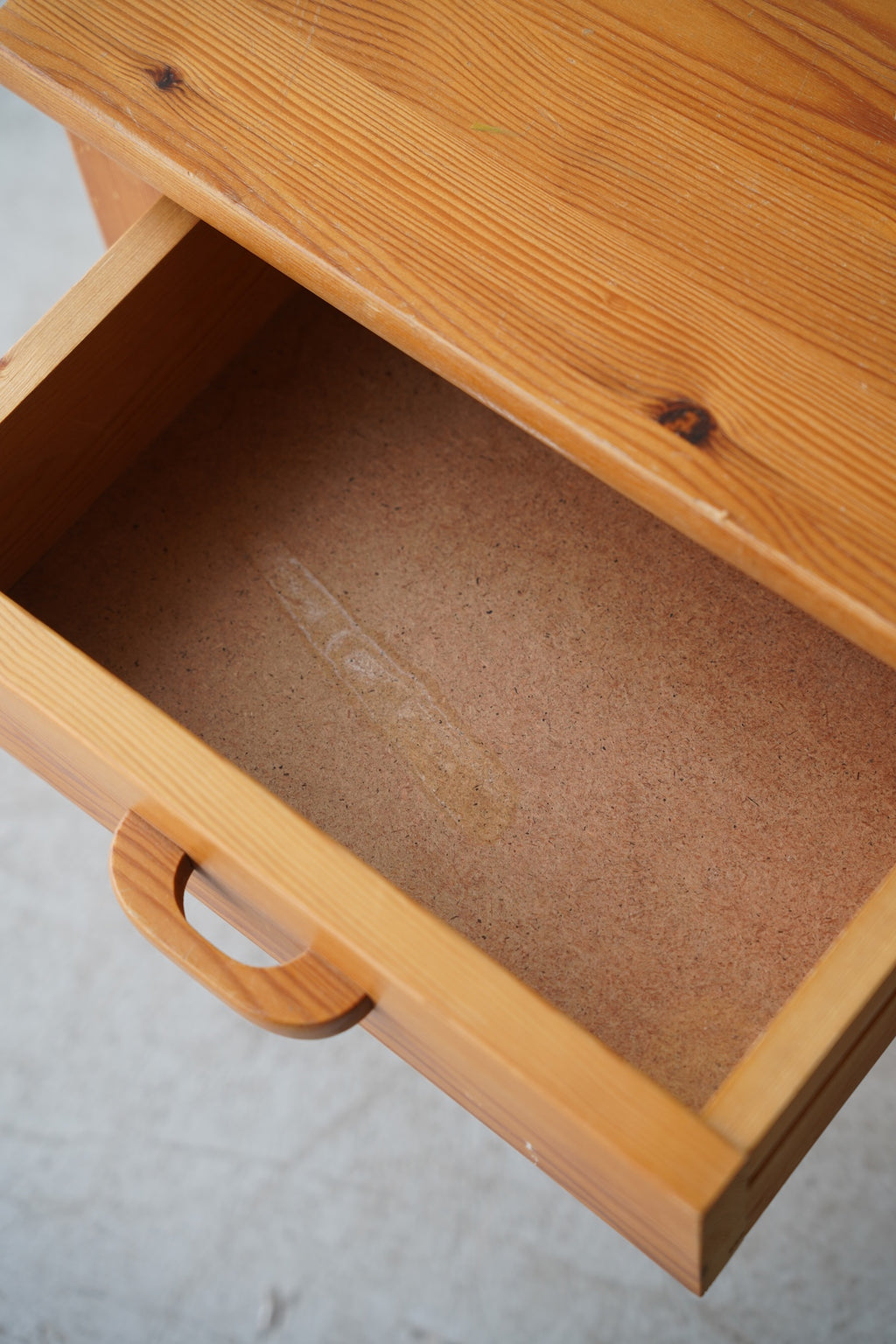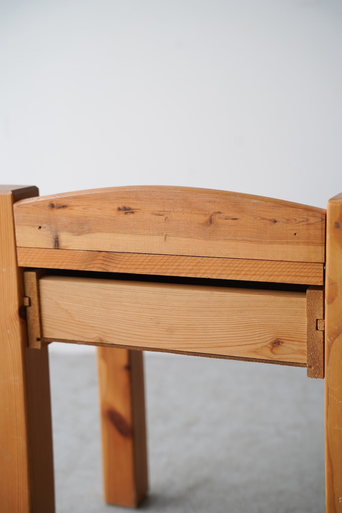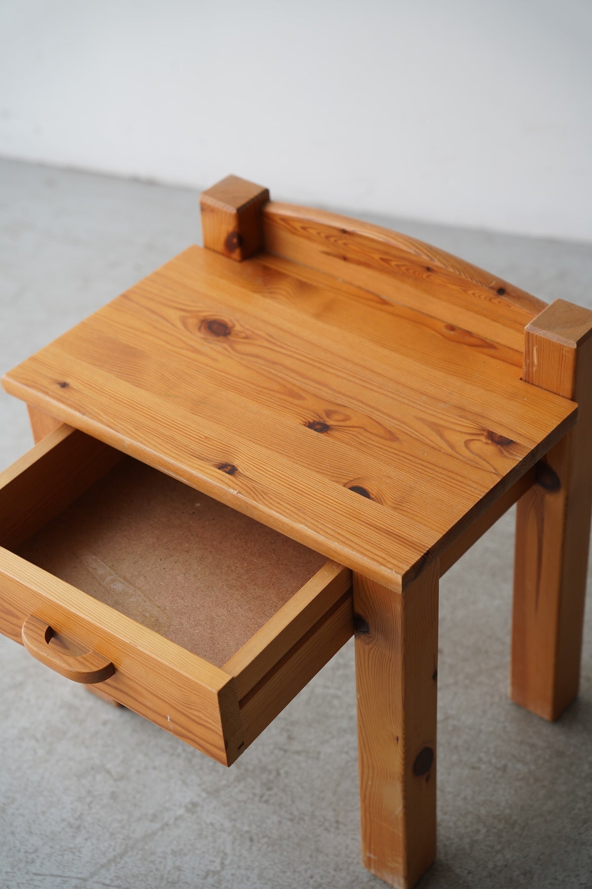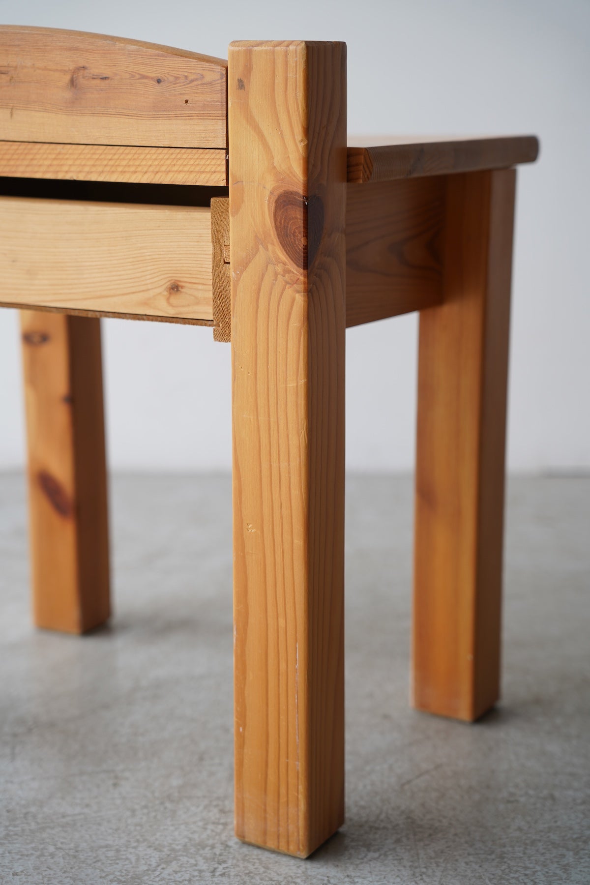 温かい木目と素朴なデザイン、パインウッドのナイトテーブル