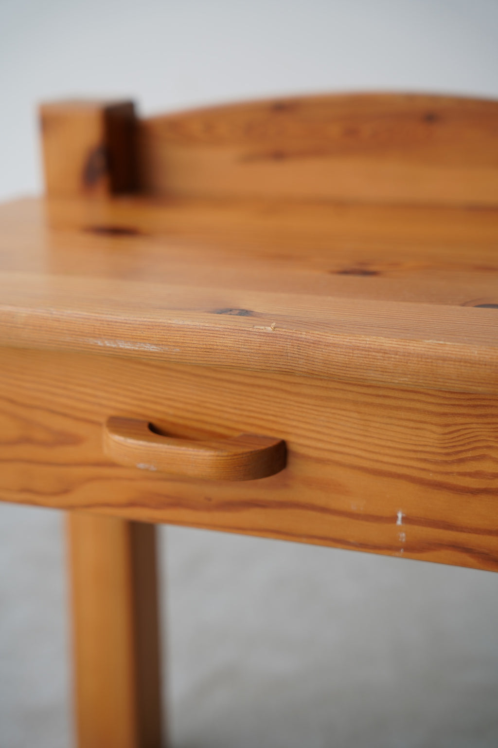 天板の後ろには、緩やかな曲線を描く背板があり、小物が落ちるのを防ぐ実用的な役割を果たしています。