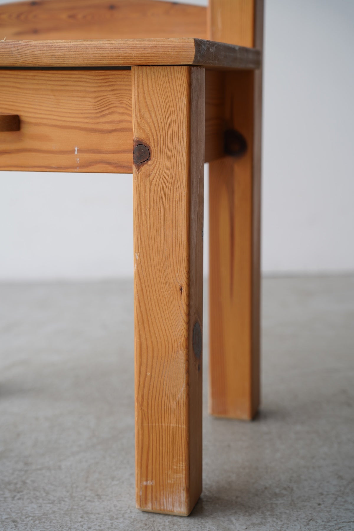 パイン材ならではの力強い木目や節が、一つひとつのテーブルに個性と豊かな表情を与えています。厚みのあるしっかりとした脚は、このテーブルの堅牢な作りを象徴しており、見た目以上の安定感があります。