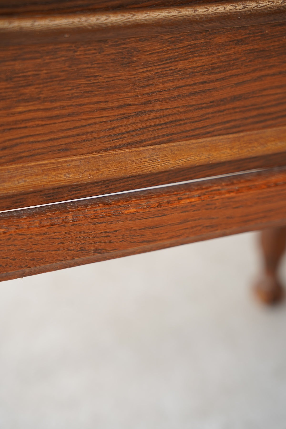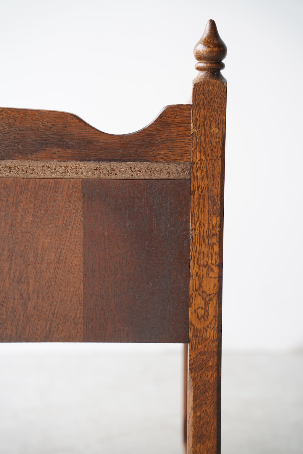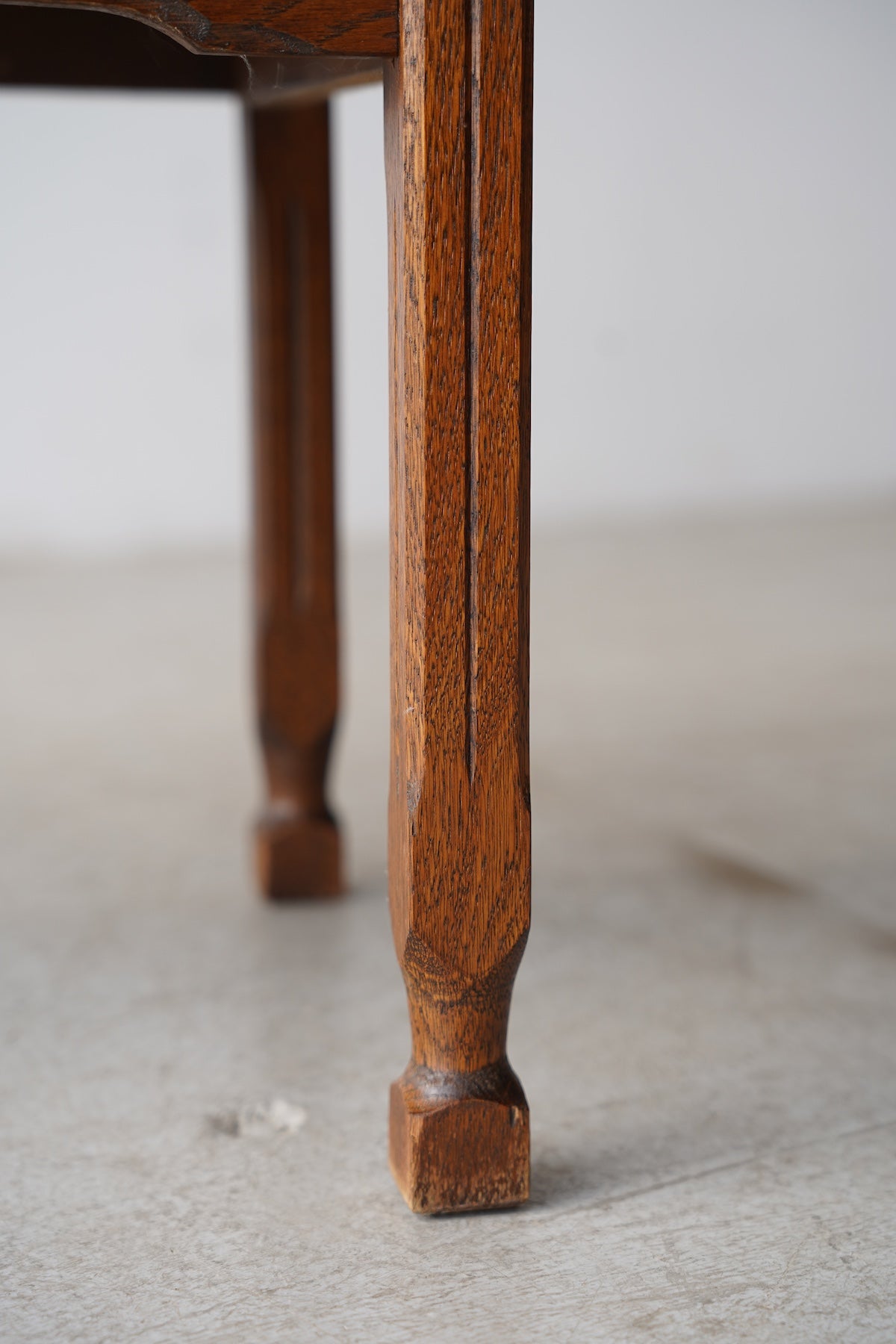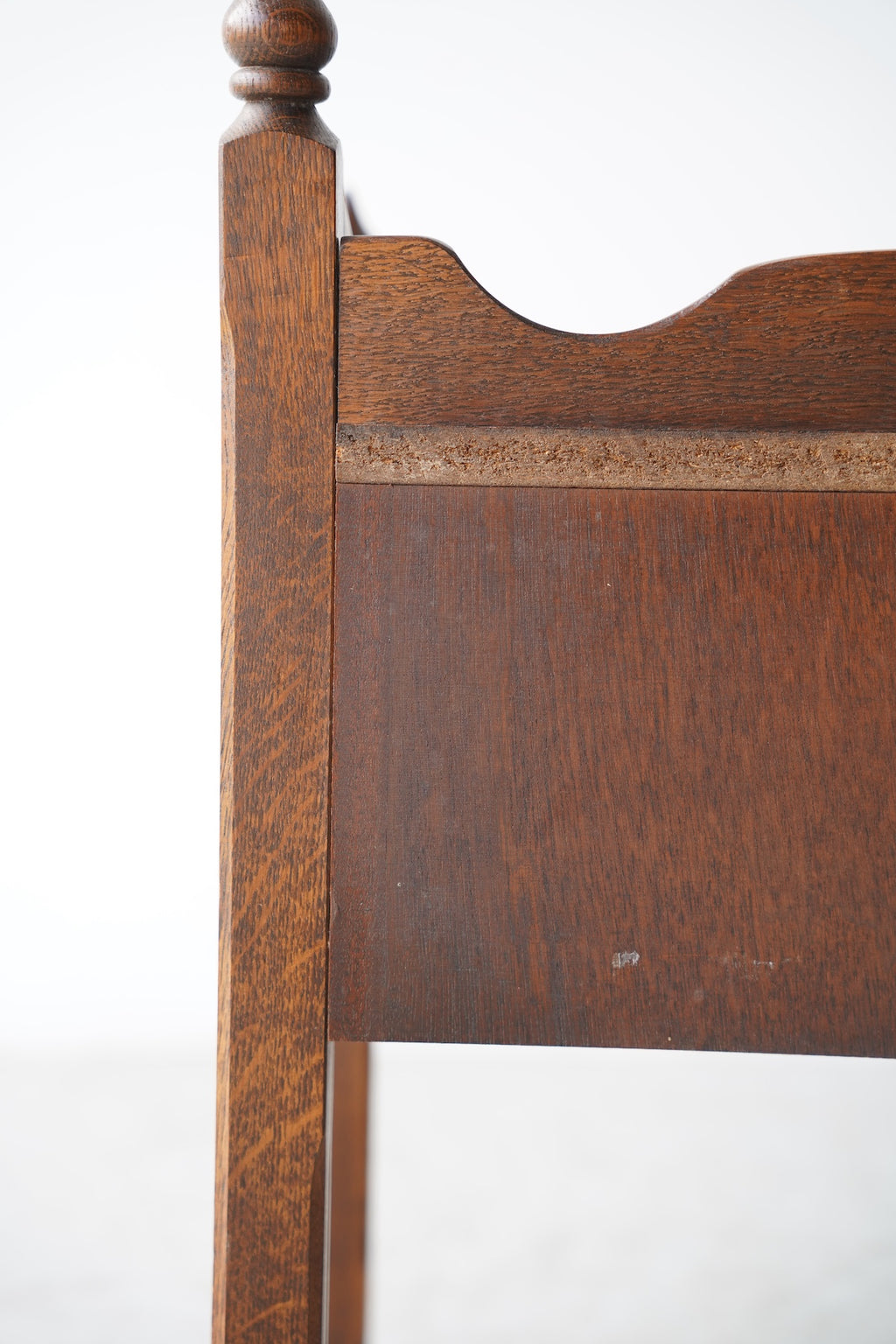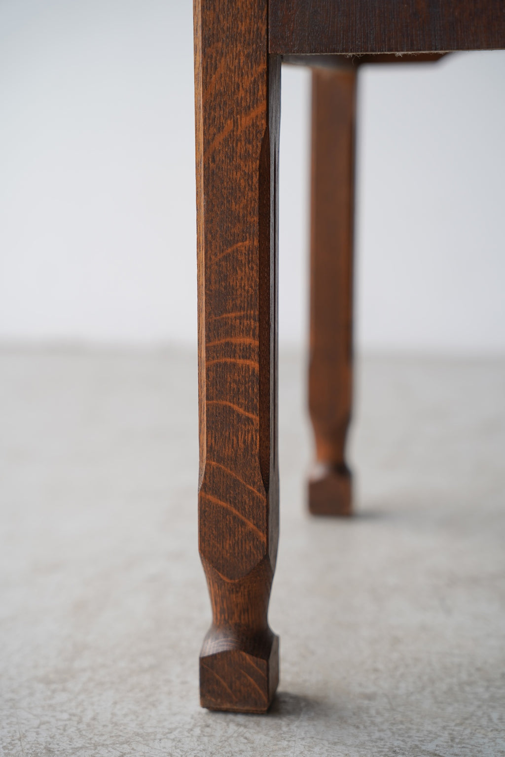オークウッドの美しい木目と、クラシカルなデザインが目を引くドロワー(引き出し)付きのナイトテーブルです。