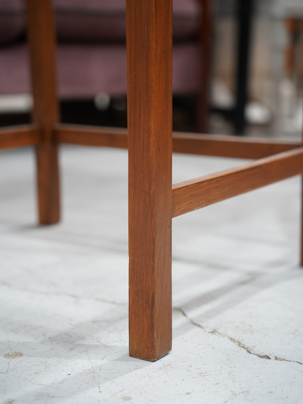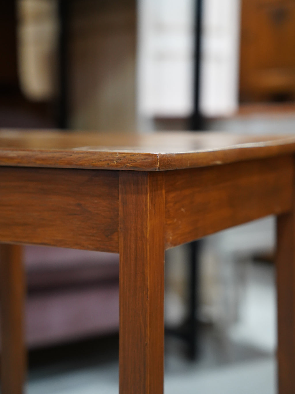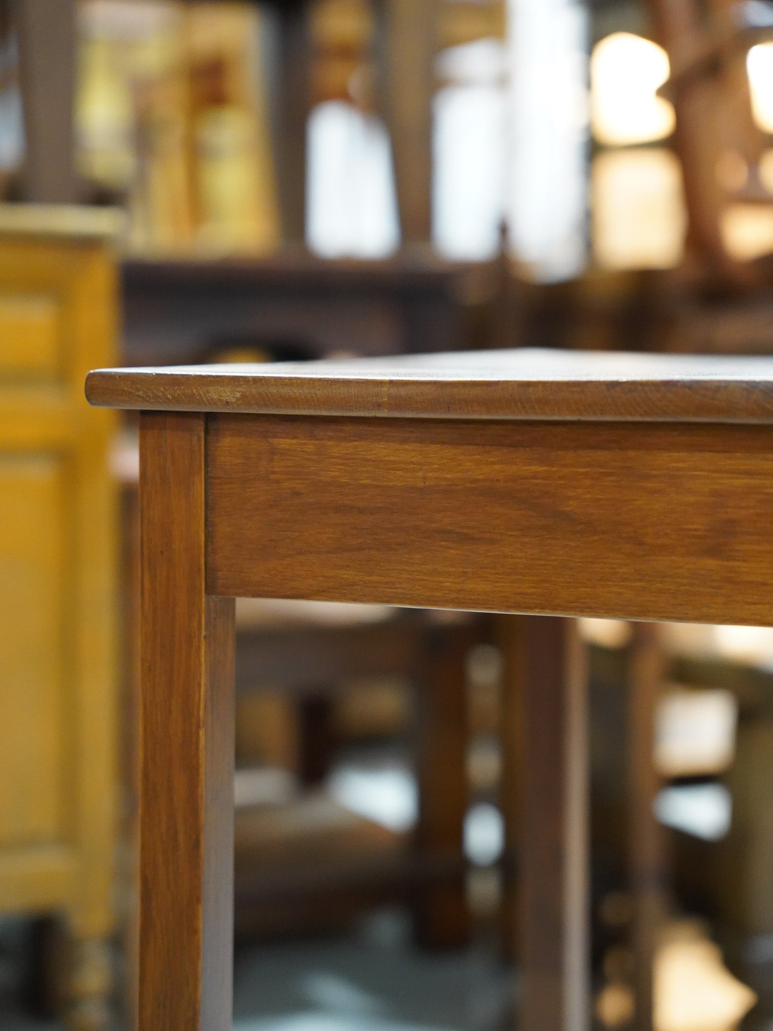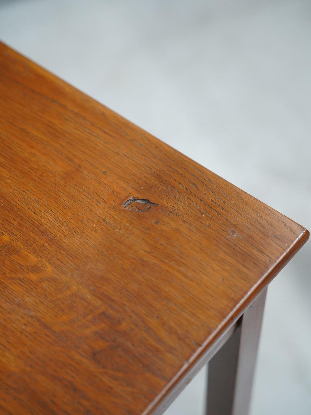 天板には、長年大切に使われてきた証である自然な木目のゆらぎや、小さな節(ふし)や傷が見られます。これらは欠点ではなく、一点もののヴィンテージアイテムならではの「アジ」としてお楽しみいただけます。