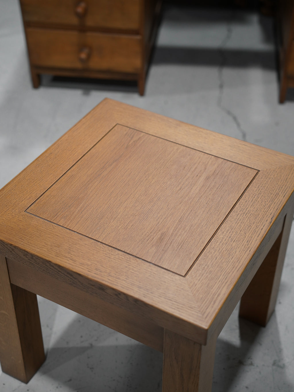 【ヴィンテージオーク】無垢材の重厚な存在感。どっしりとしたミニマルサイドテーブル