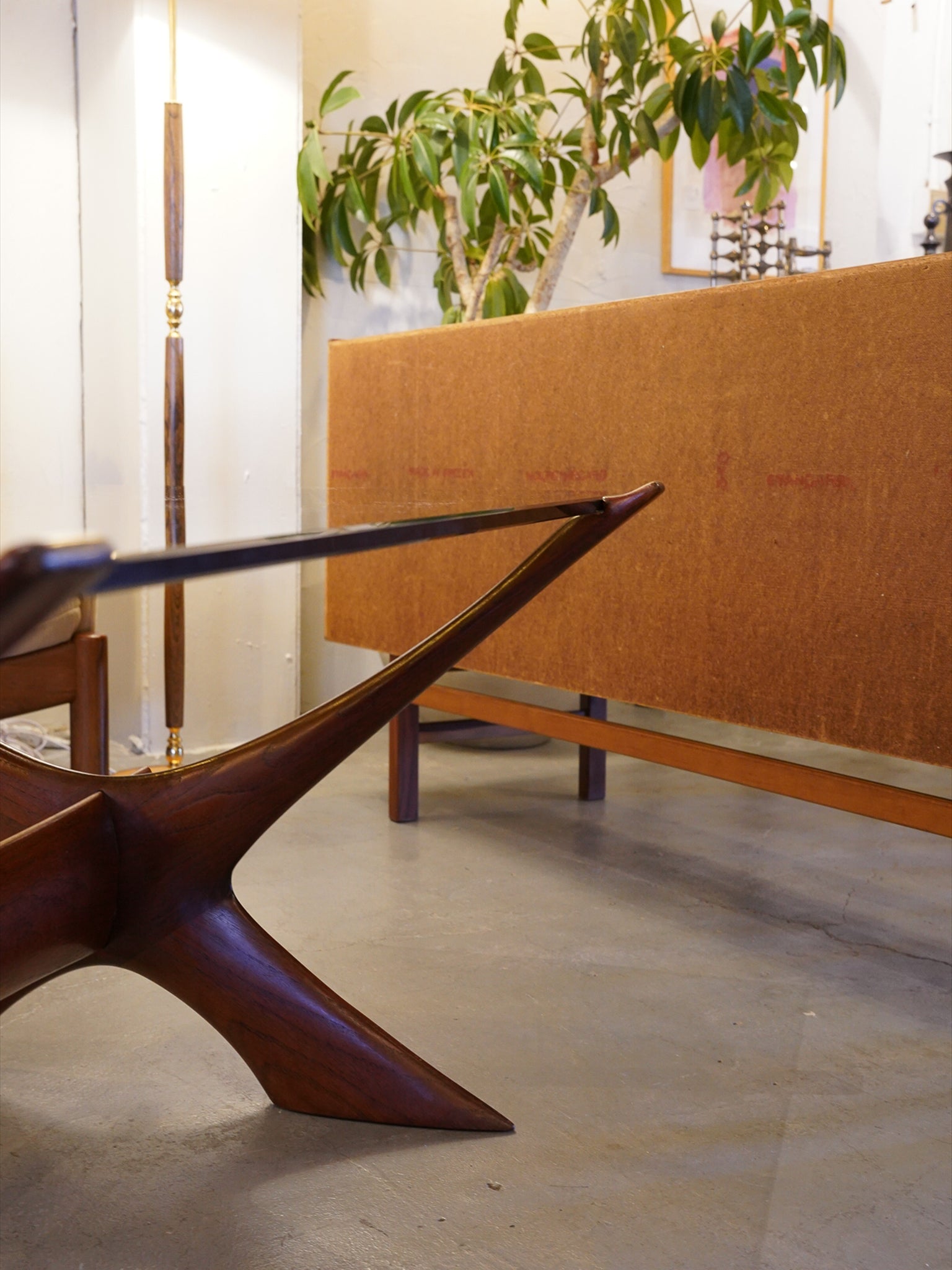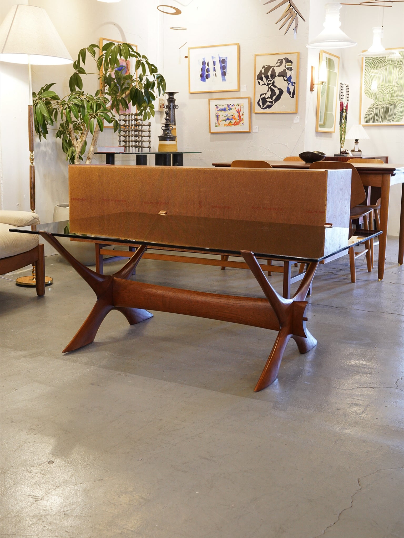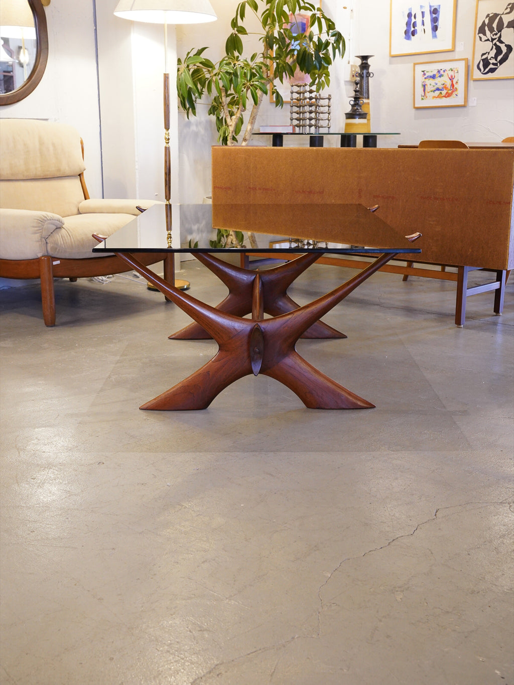 X字型の曲線美が美しく、彫刻作品のような存在感を放つコーヒーテーブル