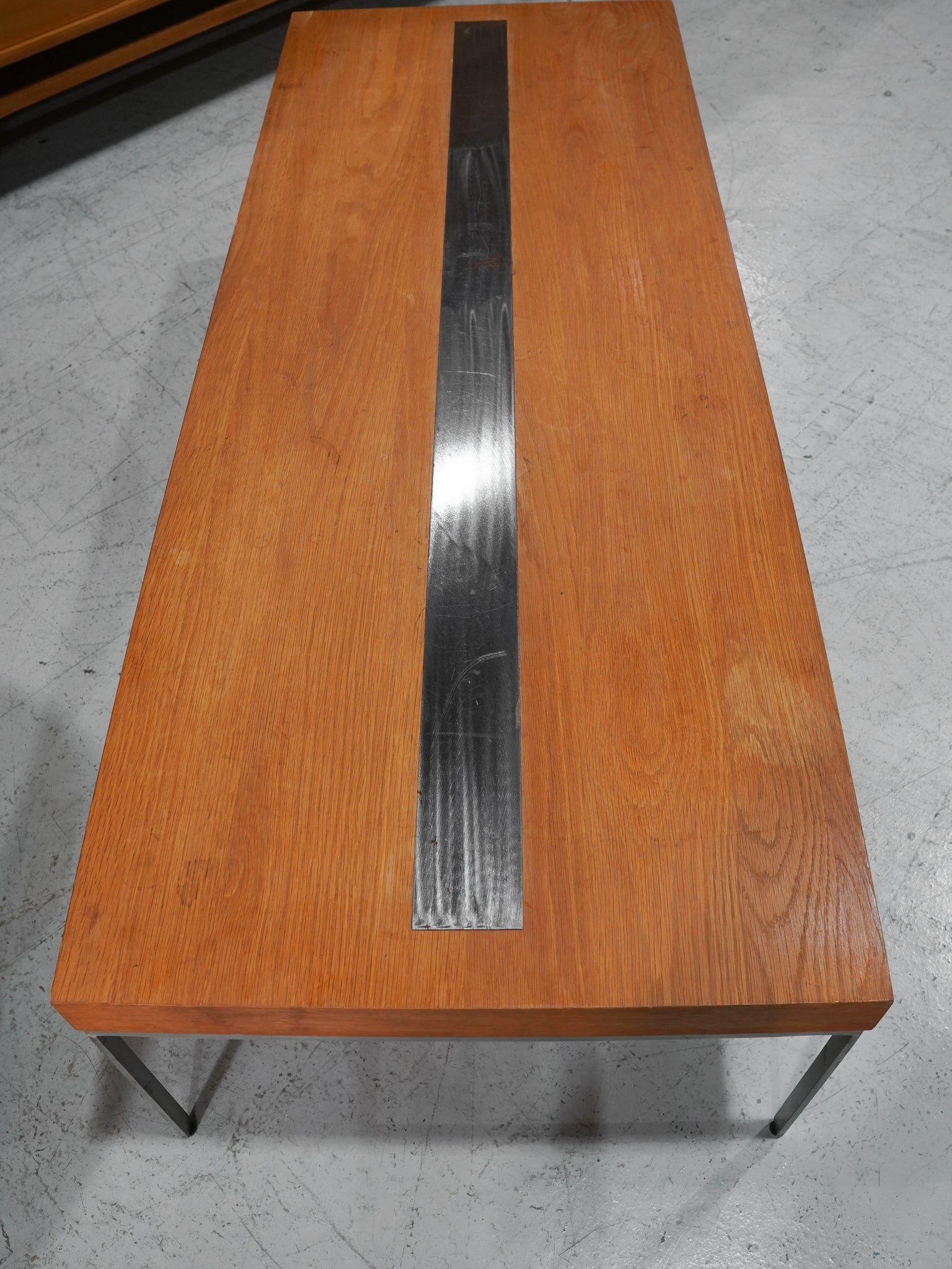 深みのある飴色に育ったチーク材の美しさが際立つ、ワイドなコーヒーテーブルです。
