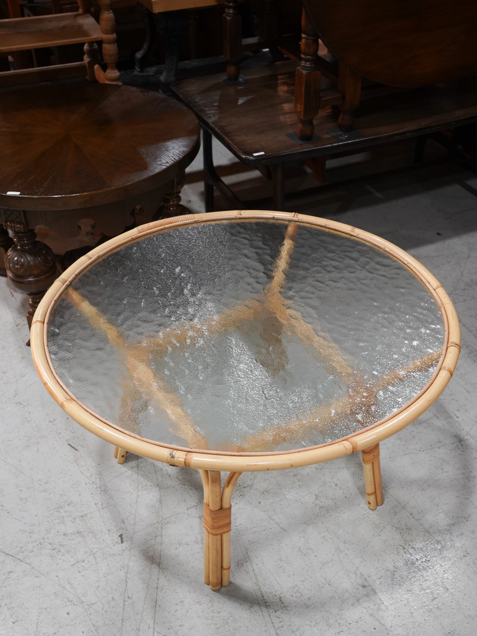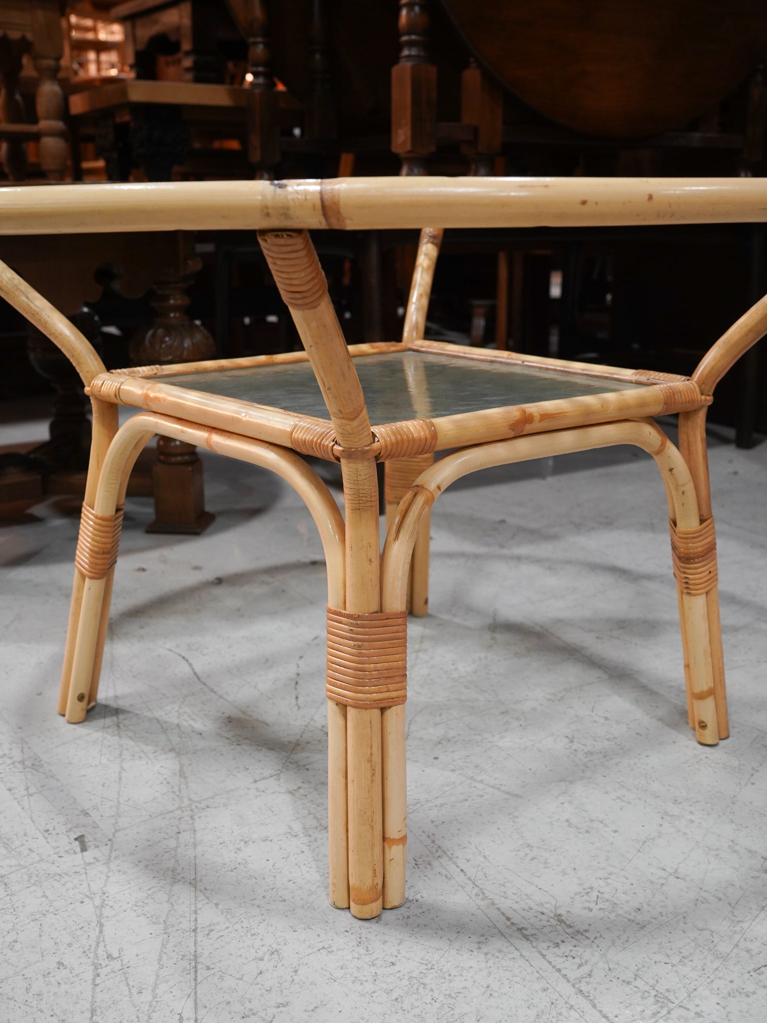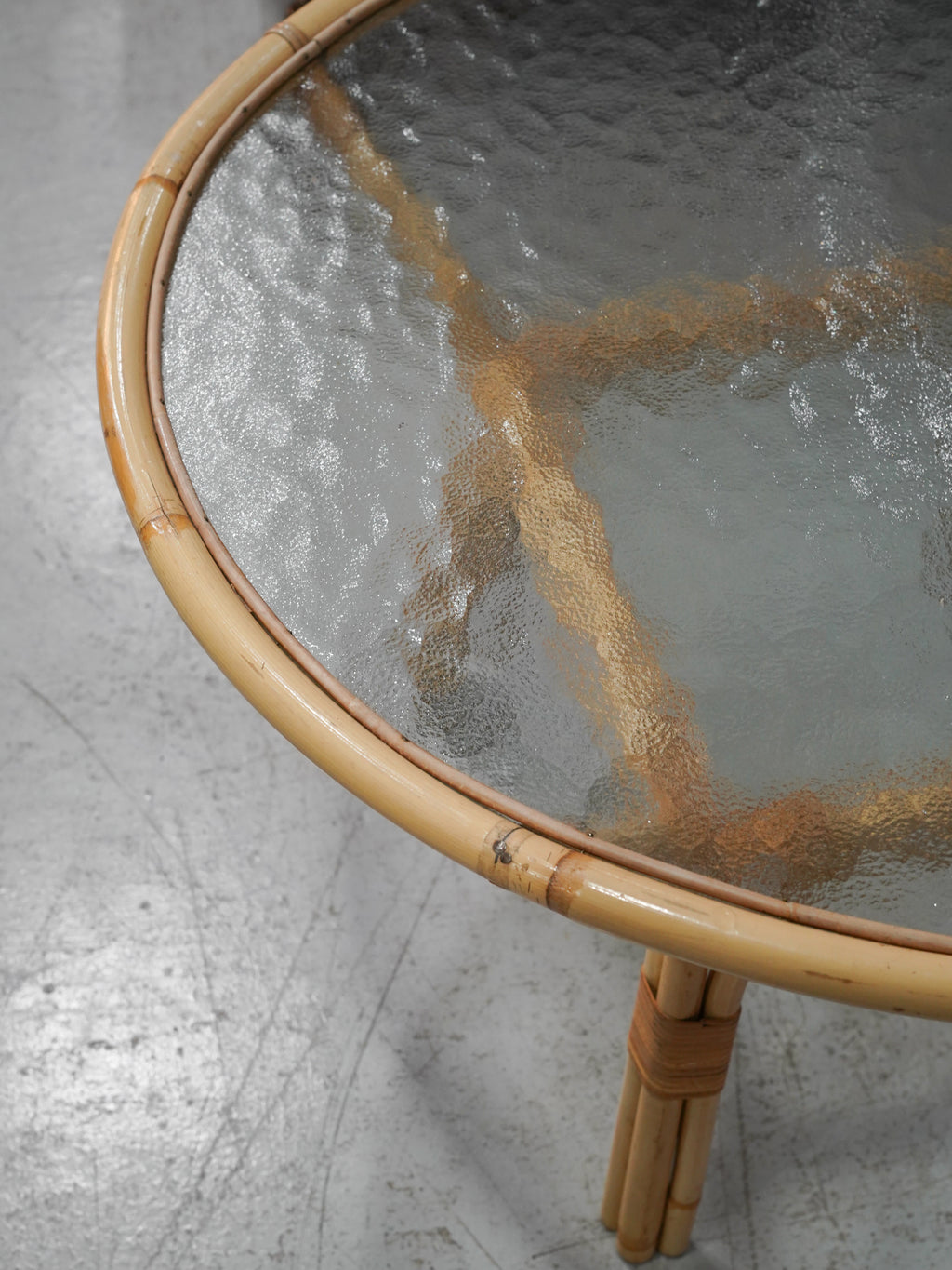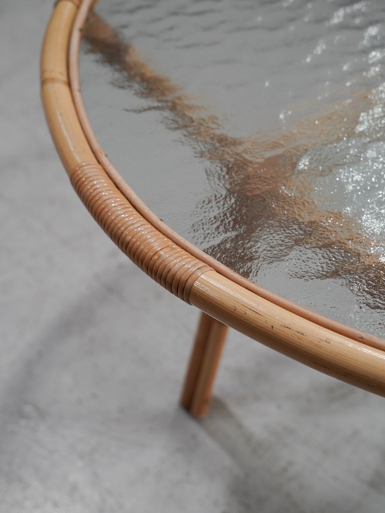 天然ラタンのしなやかな曲線と、透明感あふれるガラス天板が融合した、開放感あふれるラウンドテーブルです。
