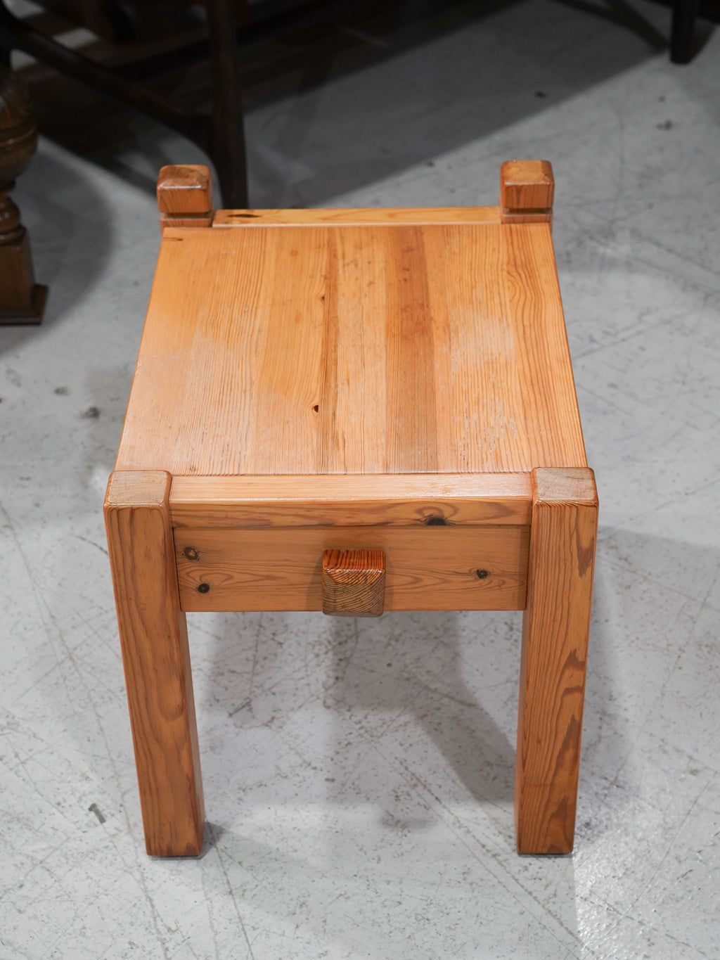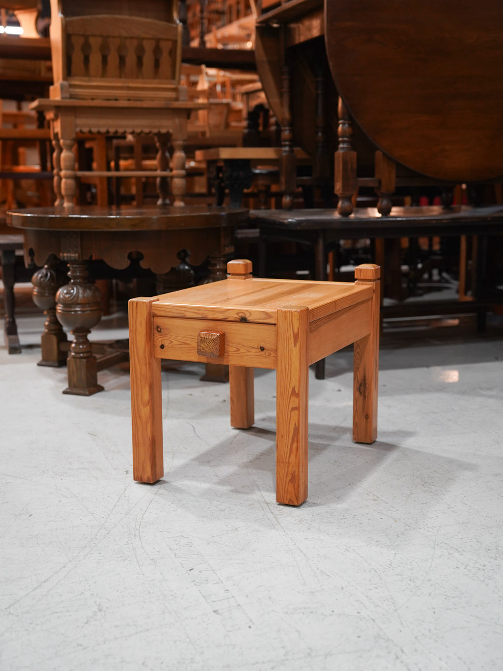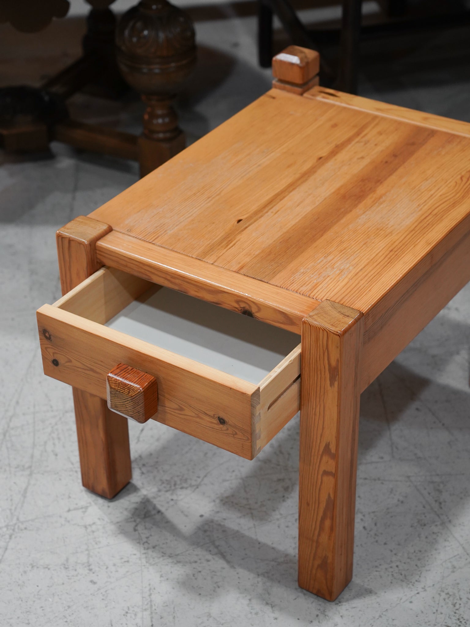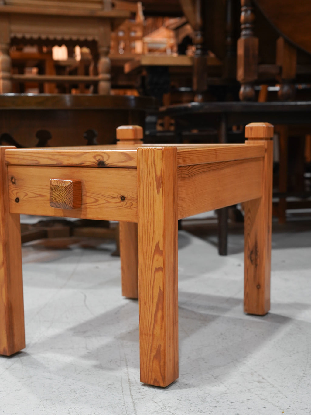北欧スウェーデンより届いた、パイン無垢材の豊かな表情が魅力のナイトテーブルです。明るく柔らかな飴色へと変化した木肌は、ヴィンテージパイン特有の温かな質感を放ち、空間に安らぎをもたらします。