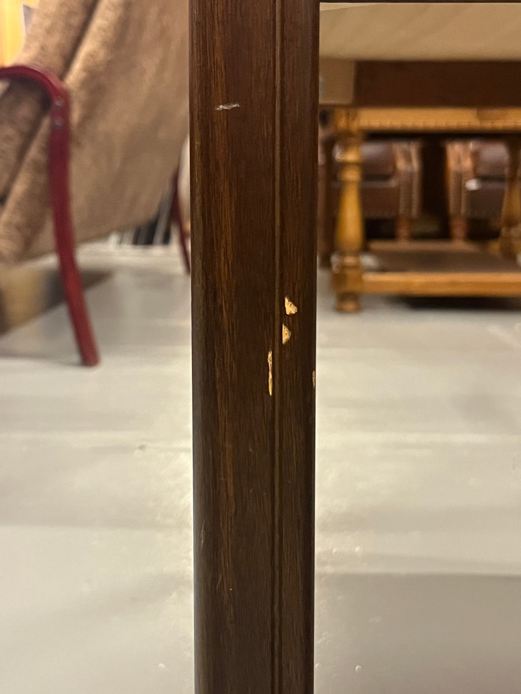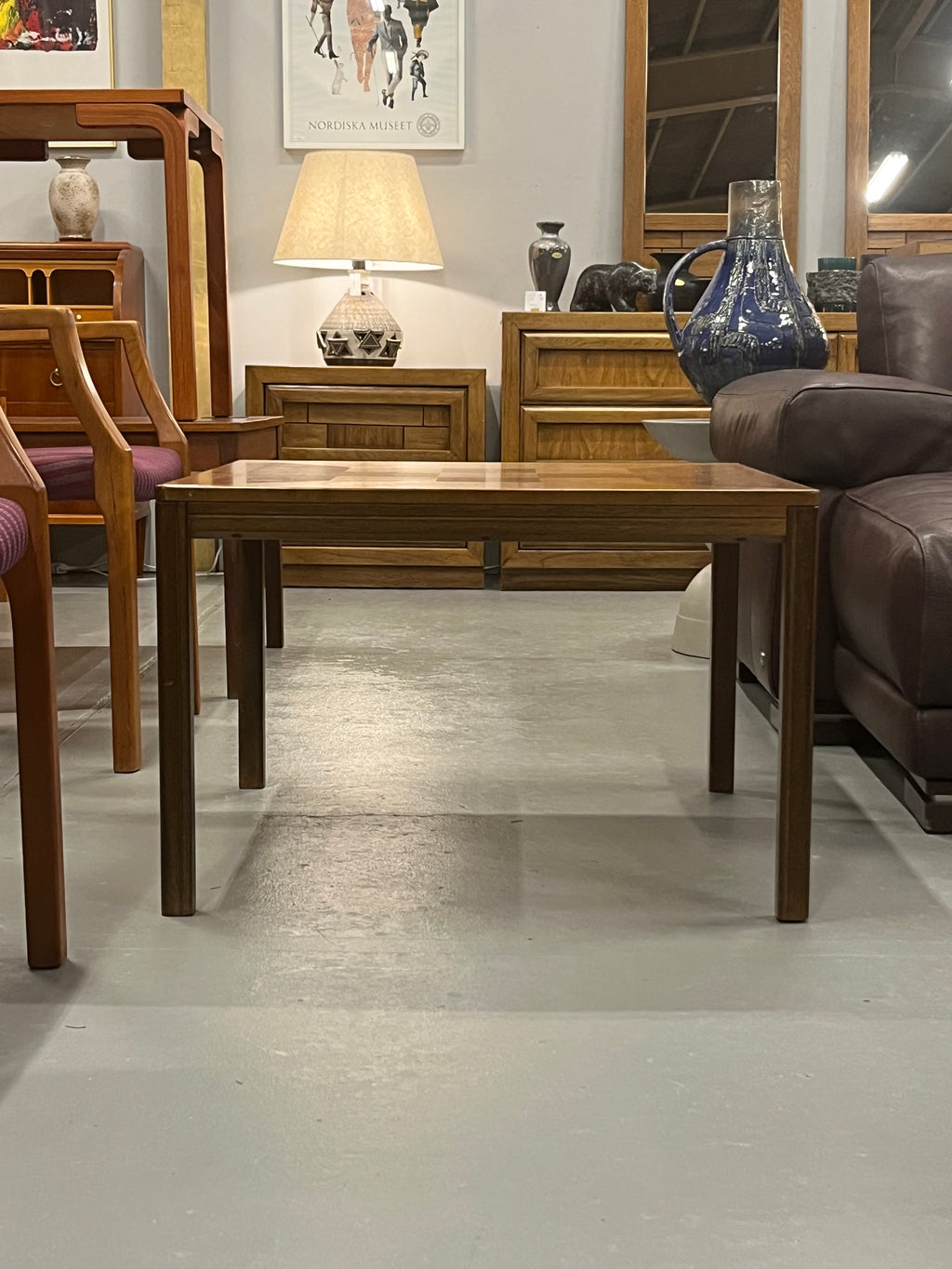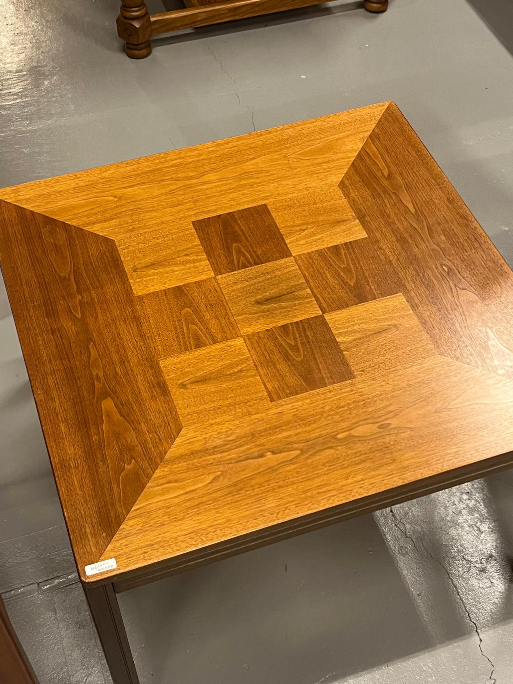 天板中央にチェッカーボードのような市松模様の象嵌(インレイ)が施された、非常に希少なヴィンテージ・サイドテーブルです。