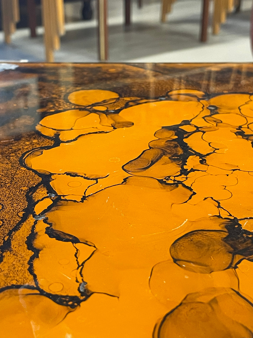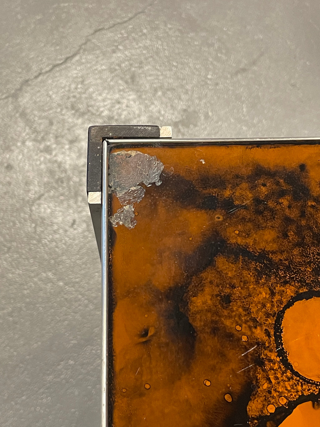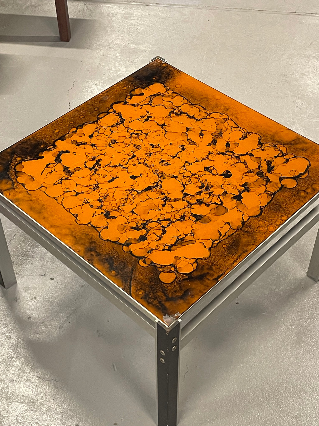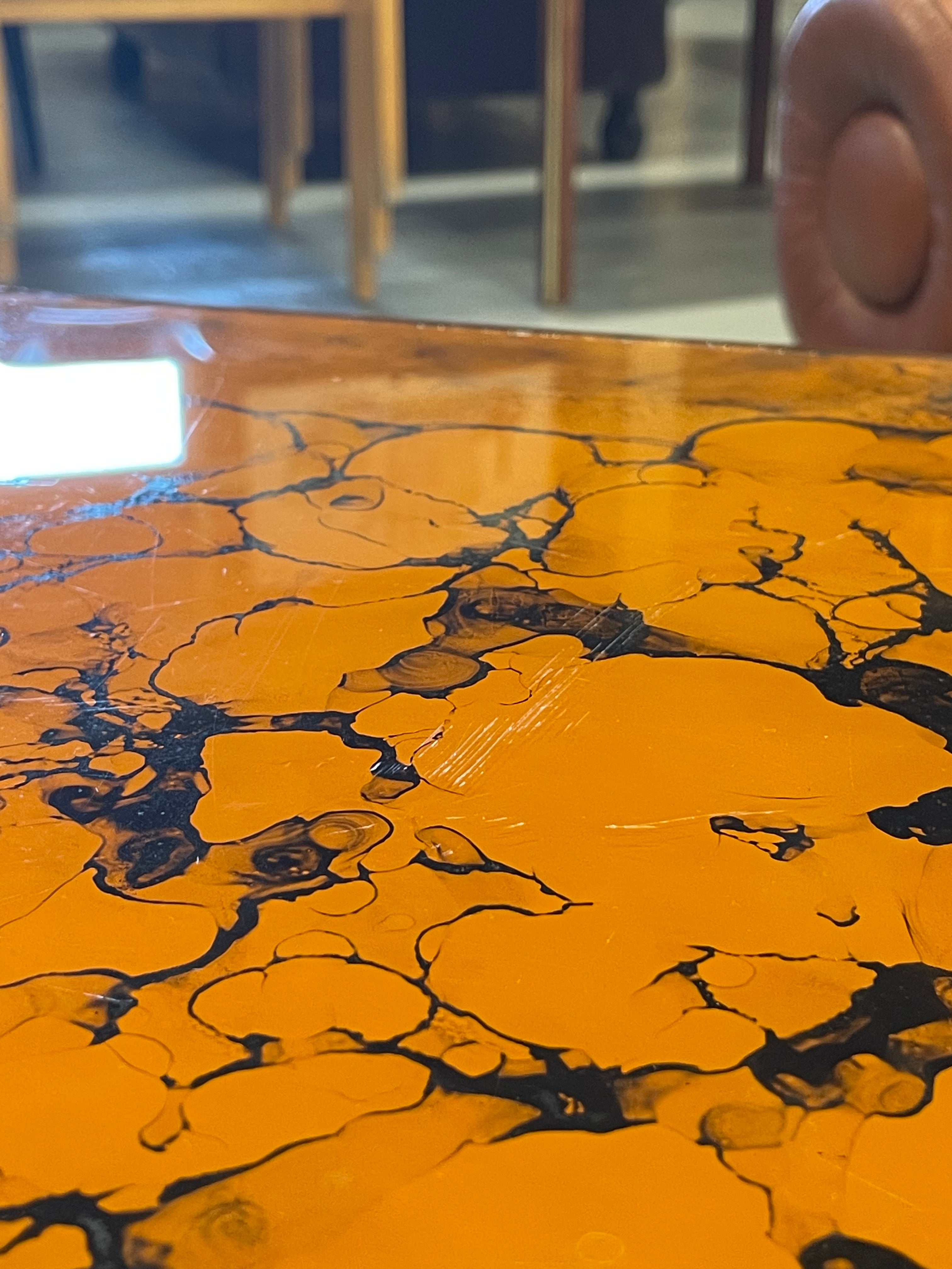 有機的で抽象的な模様が浮かび上がる、アートピースのようなヴィンテージテーブルです。
