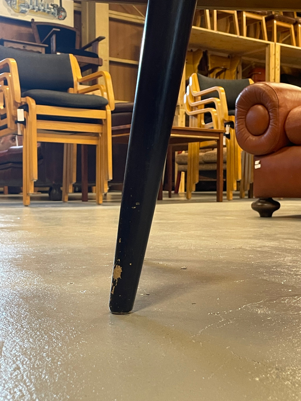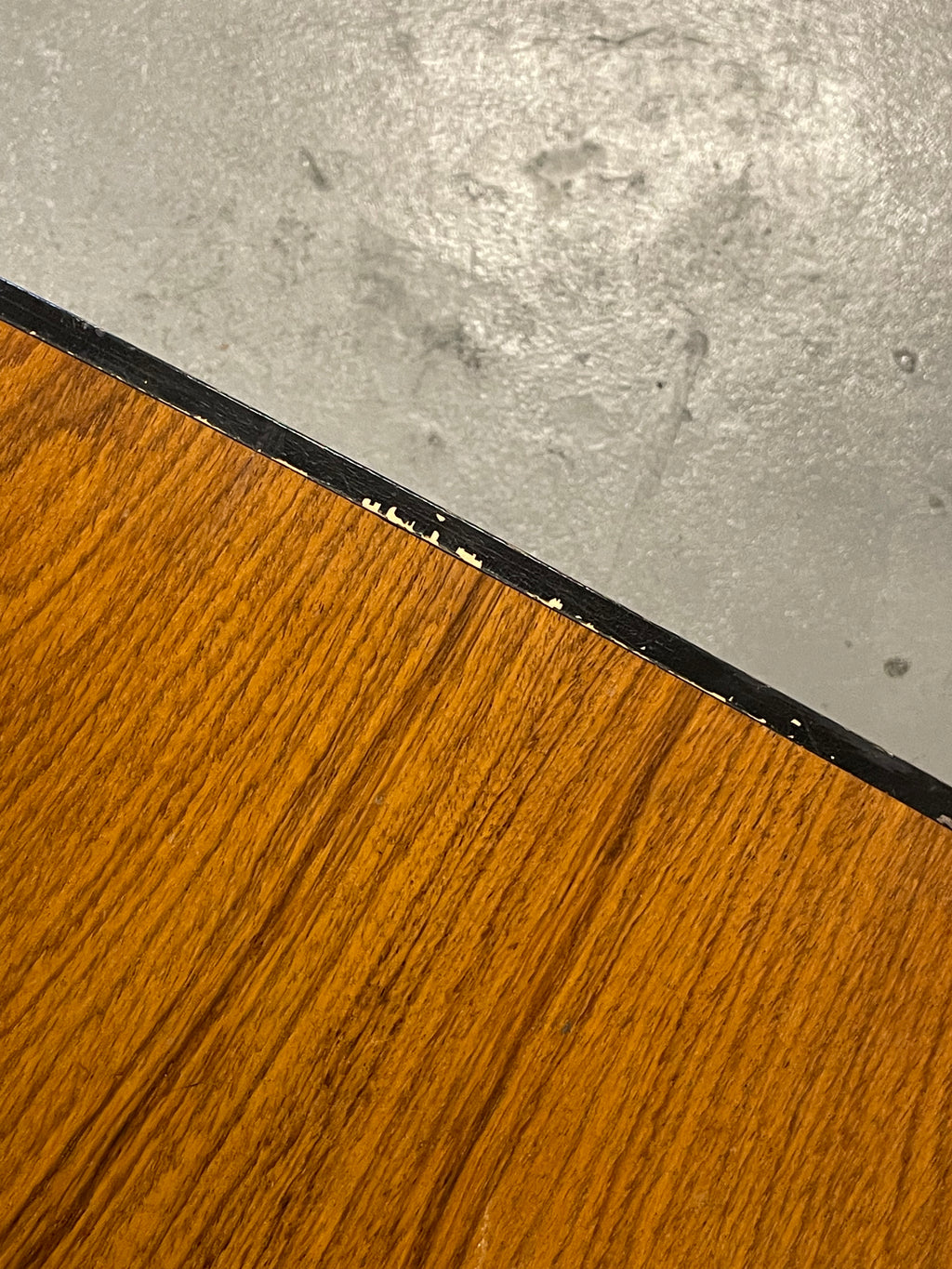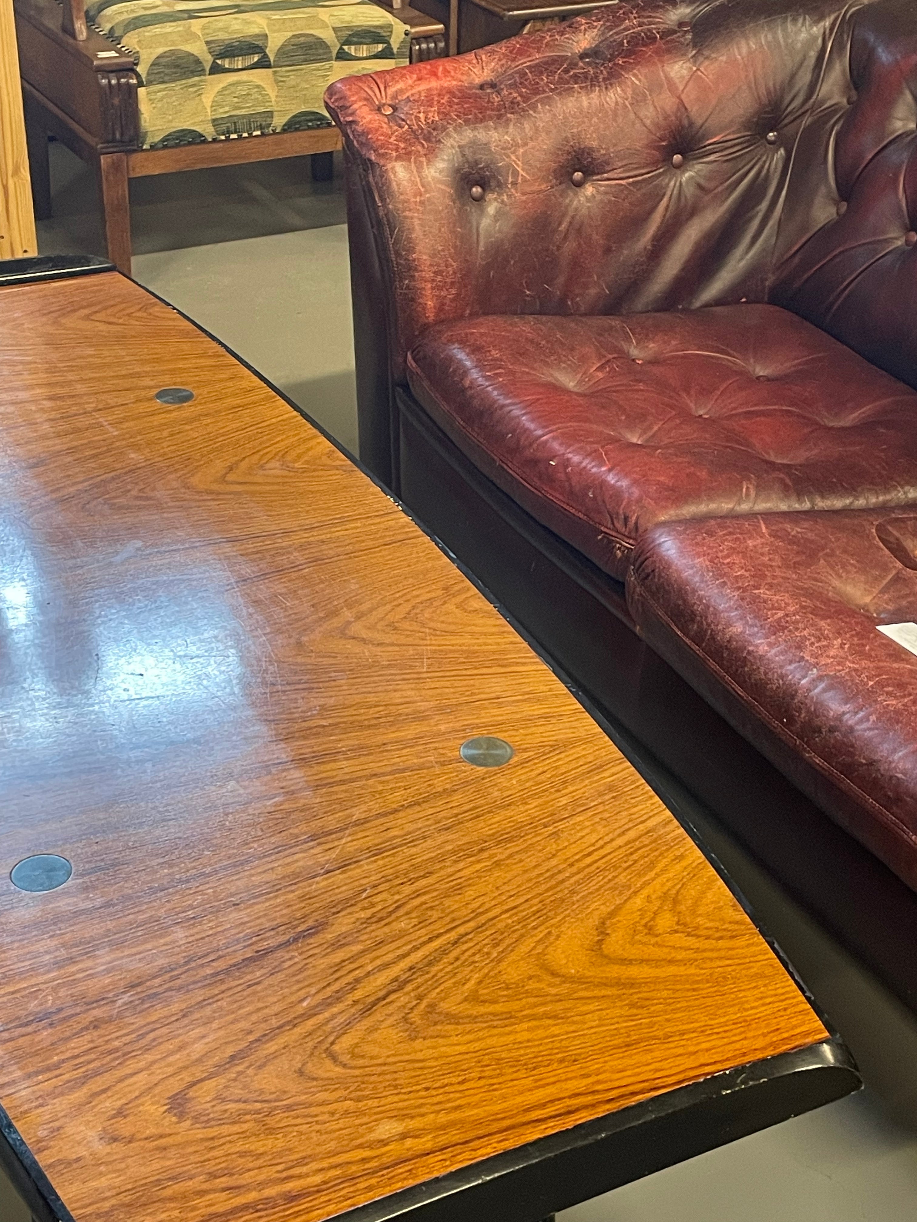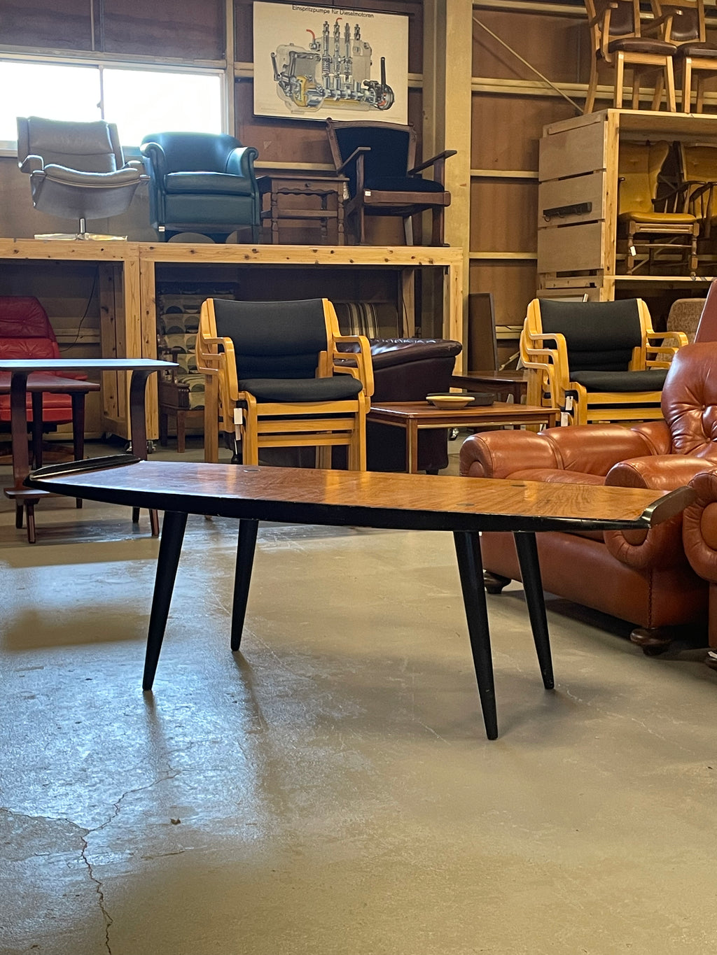 美しいチーク材の木目と、縁取りや脚部にあしらわれたブラックのコントラストが目を惹く、Treman社製のヴィンテージ・コーヒーテーブルです。
