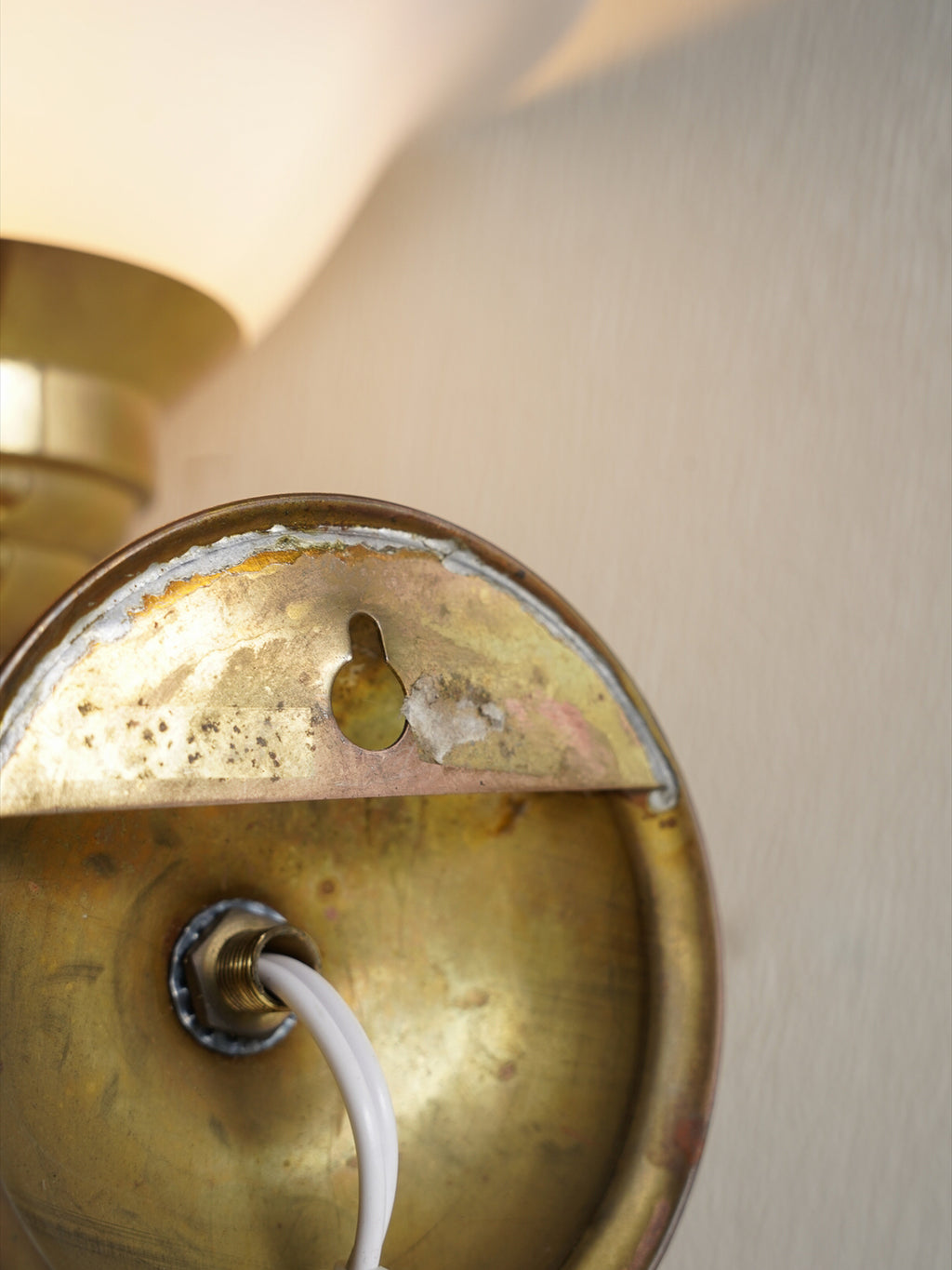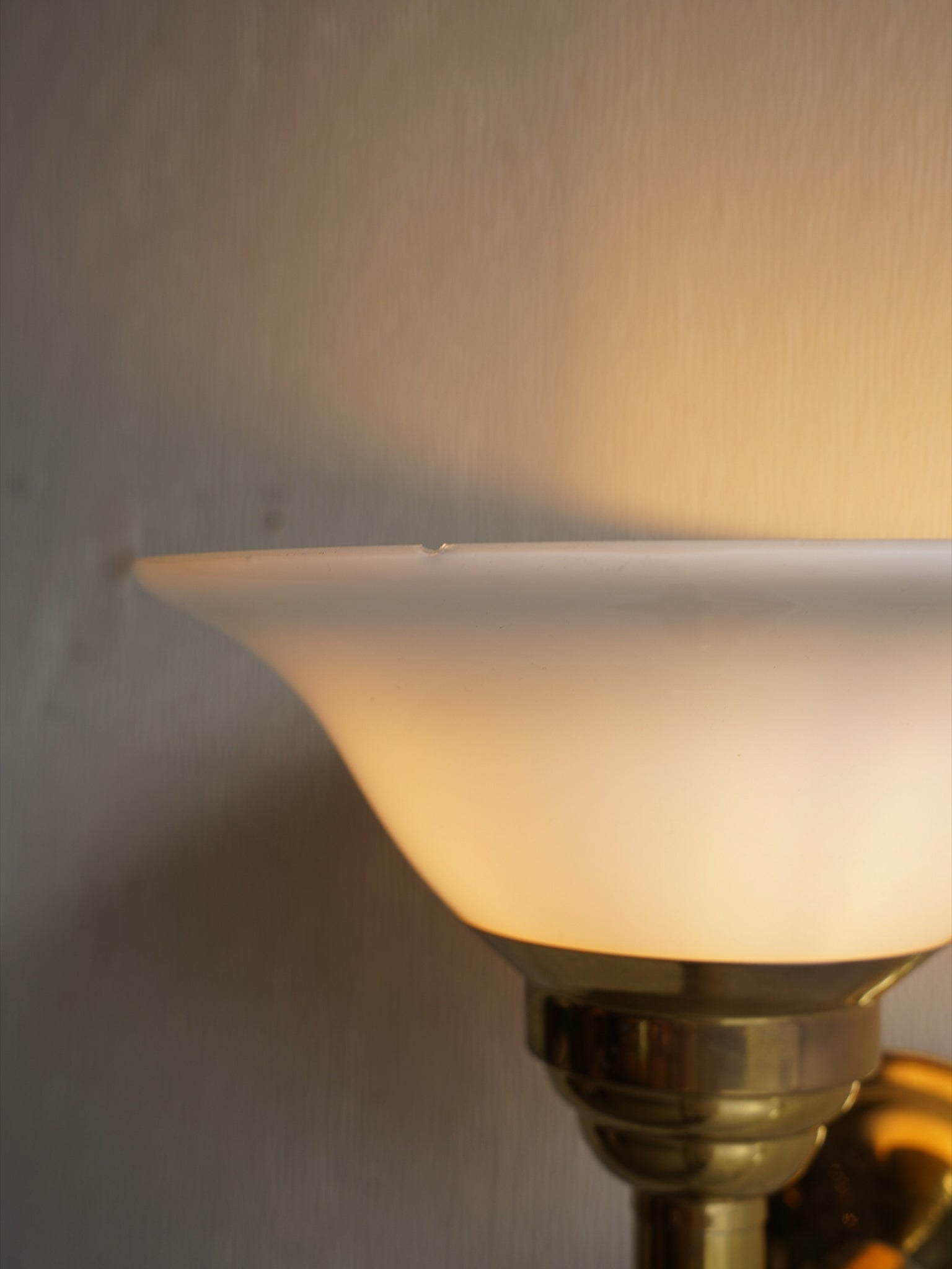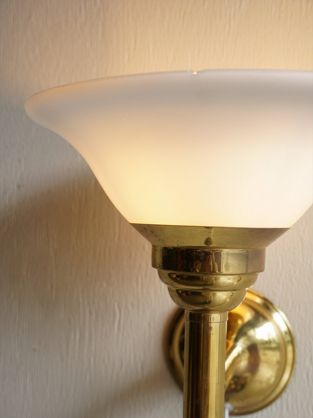 エレガントな輝きを放つ、真鍮とフロストガラスのウォールランプ。