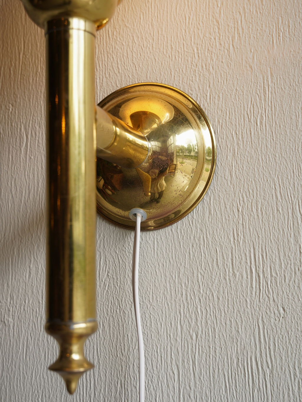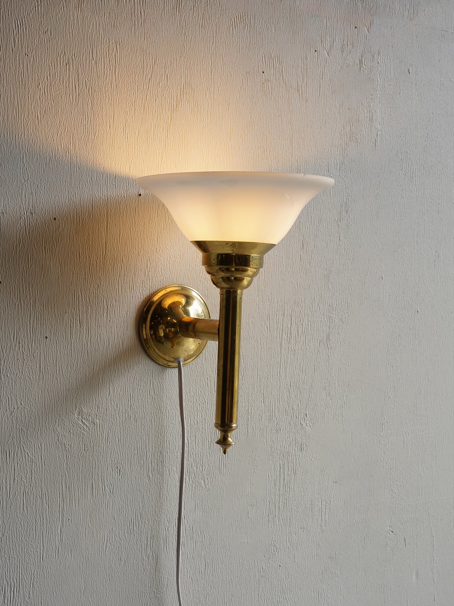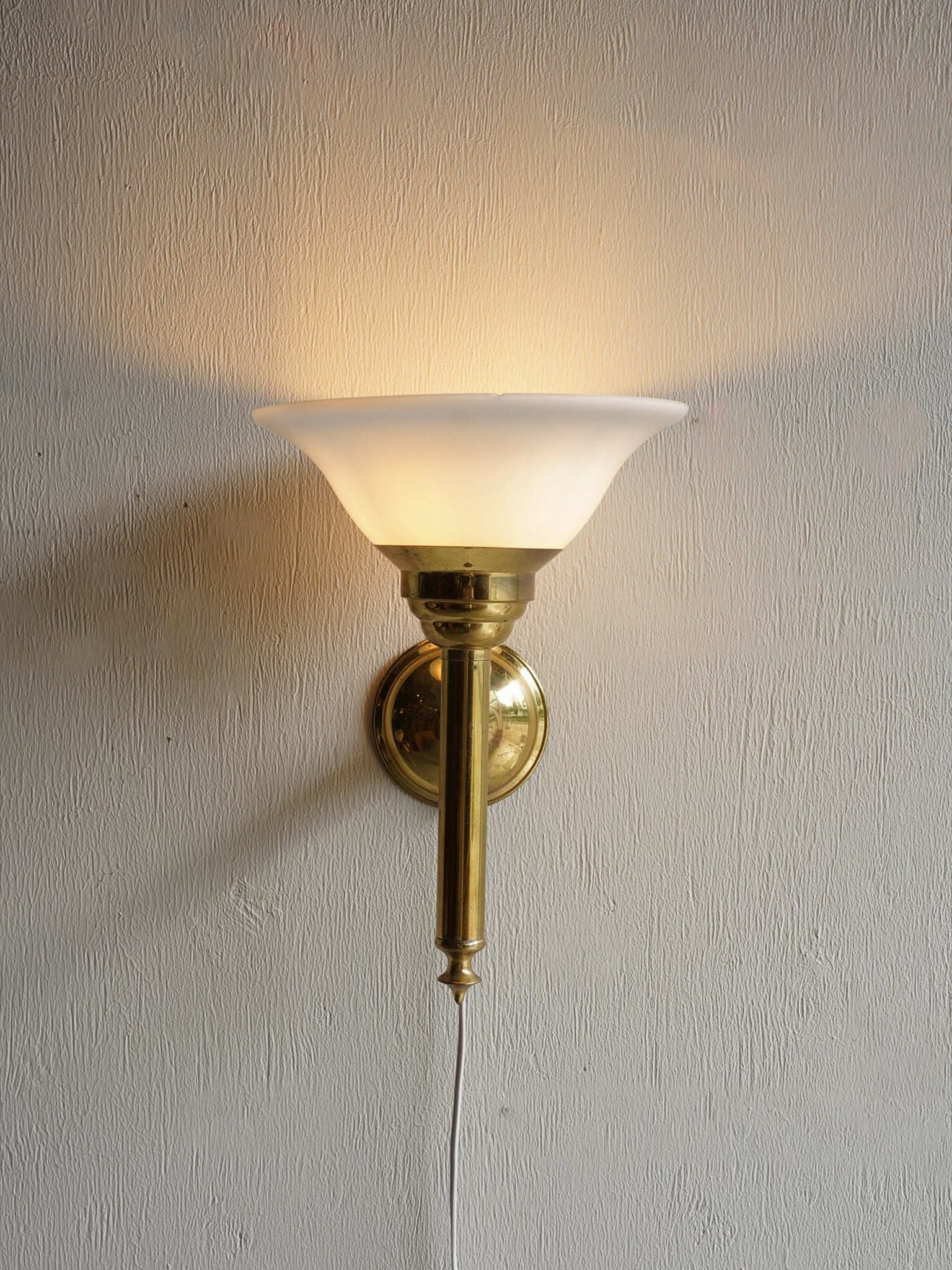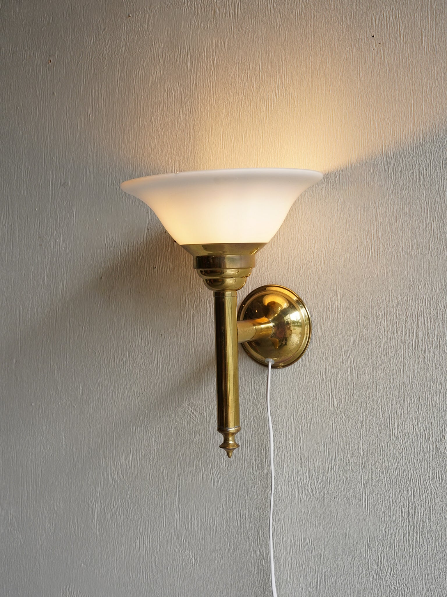 エレガントな輝きを放つ、真鍮とフロストガラスのウォールランプ。