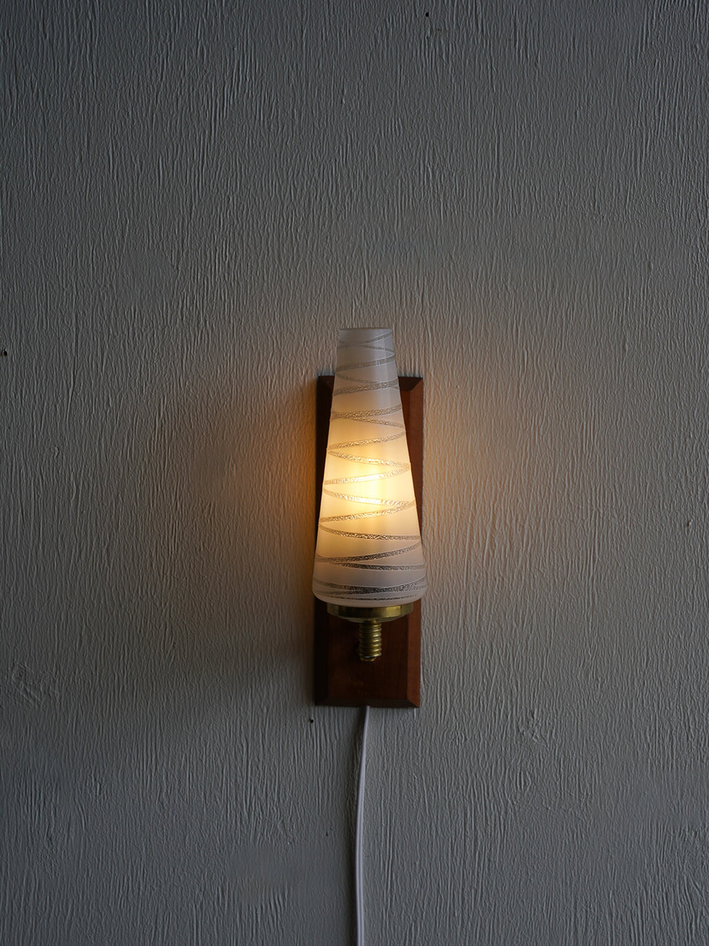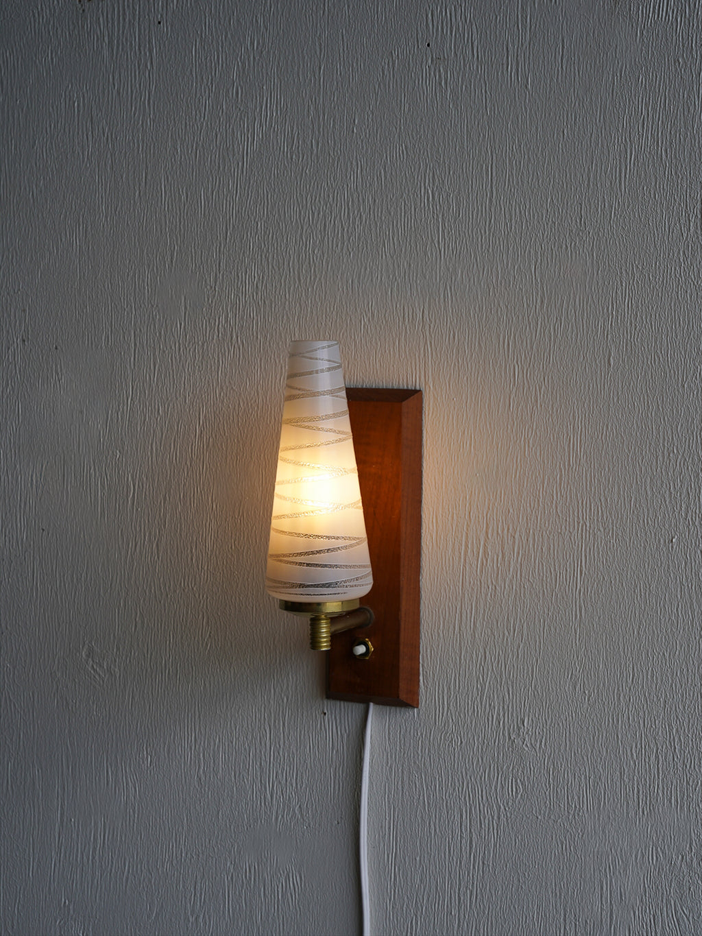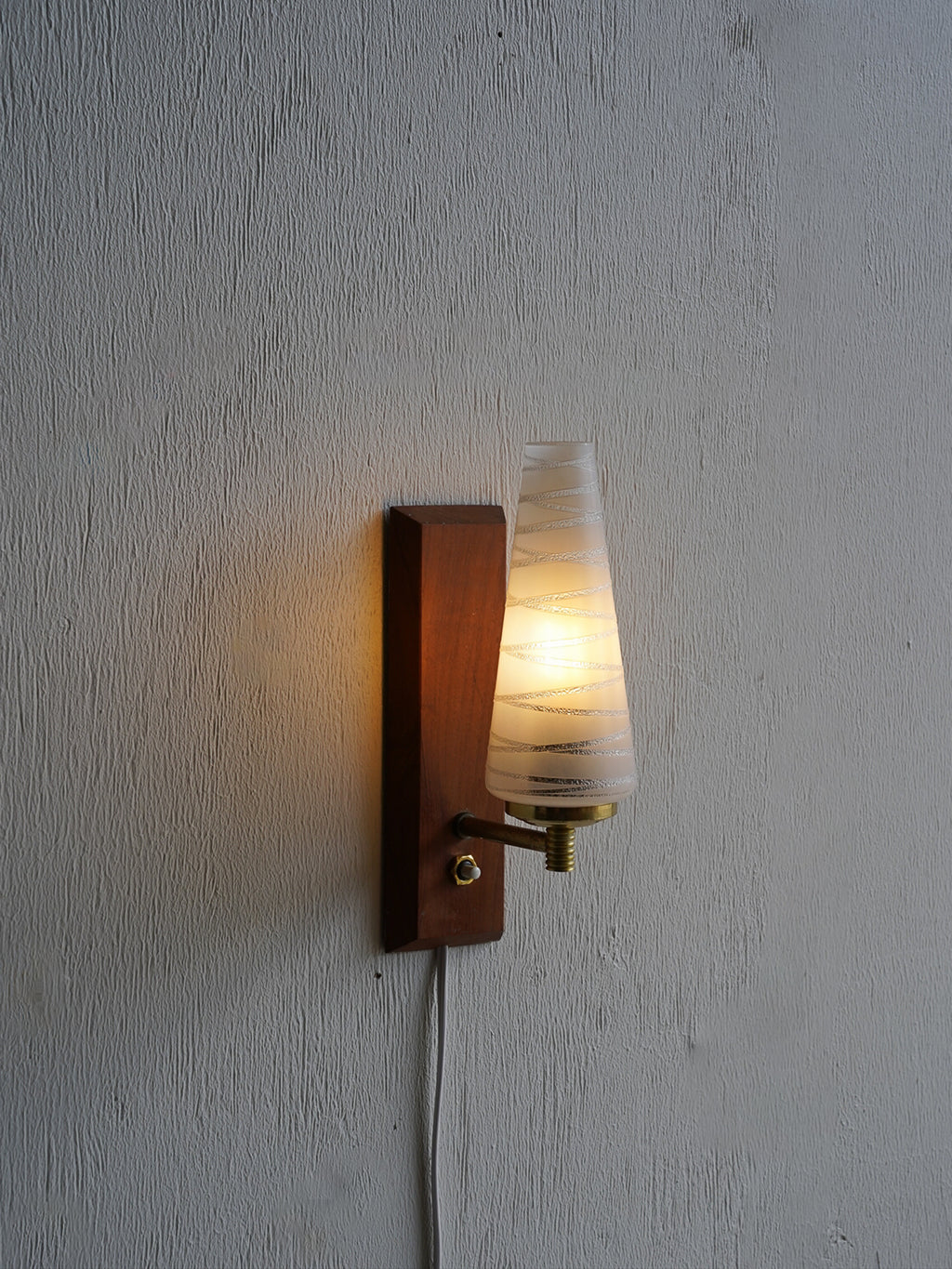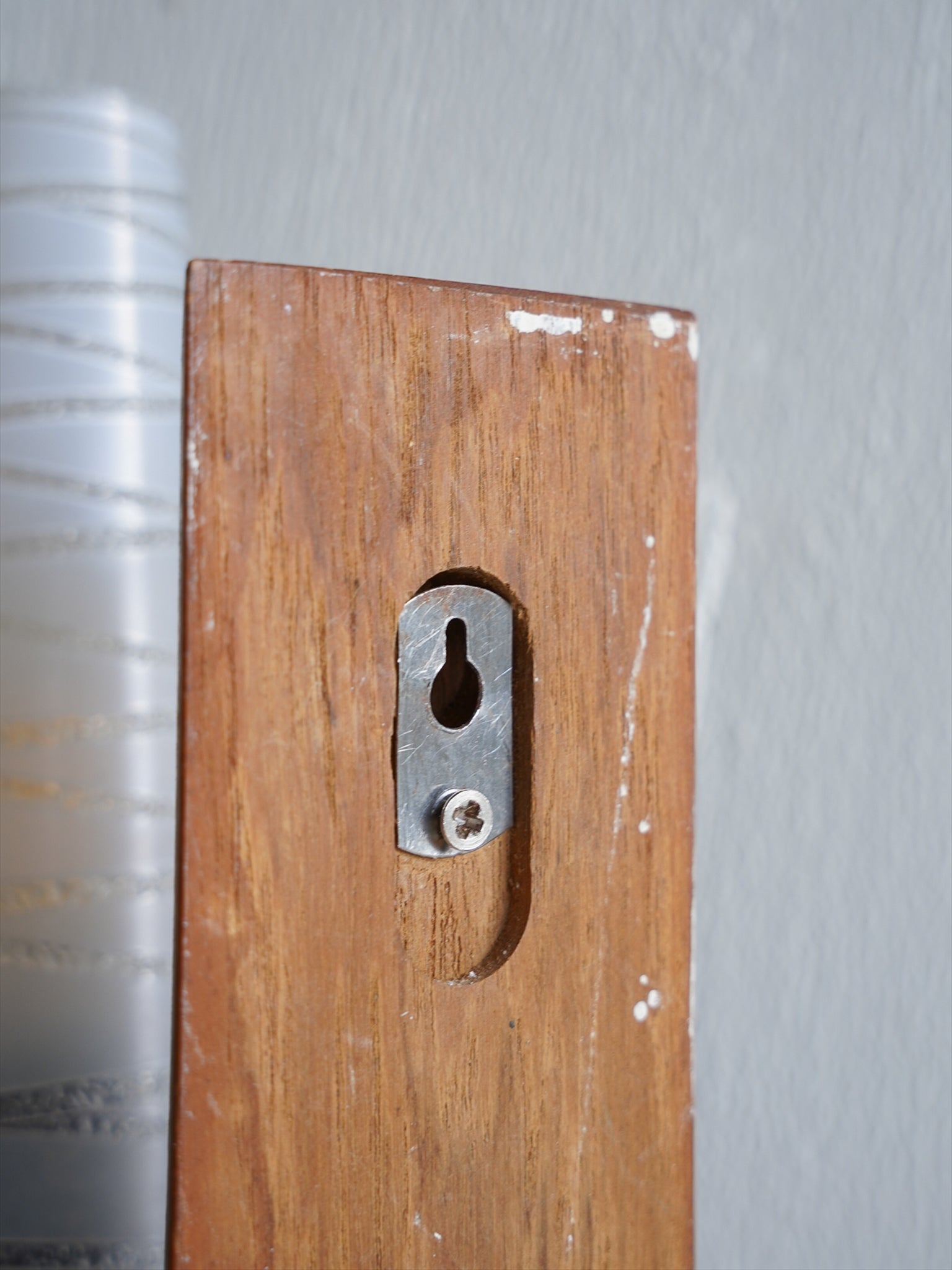 ベースには、ミッドセンチュリーモダンを代表する素材であるチーク材が贅沢に使用されており、時を経て深みを増した木目と色合いが、壁面に温かいアクセントを加えます。アームの真鍮金具は、チーク材の赤褐色と上品なコントラストを生み出し、洗練された印象を与えます。