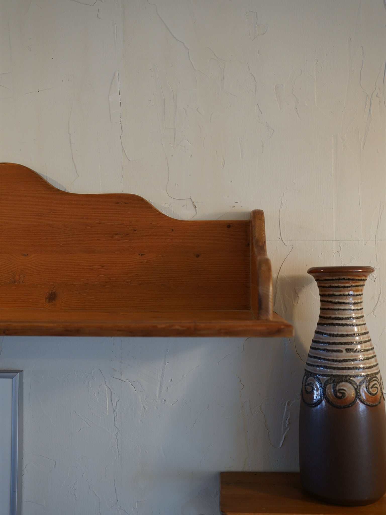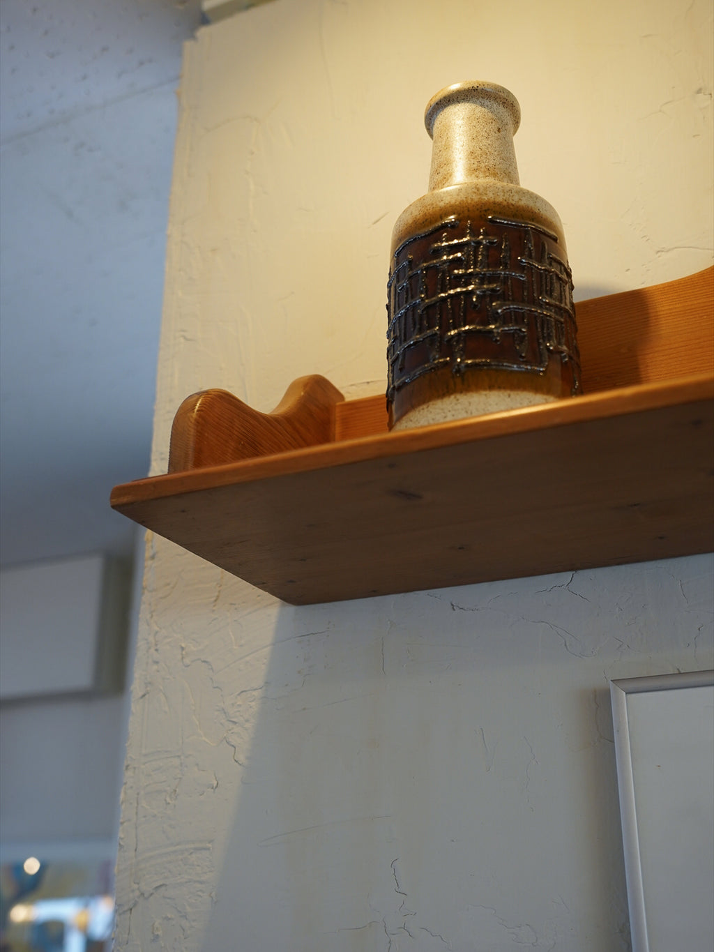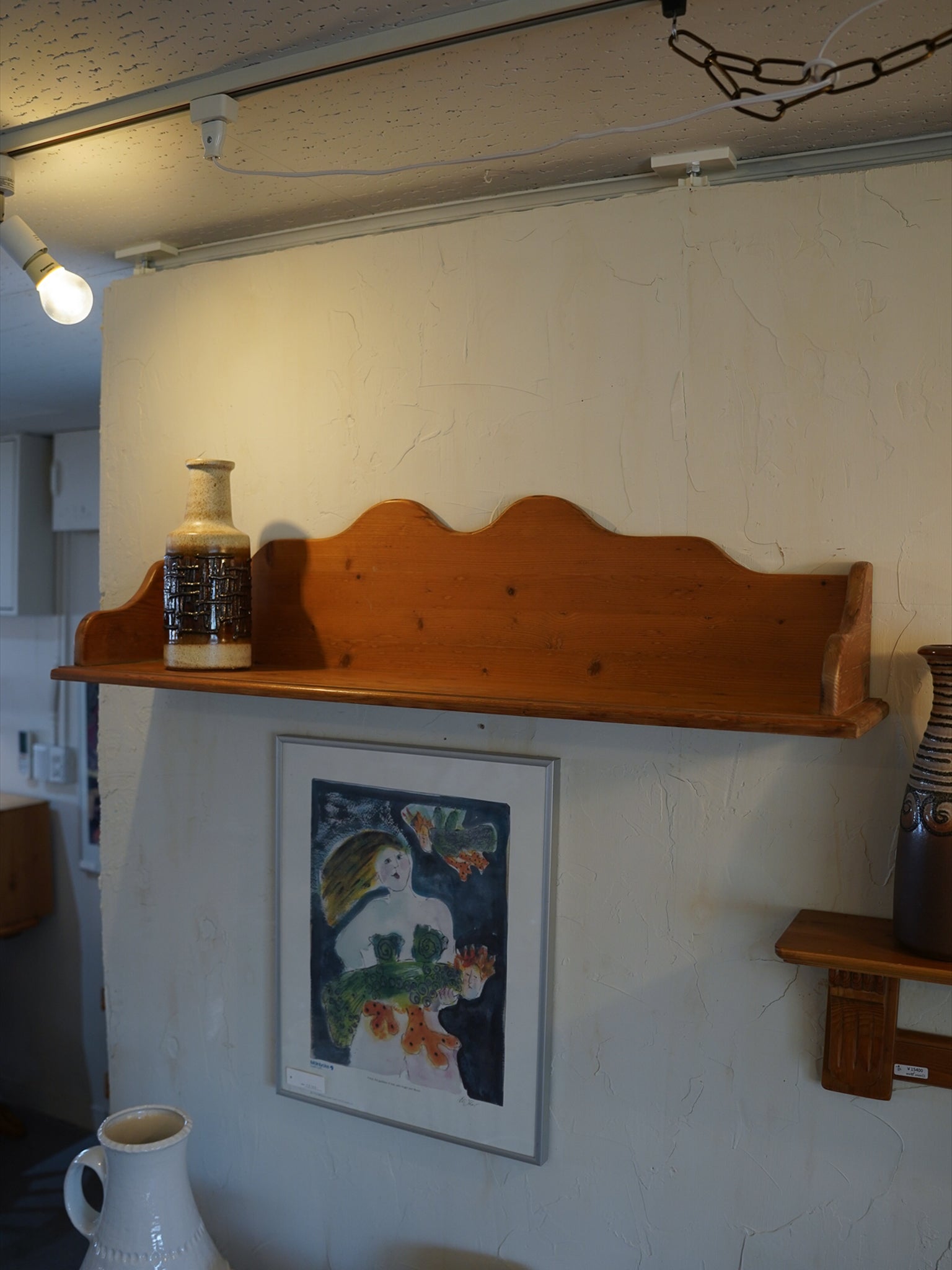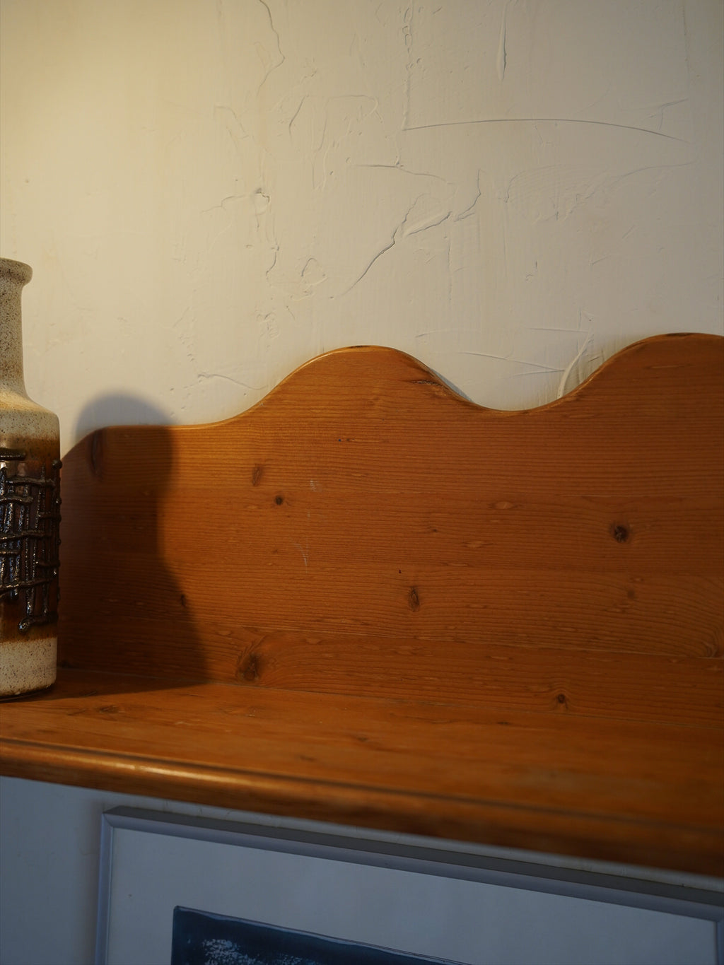 最大の特徴は、棚板上部の波打つような曲線を描いたユニークなデザインです。この柔らかな形状が、お部屋に優しいリズムと遊び心を加えます。シンプルな直線的な家具が多い中で、このシェルフは壁面の印象を劇的に変えるアクセントとなります。
