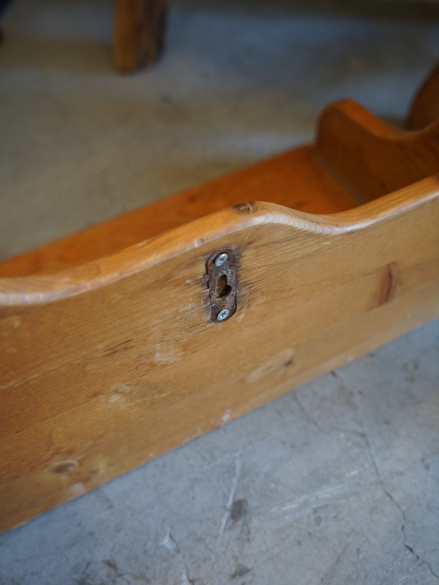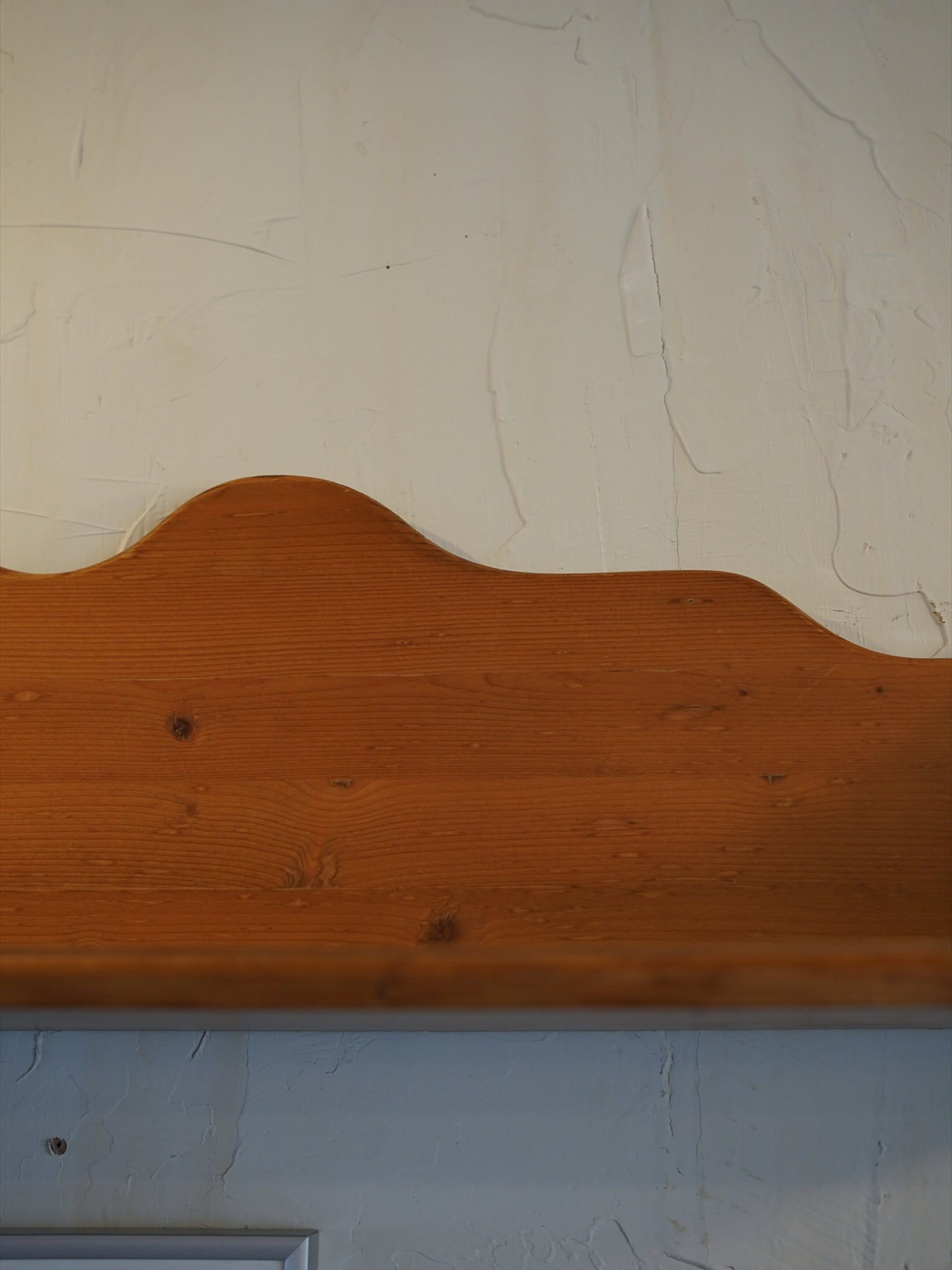 素材には、明るい色合いのパイン材が使われており、節の模様や経年によって深みを増した木肌が、心地よいノスタルジーを醸し出しています。
