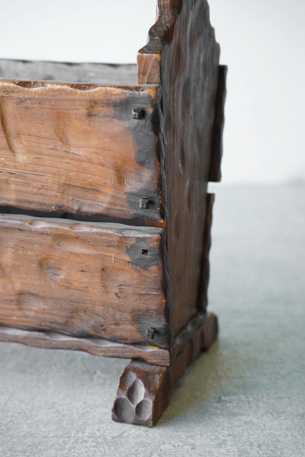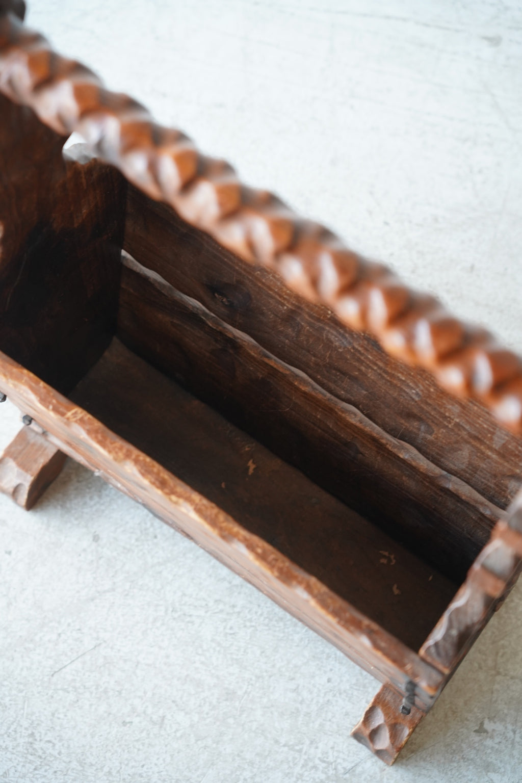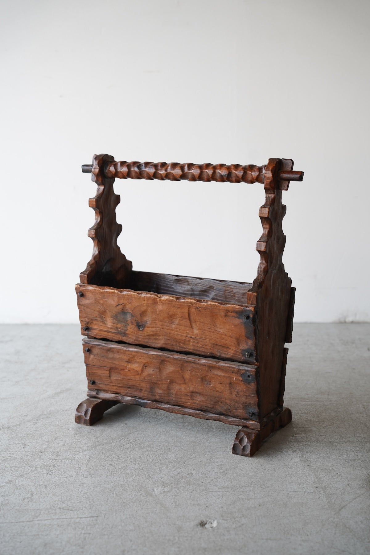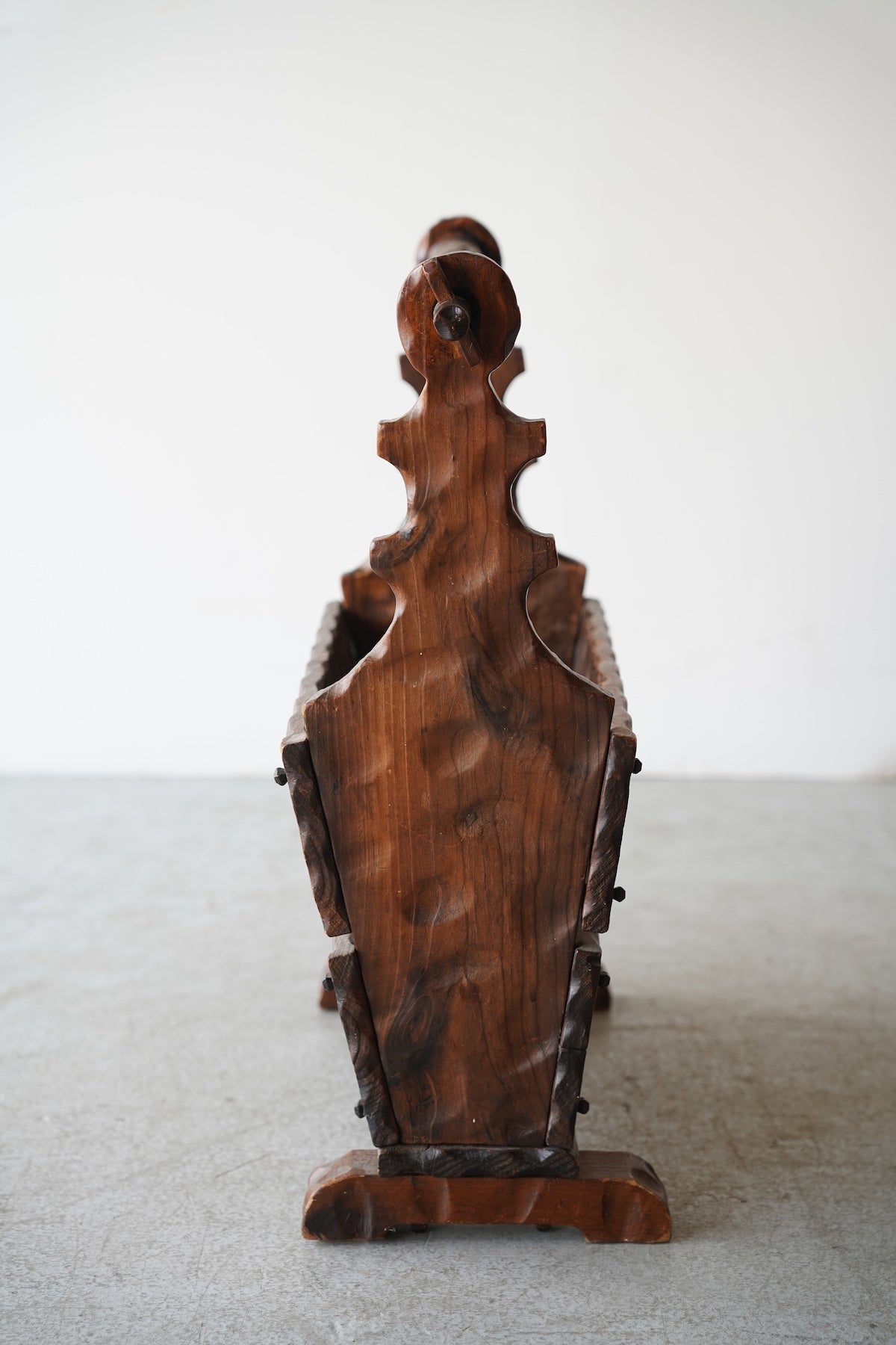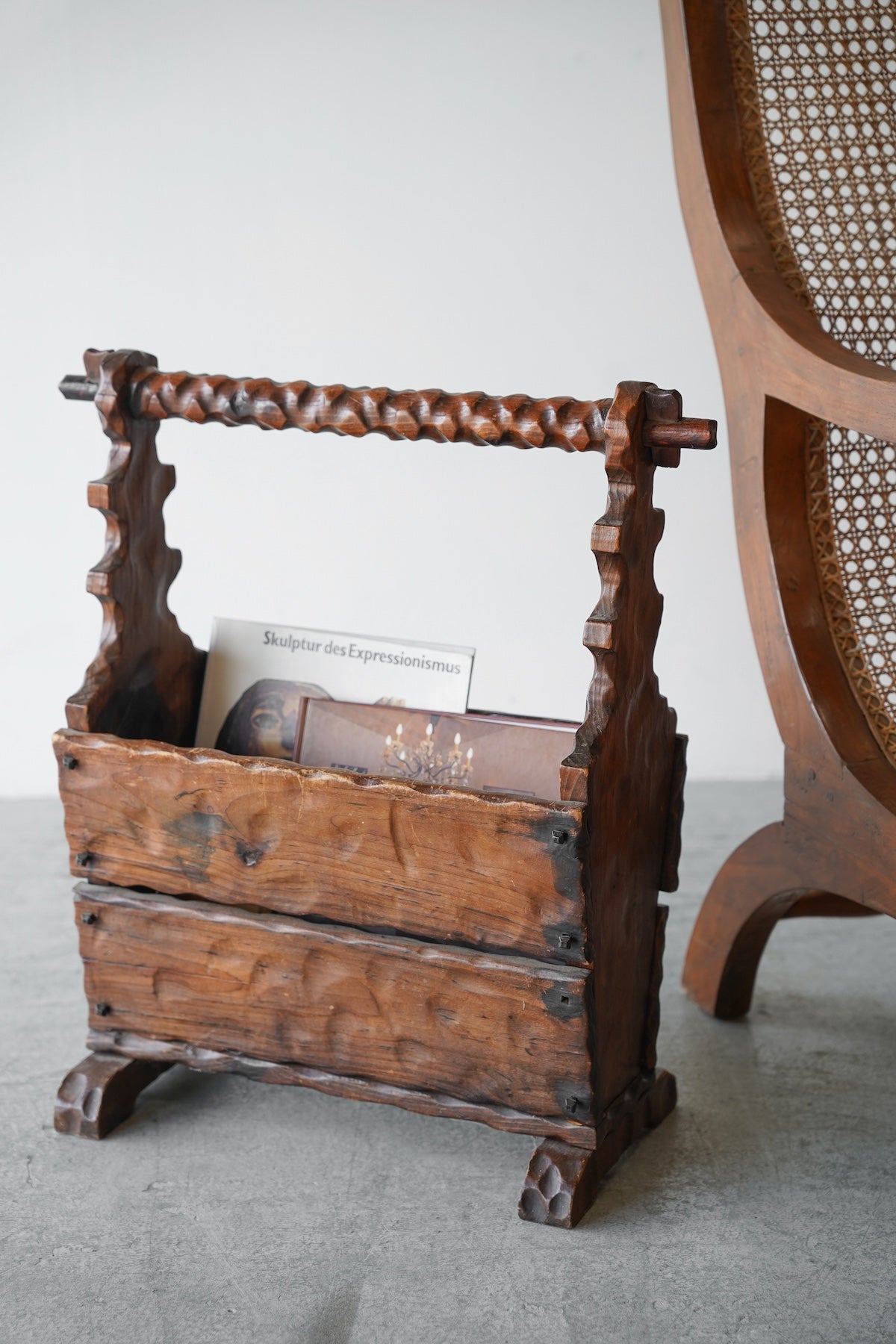 具体的な製造年代やメーカーは定かではありませんが、ドイツやオーストリアなどアルプスの地方で多く見られた伝統的な民芸様式が美しい、ヴィンテージのハンドカービングマガジンラックです。