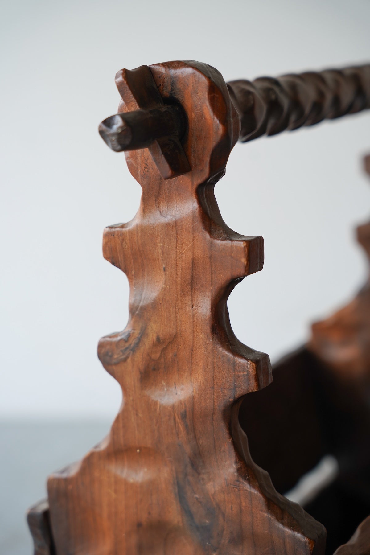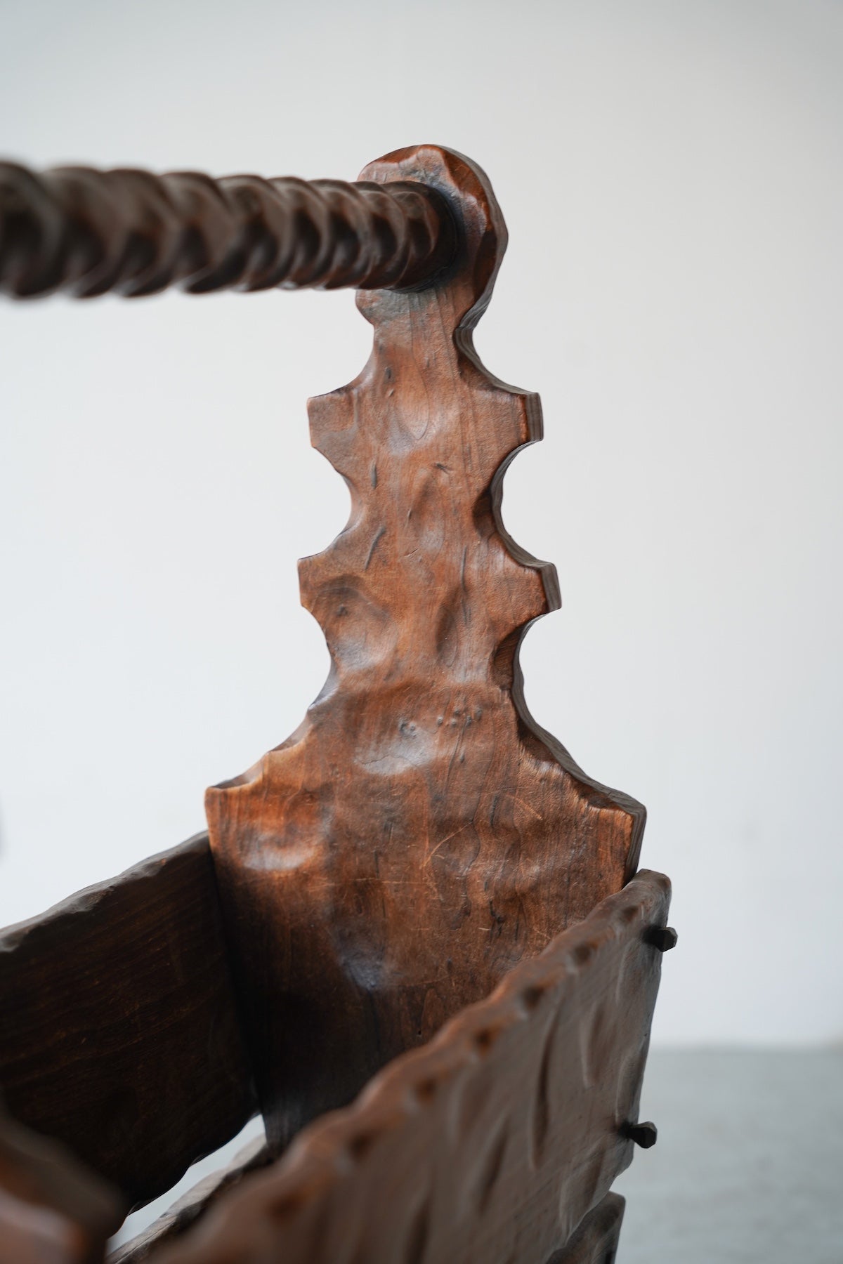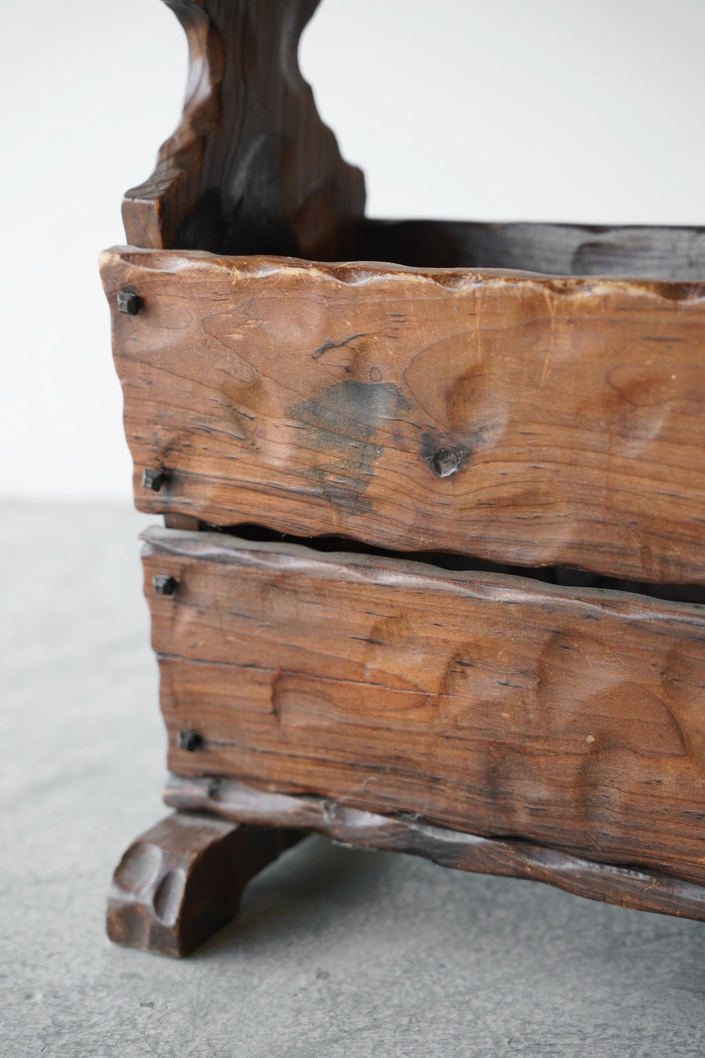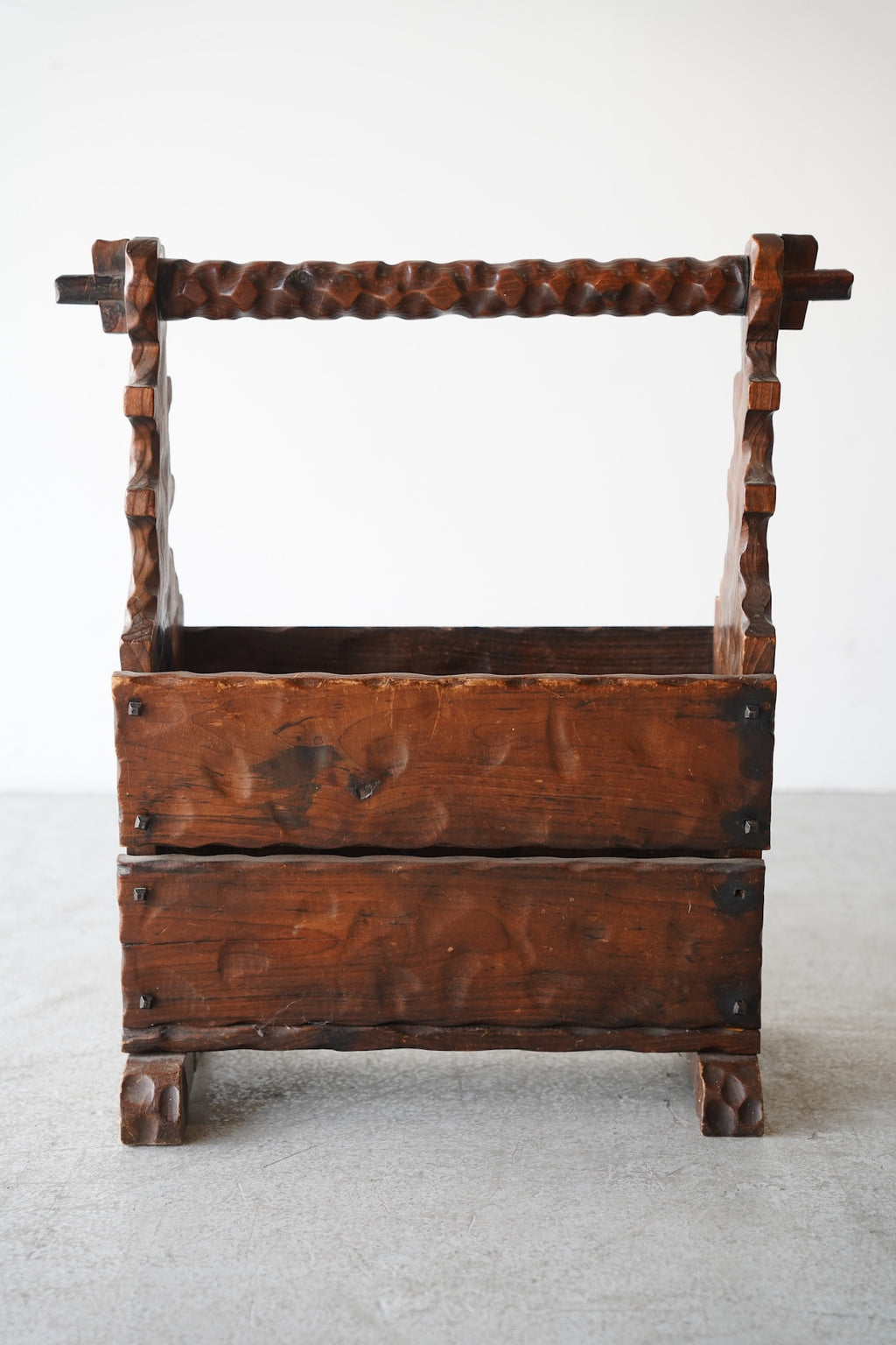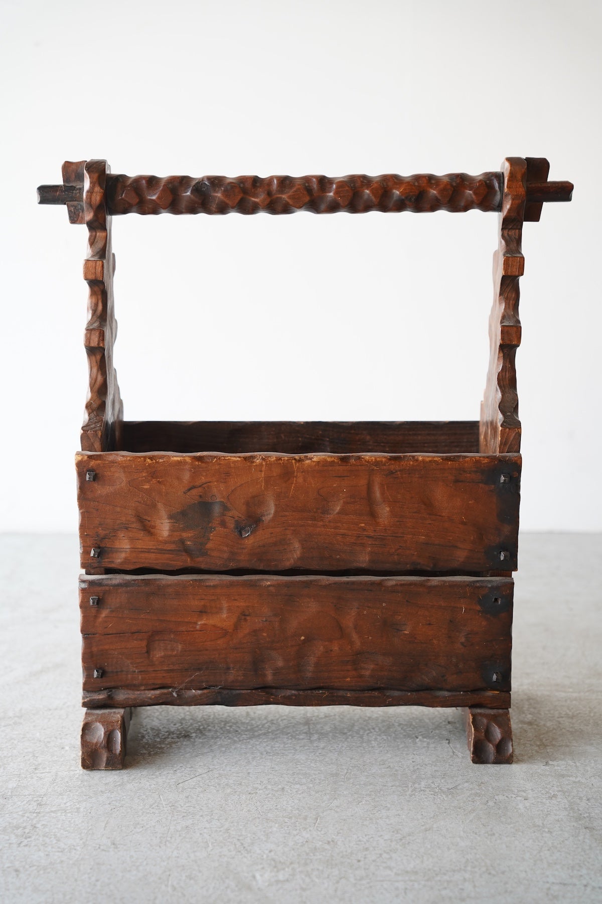 具体的な製造年代やメーカーは定かではありませんが、ドイツやオーストリアなどアルプスの地方で多く見られた伝統的な民芸様式が美しい、ヴィンテージのハンドカービングマガジンラックです。
