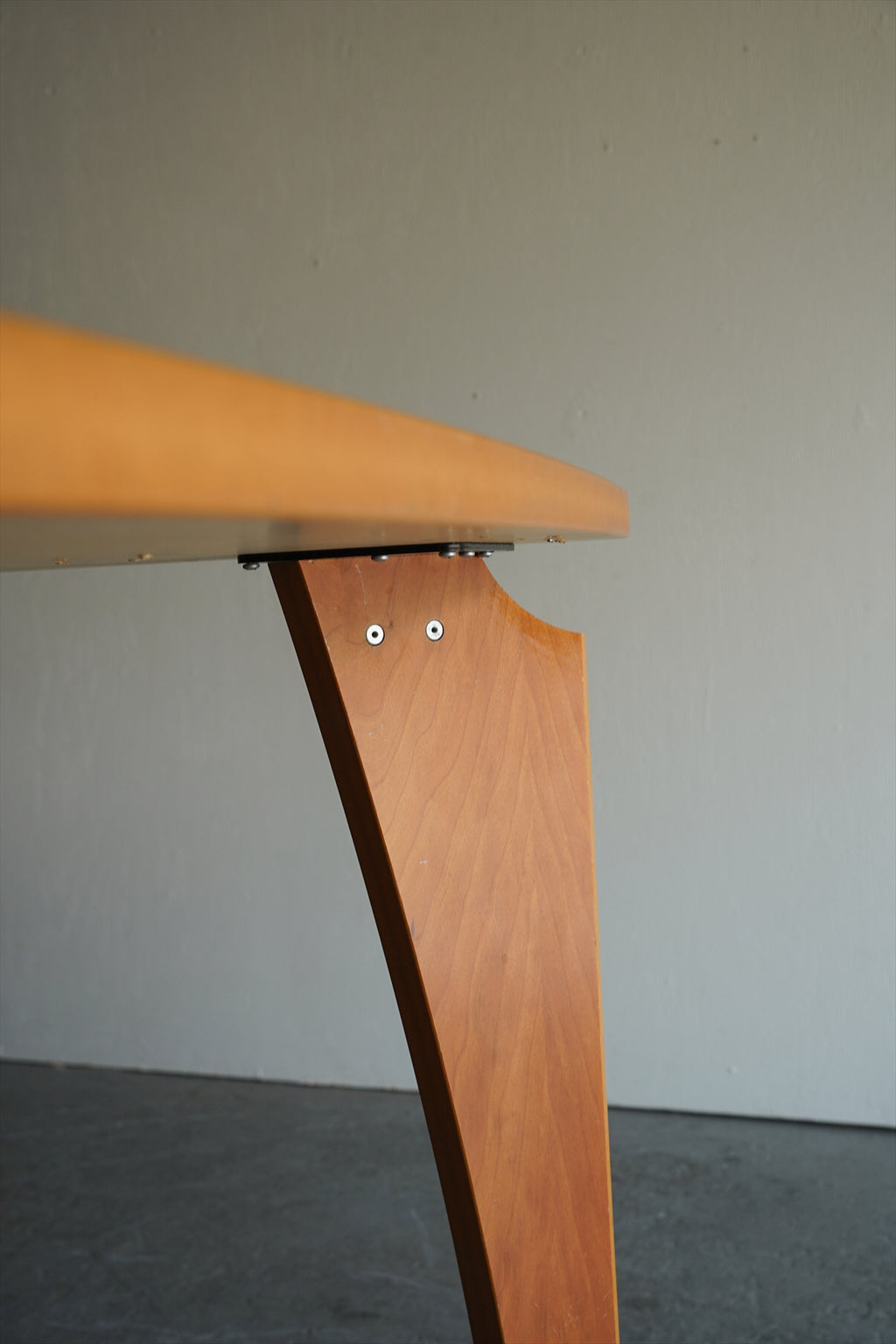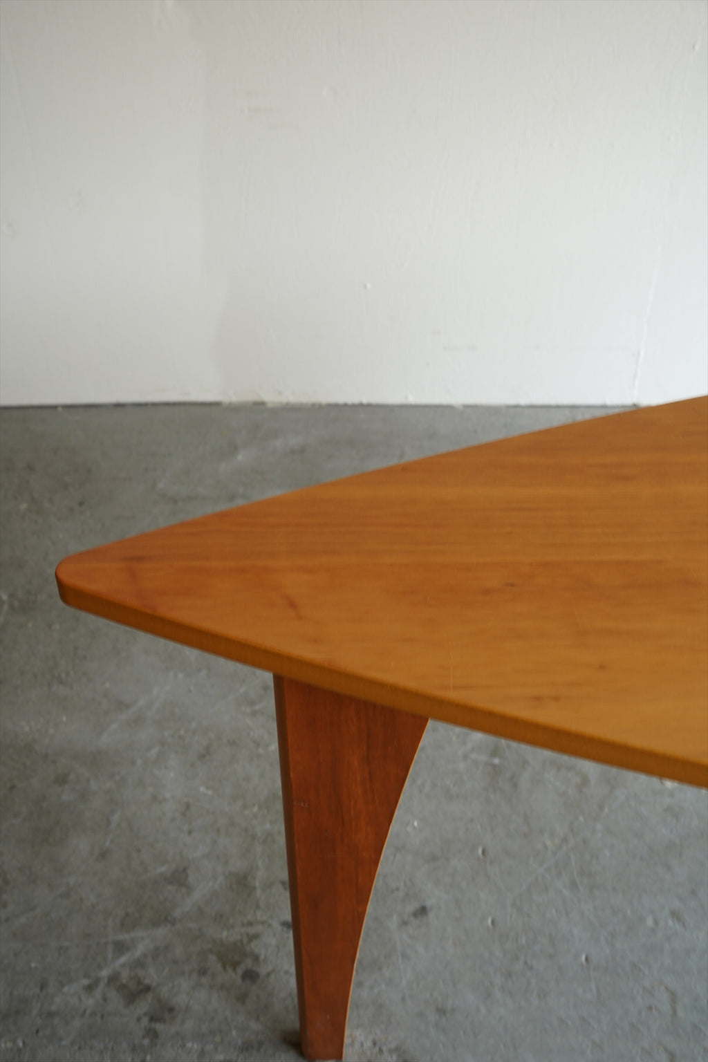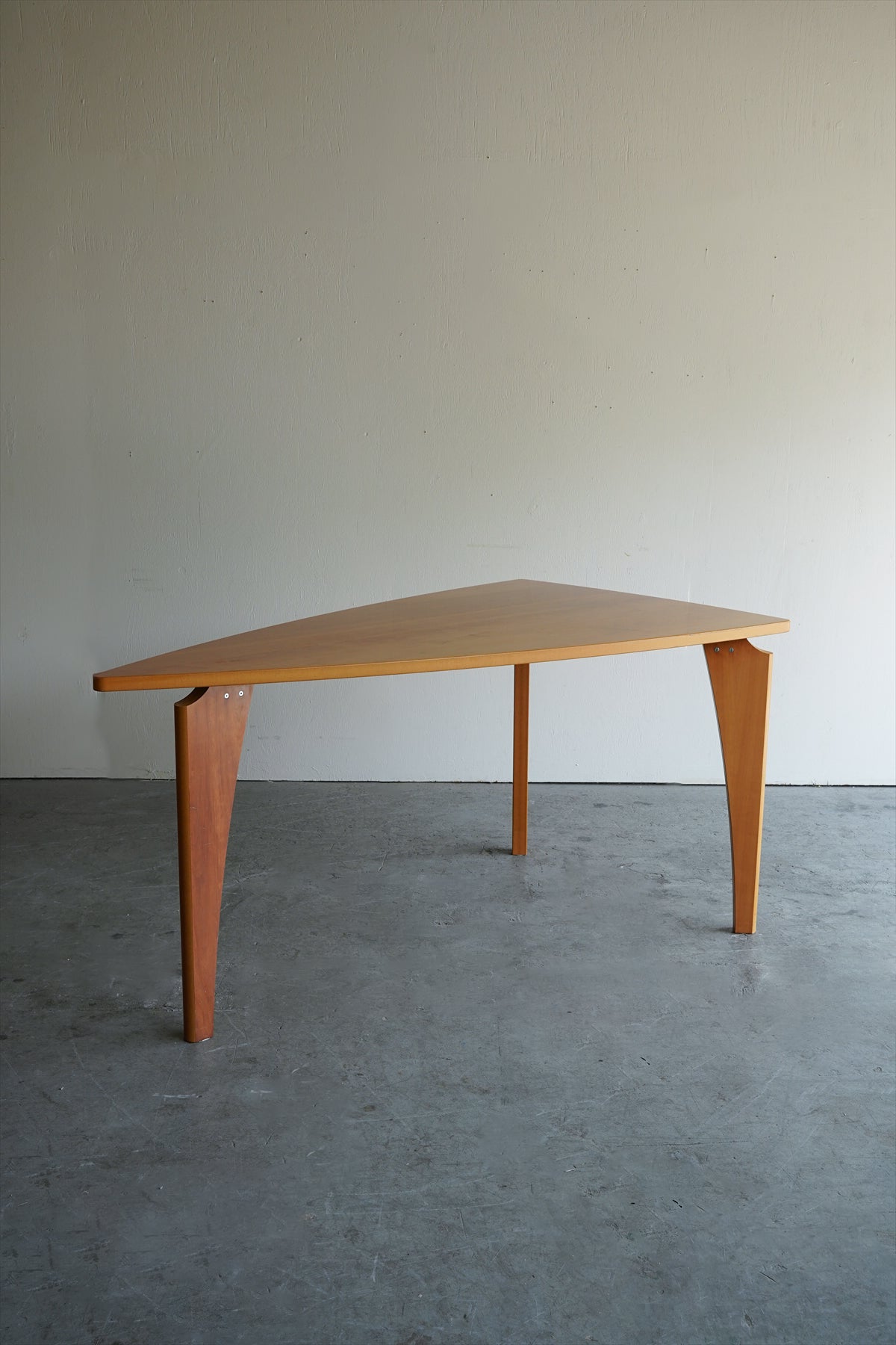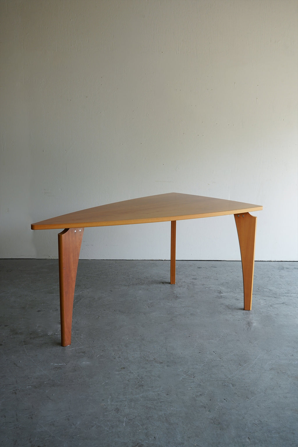 ユニークな形状と温かみのある木材が目を引くトライアングルテーブル