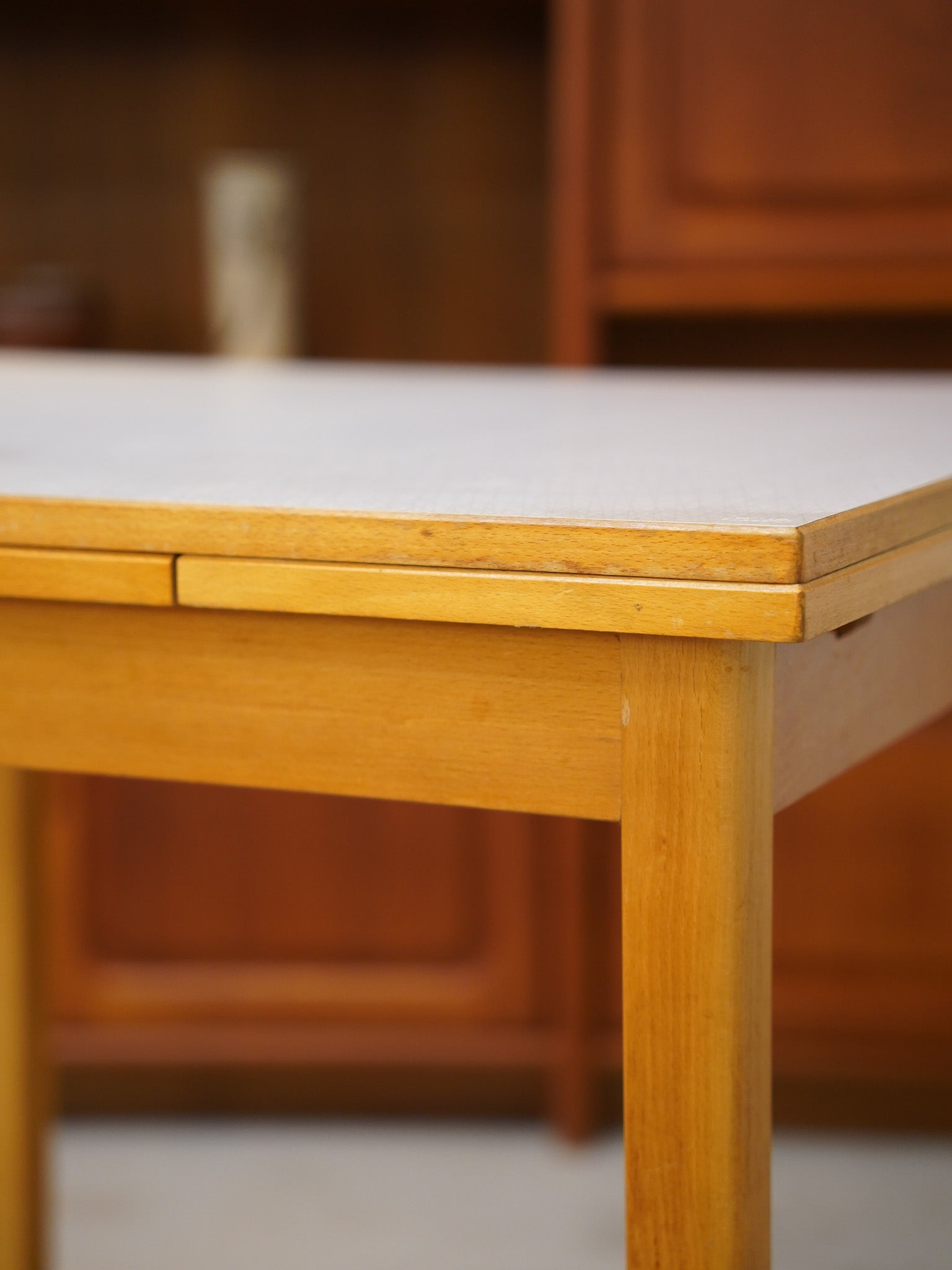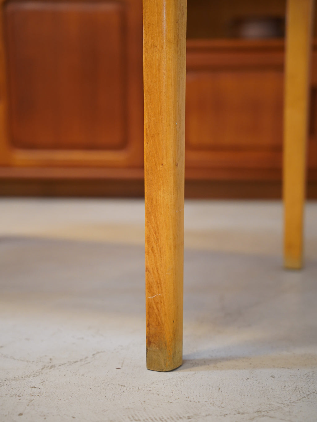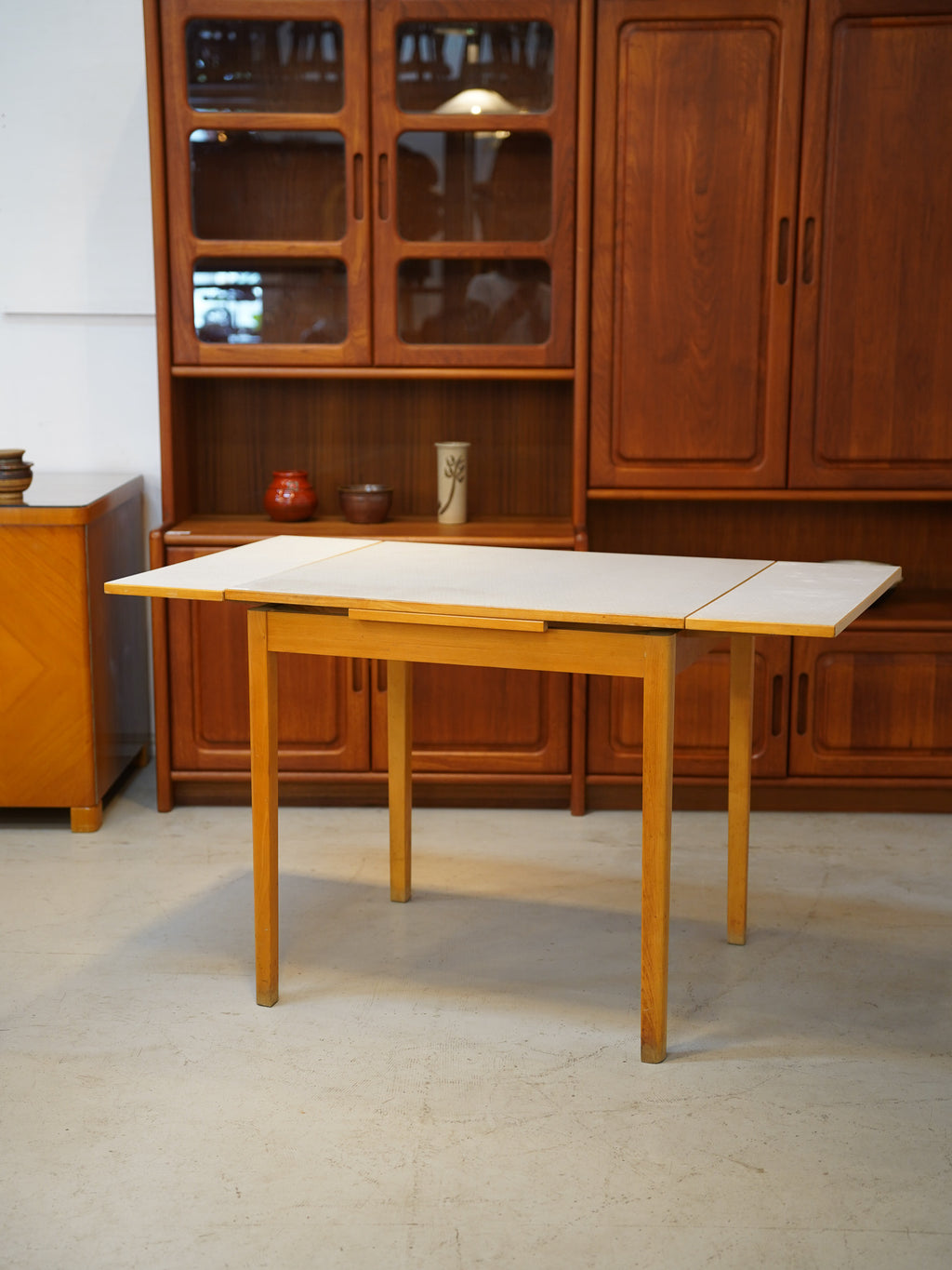 天板を伸長したり、縮めたりできるエクステンションテーブルです。 普段はコンパクトなサイズで、ダイニングやワークスペースを広く使うことができます。来客時には両側の天板を引き出すことで、広々としたテーブルに早変わりし、ゆったりと食事を楽しむことができます。