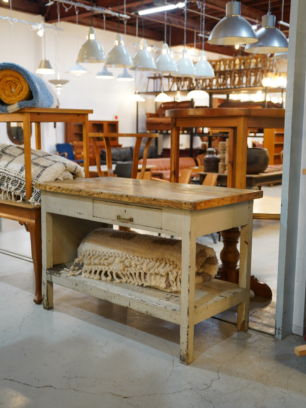 ヴィンテージならではのシャビーシックな雰囲気を持つワークテーブル