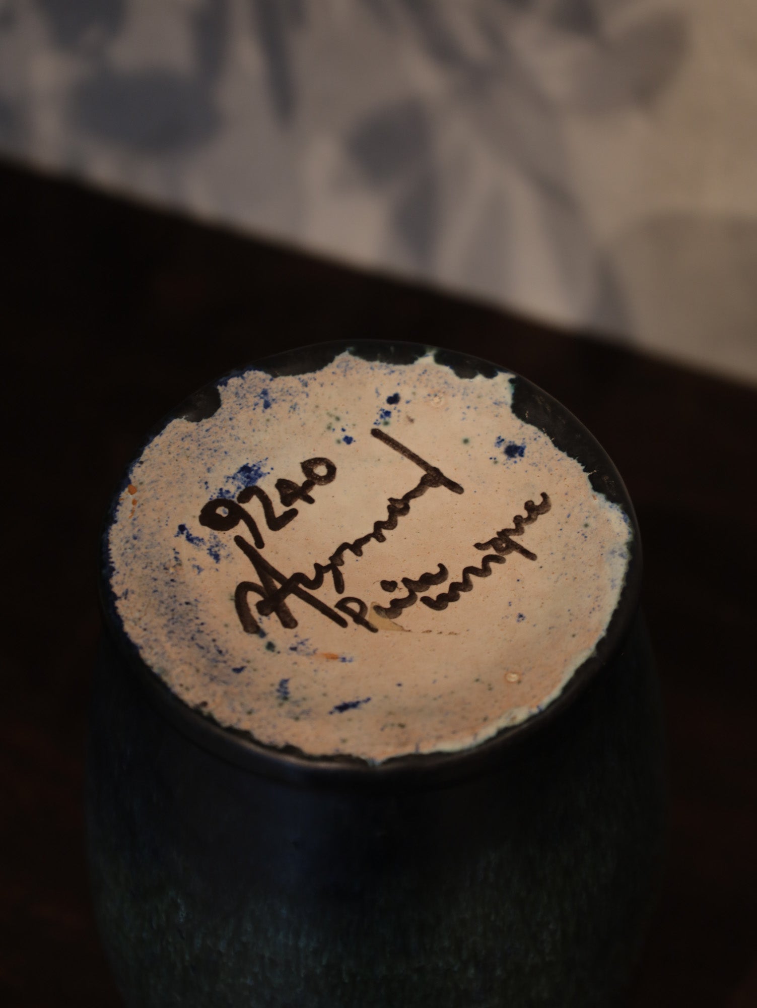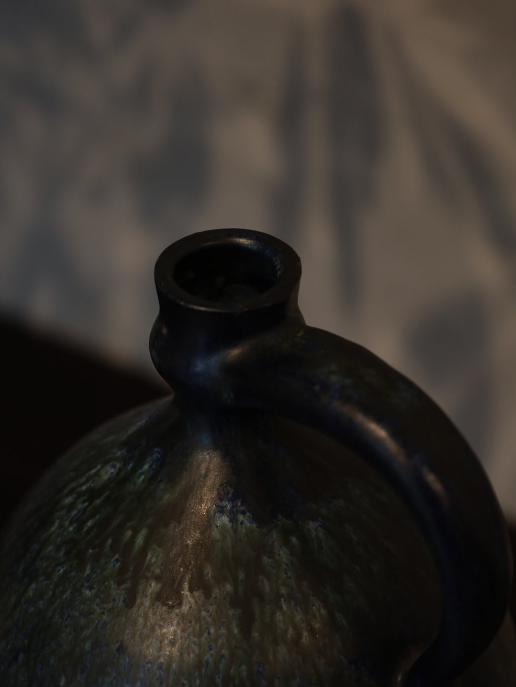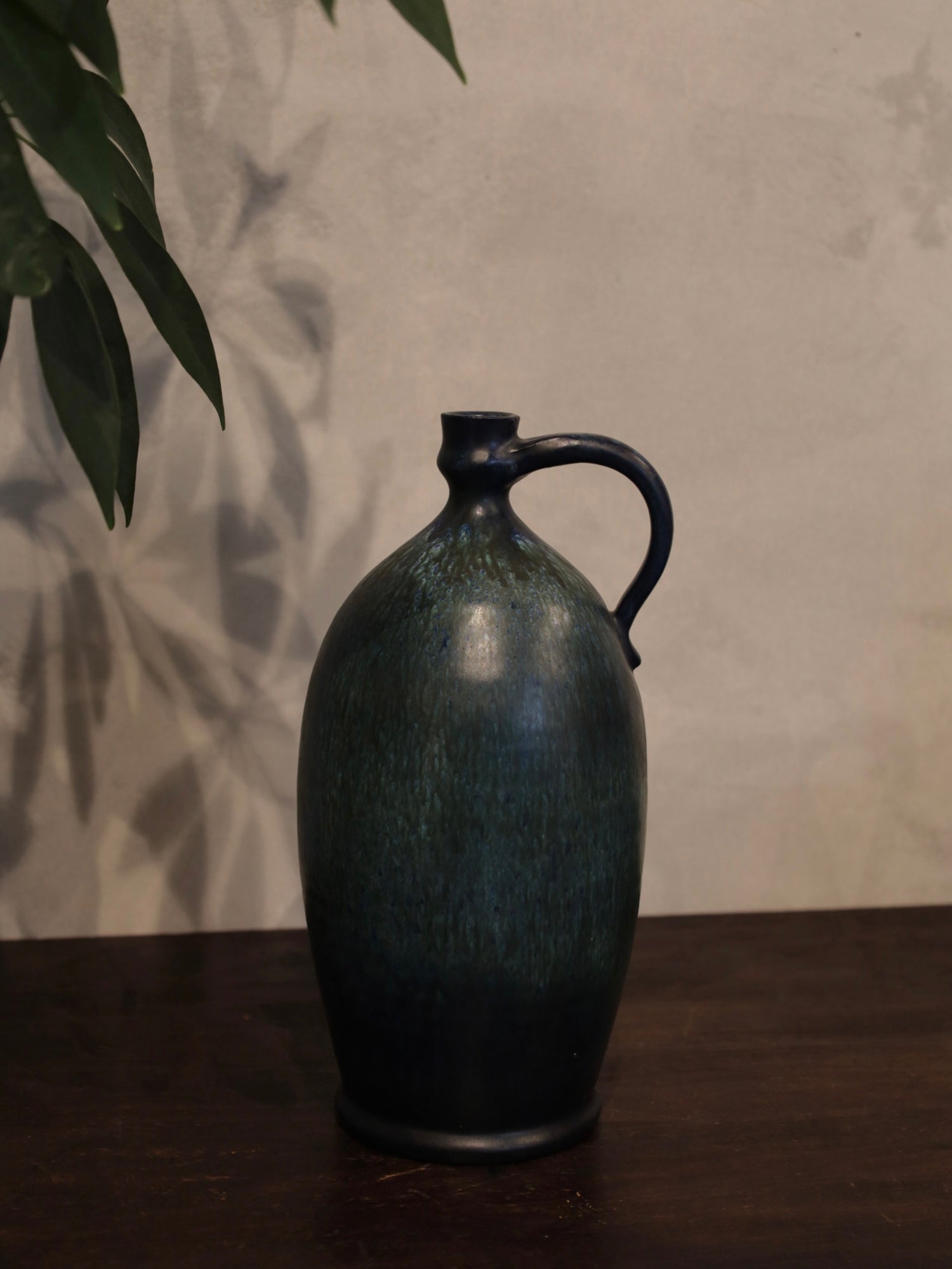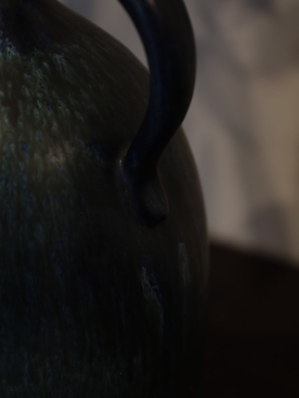 深いブルーグリーンの釉薬が魅せる、静謐な存在感