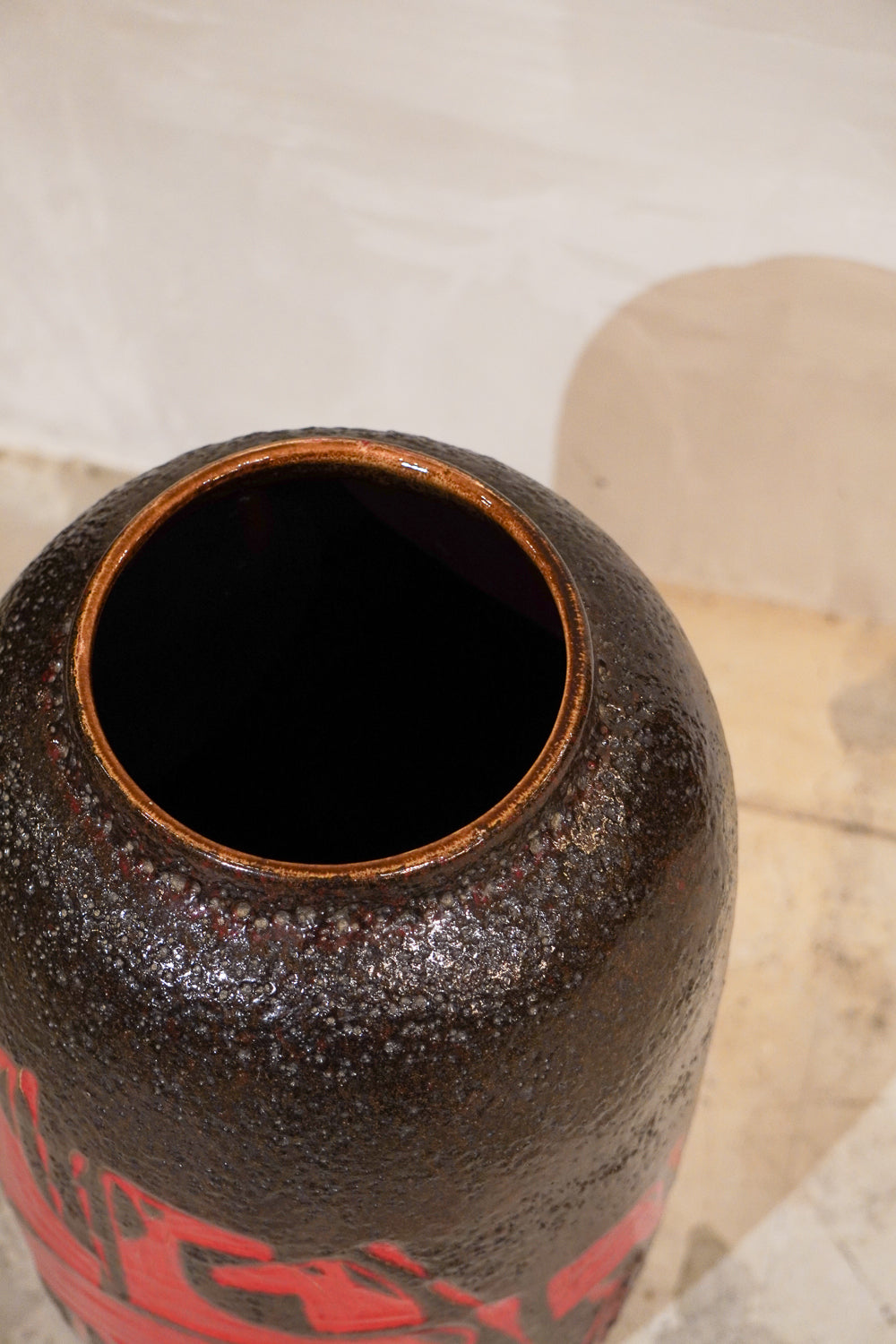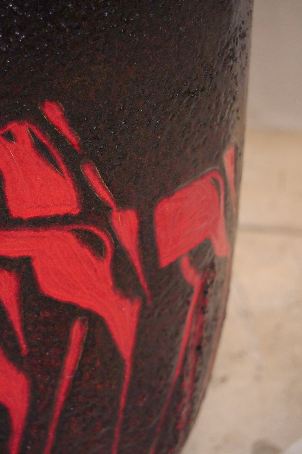 This vintage base has a tall, cylindrical, straight form and is layered with a slightly glossy gray to charcoal gray glaze. The matte texture and soft color boundaries create a gentle gradation reminiscent of layers of fog or clouds.