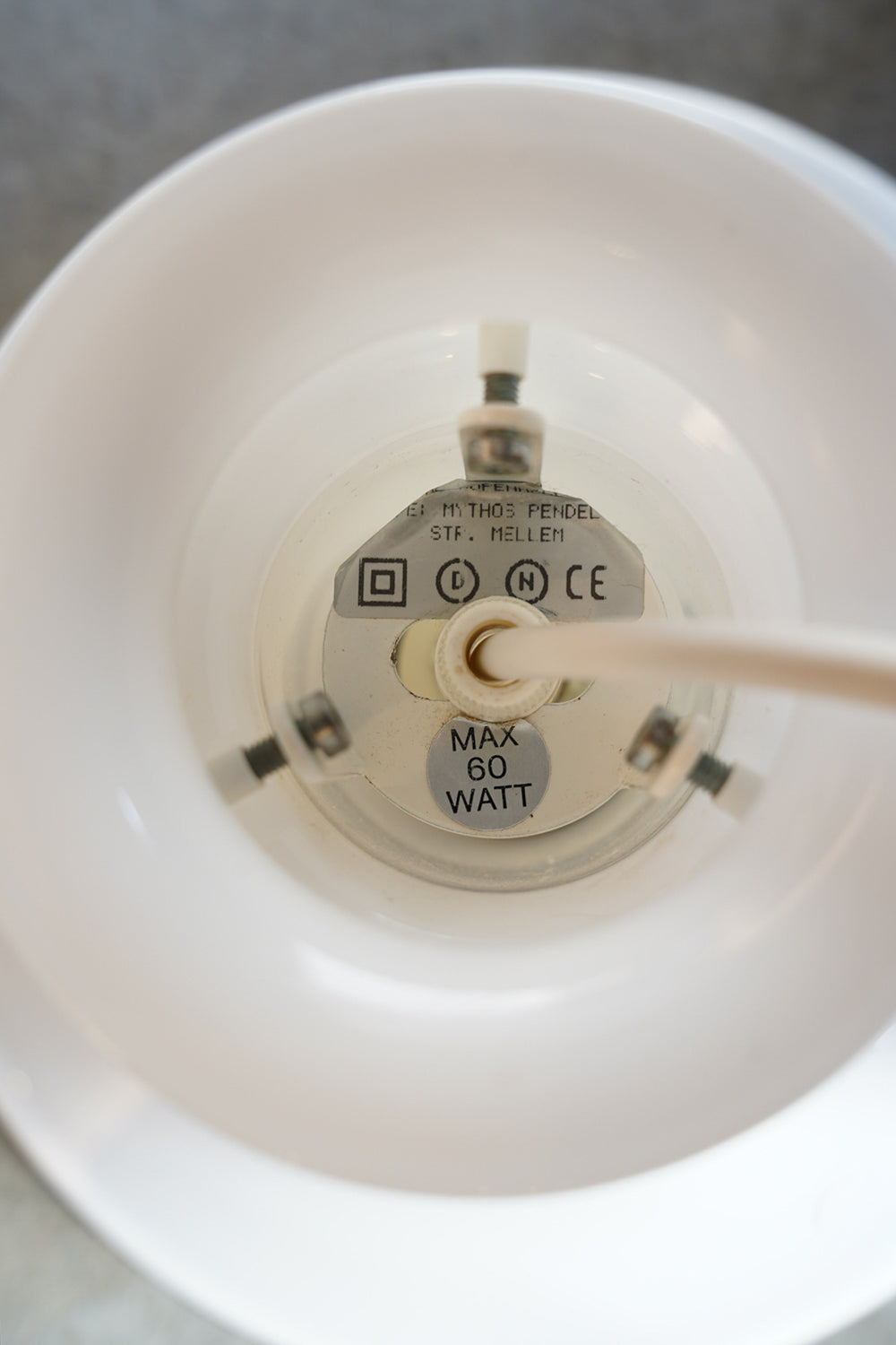 Since this product was made after Holmegaard became a subsidiary of Royal Copenhagen, there is still a tag on the top of the socket with Royal Copenhagen and the model number written on it.