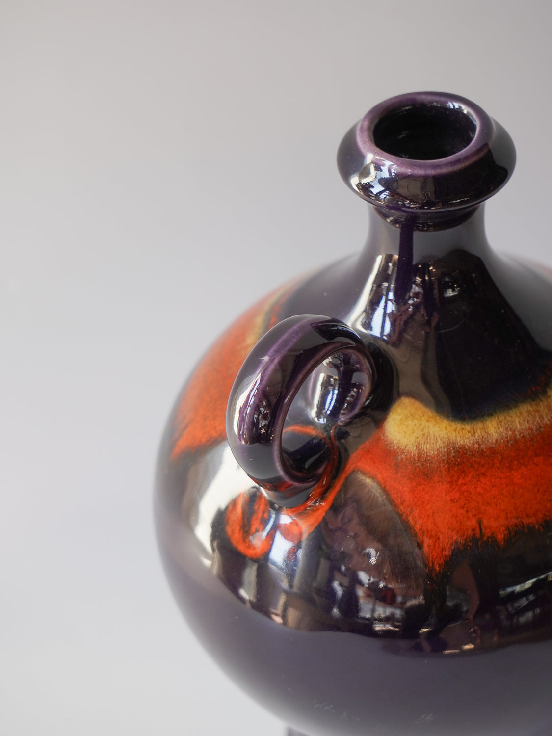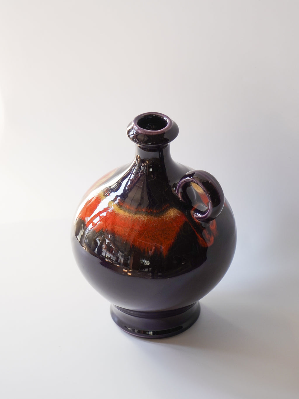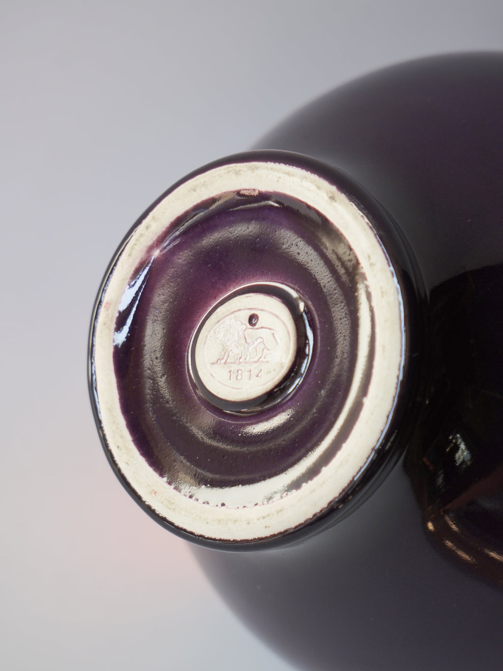 This vintage vase features modern aesthetics. The glossy blue-gray base features a three-dimensional, organic texture, creating a unique finish that changes appearance depending on the angle of the light. The flowing glaze pattern is distinctive, making it a recommended one-of-a-kind art piece.